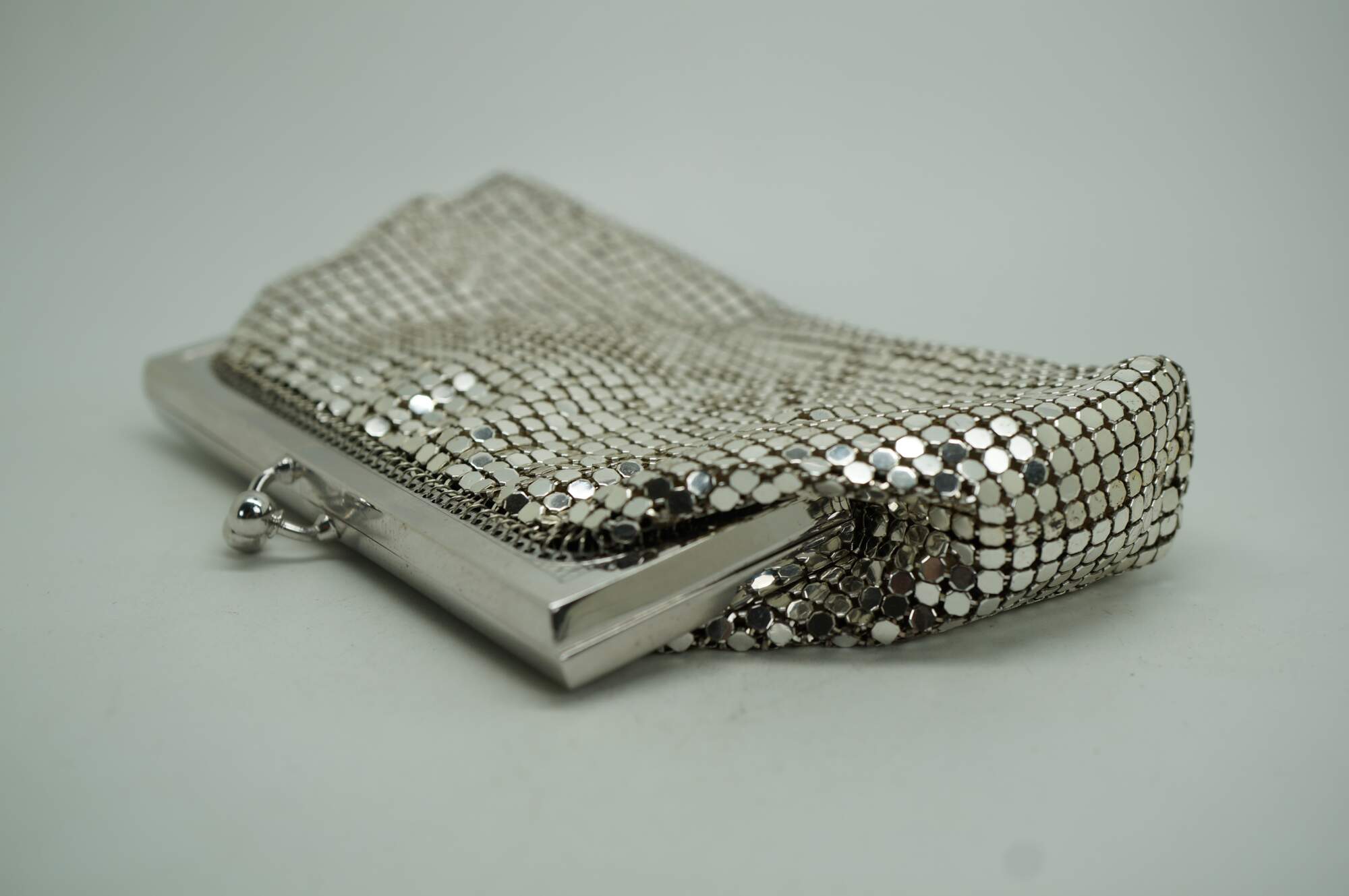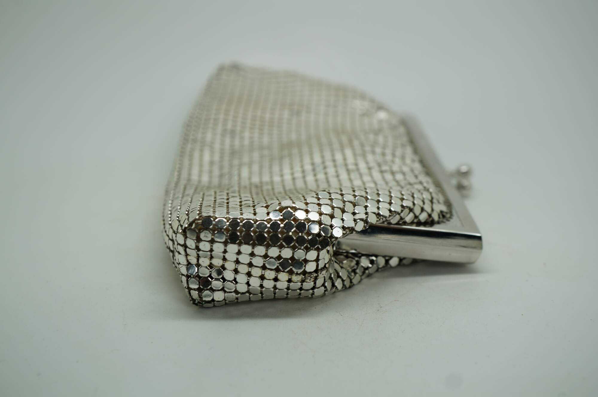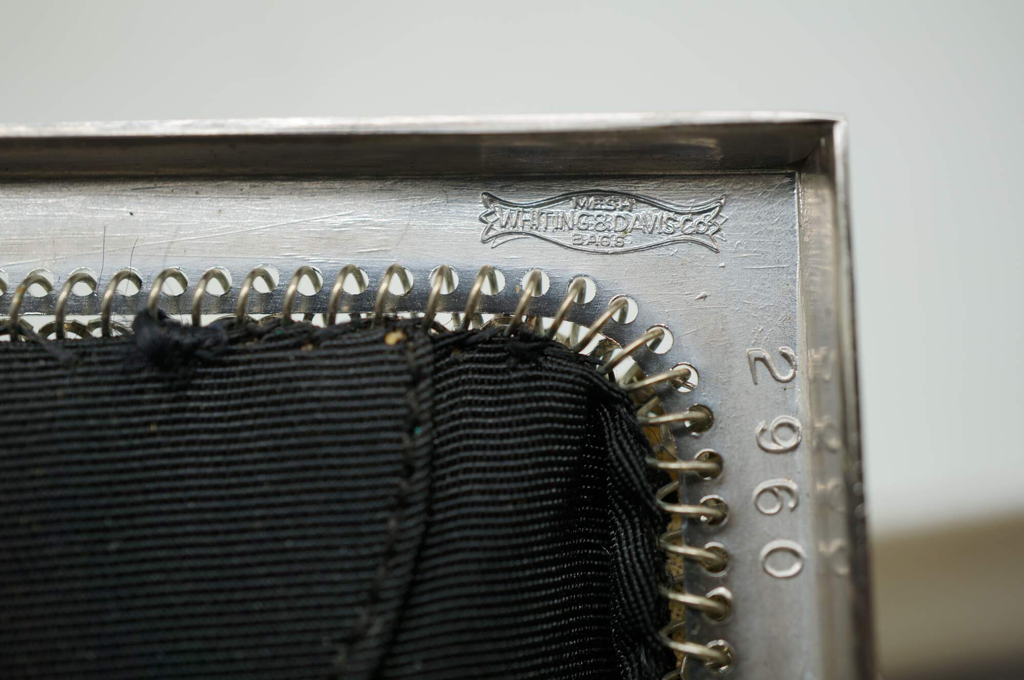 "In 1876, Wade Davis & Company, the precursor to Whiting & Davis, is founded by William H. Wade, Edward P. Davis and Louis Heckman in Massachusetts. In 1892 Mr. Whiting designs the first mesh bag, with all rings formed and joined by hand. By 1912 a machine is invented to automate the mesh making process. Charles Whiting joins the company in 1880 at age 16 and swiftly moves up the ranks to management. In 1896, he and Mr. Davis form a partnership and raise the money to purchase the company, renaming it The Whiting & Davis Company. Whiting & Davis’ beautiful, high quality purses are the coveted accessory of flappers, actresses and “well dressed women everywhere.” Through automation and advertising, the company expands its reach, becoming, and remaining to this day, the world’s leading mesh handbag manufacturer. In the teens and early ‘20s, Whiting & Davis bags are made of small precious metal rings and are unpainted for the most part, their striking designs coming from a mixture of metal colors, artfully joined rings and metal fringe. By the end of the ‘20s, flat Armor mesh painted in bold Deco designs and Dresden mesh, with its tiny rings silkscreened by hand in dreamy Impressionistic shades, take center stage. The 1930s bring high-profile collaborations with iconic designers Paul Poiret and Elsa Schiaparelli, while Whiting & Davis’ famed creations continue to turn up in the hands of stage and screen actresses of the era. The renowned and prolific Elsa Schiaparelli designs for Whiting & Davis in the mid 30s, introducing several new, more modern shapes to the line. Trailblazing French designer, Paul Poiret, the first to design without rigid tailoring and corseting while also launching cosmetics, perfumes and housewares lines, collaborates with Whiting & Davis to create colorful bags with “Parisian allure.” During World War II, a shortage of raw materials leads Whiting & Davis to temporarily stop production of its metal mesh bags and turn its attention to supporting the war effort by manufacturing radar equipment. At the close of the war, the company returns to making its signature mesh handbags as well as other mesh goods. In the 1960's Whiting & Davis embraces the Mod Era with simpler styles and clean lines. In the 1970's Gold Rush! Whiting’s “soft, sensuous and slithery handbags,” halter tops and dresses are the perfect glittering accessories for a decade spent writhing under disco balls to Donna Summer and ABBA. The excesses of the late ‘70s slide right into the fashions of the ‘80s, with mesh accessories and apparel continuing to drape some of the most beautiful bodies of the time. The love of Whiting & Davis handbags (new and vintage) continues today with top actresses, musicians, stylists and bloggers. Whiting & Davis remains the recognized leader in metal mesh handbags more than 120 years after its first mesh handbag was produced and continues to attract discerning fans, including actresses, musicians (and you!), by regularly introducing new styles with an eye toward both trend and functionality. While that first bag was simple, unpainted ring mesh, Whiting bags now come in a variety of shapes, colors and mesh styles with trims such as snakeskin, studs and SWAROVSKI ELEMENTS." (Source: Whiting & Davis)