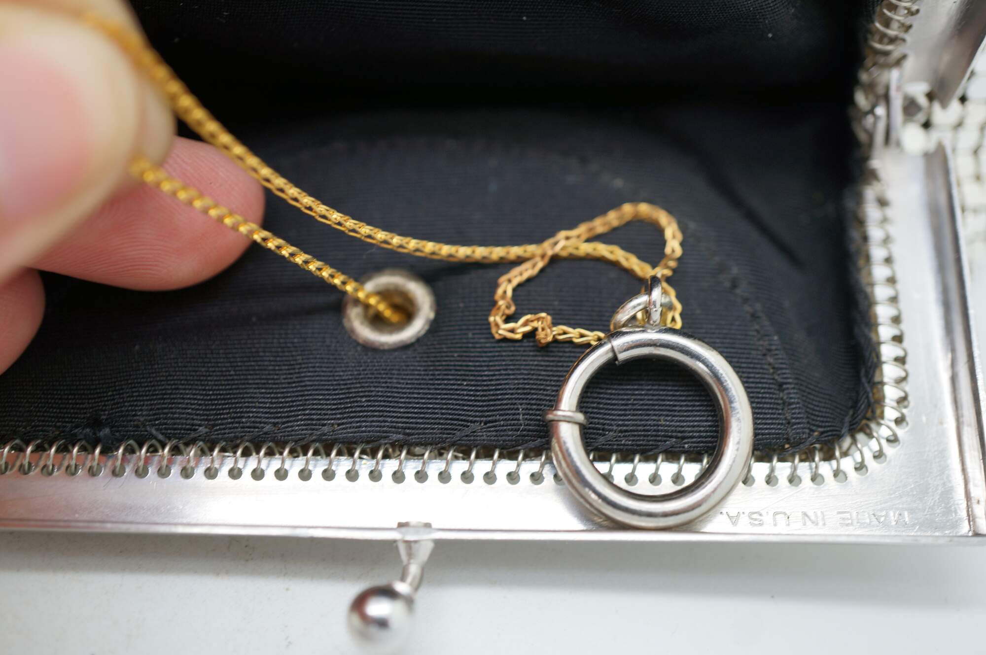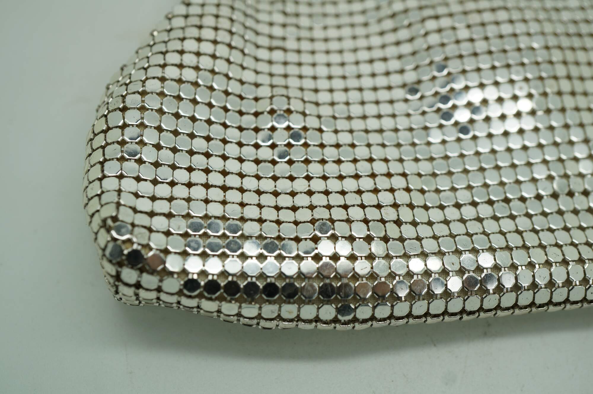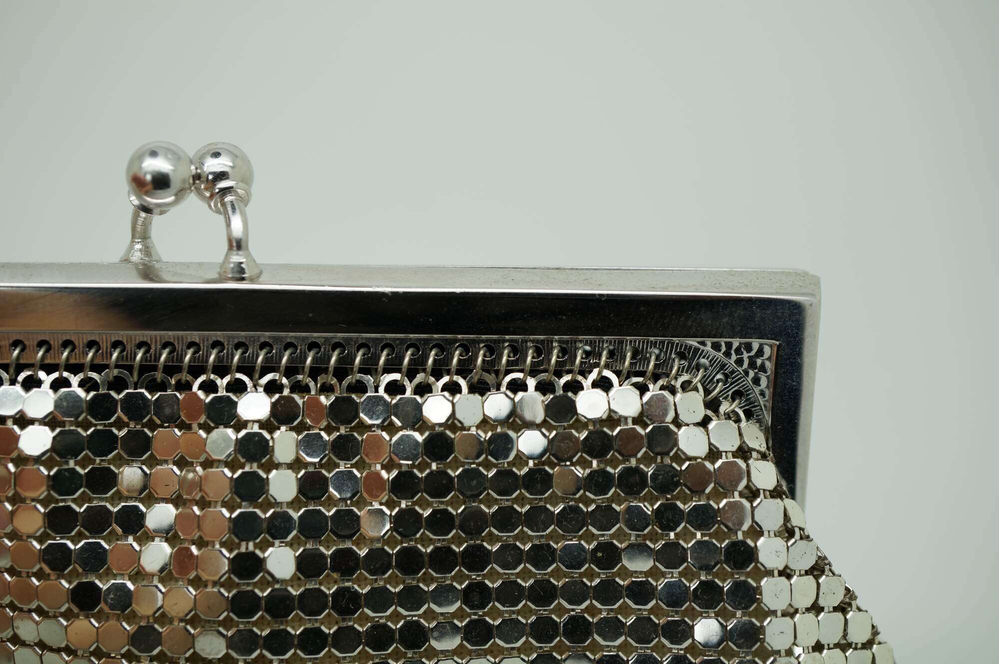 "In 1876, Wade Davis & Company, the precursor to Whiting & Davis, is founded by William H. Wade, Edward P. Davis and Louis Heckman in Massachusetts. In 1892 Mr. Whiting designs the first mesh bag, with all rings formed and joined by hand. By 1912 a machine is invented to automate the mesh making process. Charles Whiting joins the company in 1880 at age 16 and swiftly moves up the ranks to management. In 1896, he and Mr. Davis form a partnership and raise the money to purchase the company, renaming it The Whiting & Davis Company. Whiting & Davis’ beautiful, high quality purses are the coveted accessory of flappers, actresses and “well dressed women everywhere.” Through automation and advertising, the company expands its reach, becoming, and remaining to this day, the world’s leading mesh handbag manufacturer. In the teens and early ‘20s, Whiting & Davis bags are made of small precious metal rings and are unpainted for the most part, their striking designs coming from a mixture of metal colors, artfully joined rings and metal fringe. By the end of the ‘20s, flat Armor mesh painted in bold Deco designs and Dresden mesh, with its tiny rings silkscreened by hand in dreamy Impressionistic shades, take center stage. The 1930s bring high-profile collaborations with iconic designers Paul Poiret and Elsa Schiaparelli, while Whiting & Davis’ famed creations continue to turn up in the hands of stage and screen actresses of the era. The renowned and prolific Elsa Schiaparelli designs for Whiting & Davis in the mid 30s, introducing several new, more modern shapes to the line. Trailblazing French designer, Paul Poiret, the first to design without rigid tailoring and corseting while also launching cosmetics, perfumes and housewares lines, collaborates with Whiting & Davis to create colorful bags with “Parisian allure.” During World War II, a shortage of raw materials leads Whiting & Davis to temporarily stop production of its metal mesh bags and turn its attention to supporting the war effort by manufacturing radar equipment. At the close of the war, the company returns to making its signature mesh handbags as well as other mesh goods. In the 1960's Whiting & Davis embraces the Mod Era with simpler styles and clean lines. In the 1970's Gold Rush! Whiting’s “soft, sensuous and slithery handbags,” halter tops and dresses are the perfect glittering accessories for a decade spent writhing under disco balls to Donna Summer and ABBA. The excesses of the late ‘70s slide right into the fashions of the ‘80s, with mesh accessories and apparel continuing to drape some of the most beautiful bodies of the time. The love of Whiting & Davis handbags (new and vintage) continues today with top actresses, musicians, stylists and bloggers. Whiting & Davis remains the recognized leader in metal mesh handbags more than 120 years after its first mesh handbag was produced and continues to attract discerning fans, including actresses, musicians (and you!), by regularly introducing new styles with an eye toward both trend and functionality. While that first bag was simple, unpainted ring mesh, Whiting bags now come in a variety of shapes, colors and mesh styles with trims such as snakeskin, studs and SWAROVSKI ELEMENTS." (Source: Whiting & Davis)