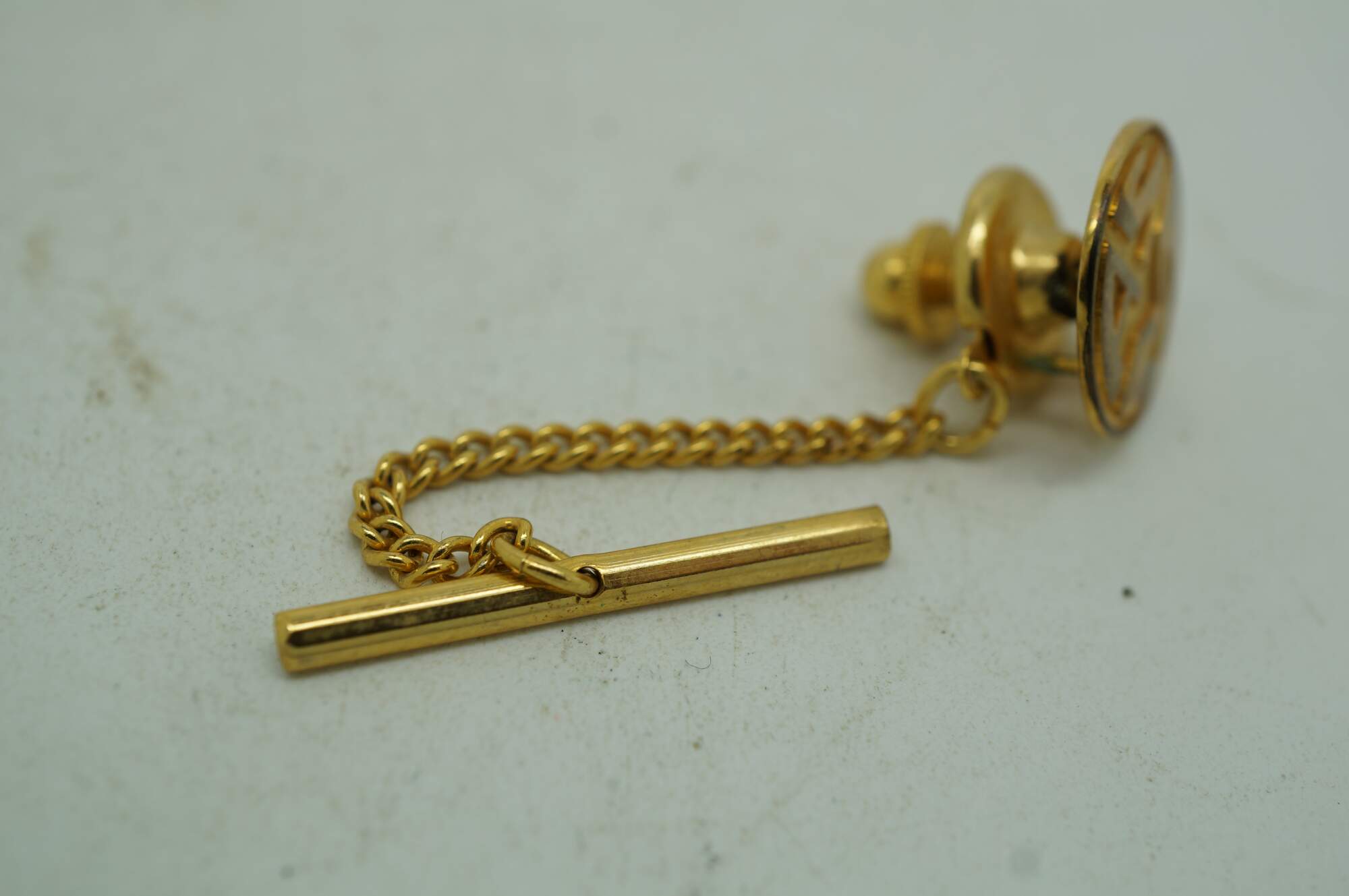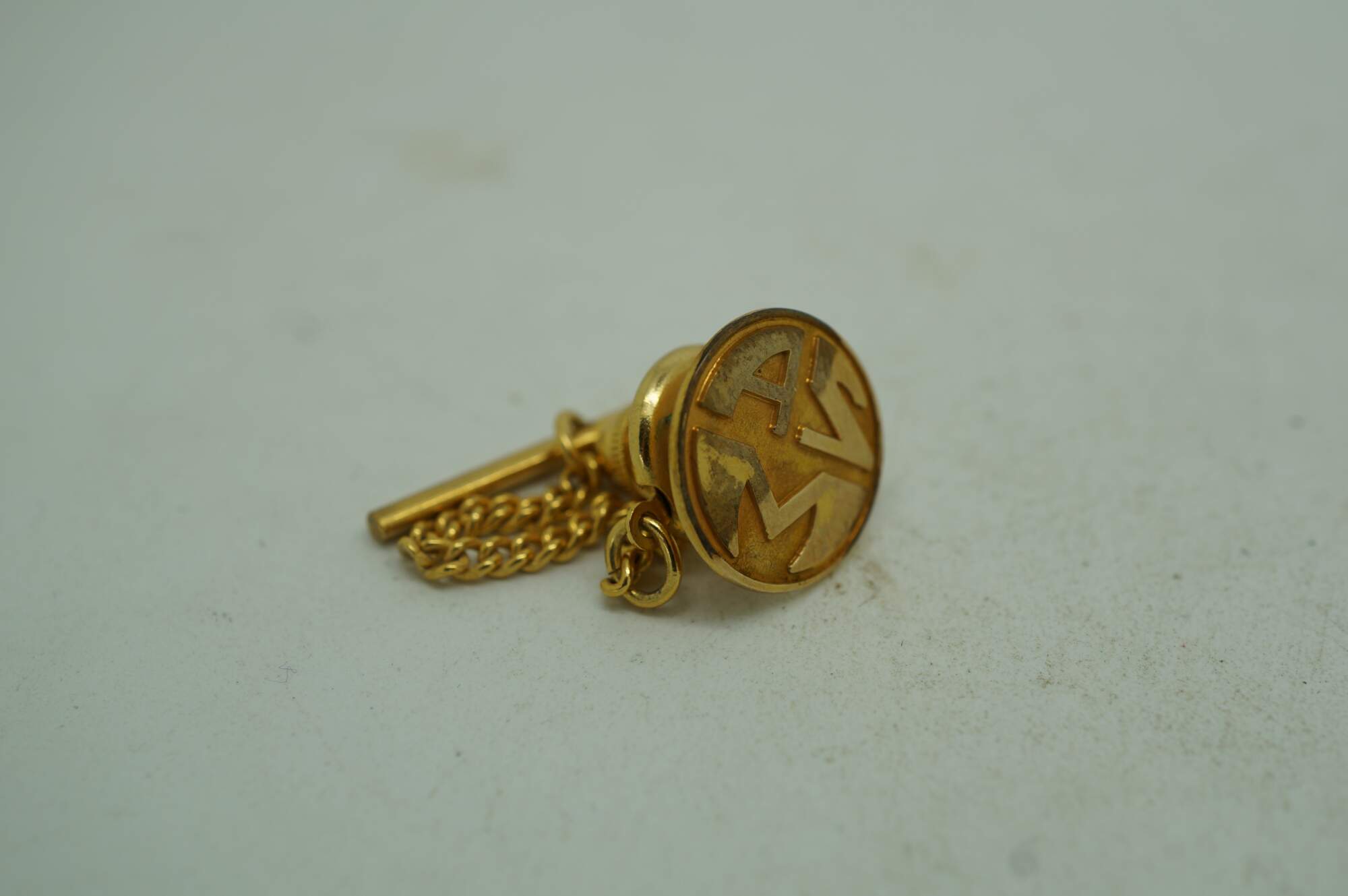 Vintage 10K gold lapel pin / tie tac featuring the initials ASM in art deco font. Marked 10K SG on reverse.