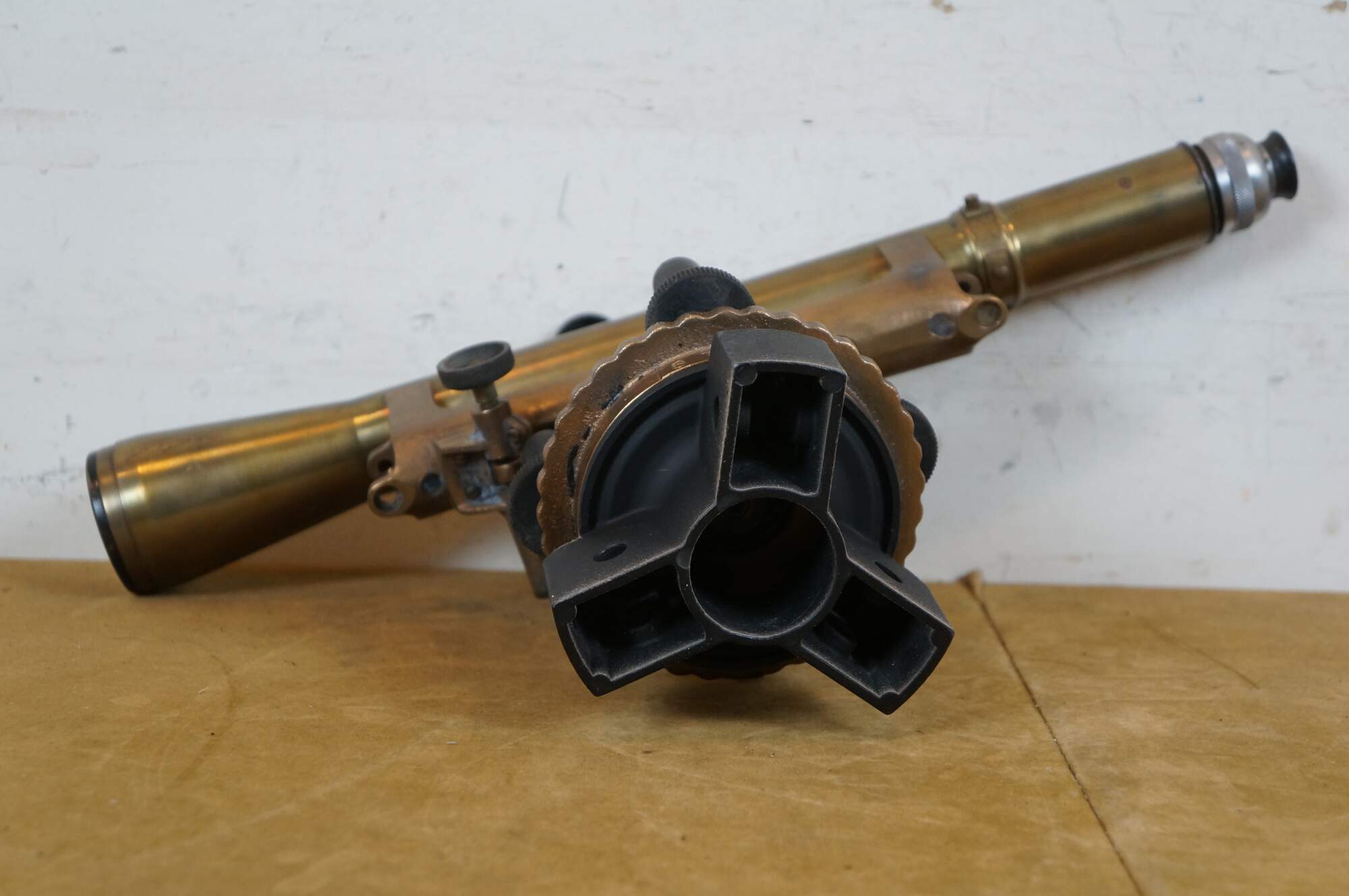 Mid 20th century US Army issue Keuffel and Esser / Gurley surveyor's scope / transit level. Scope marked W. & L.E. Gurley, Troy, NY, USA - 431915. Base marked 8 THDS - K&E - 3 1/2 x 8.