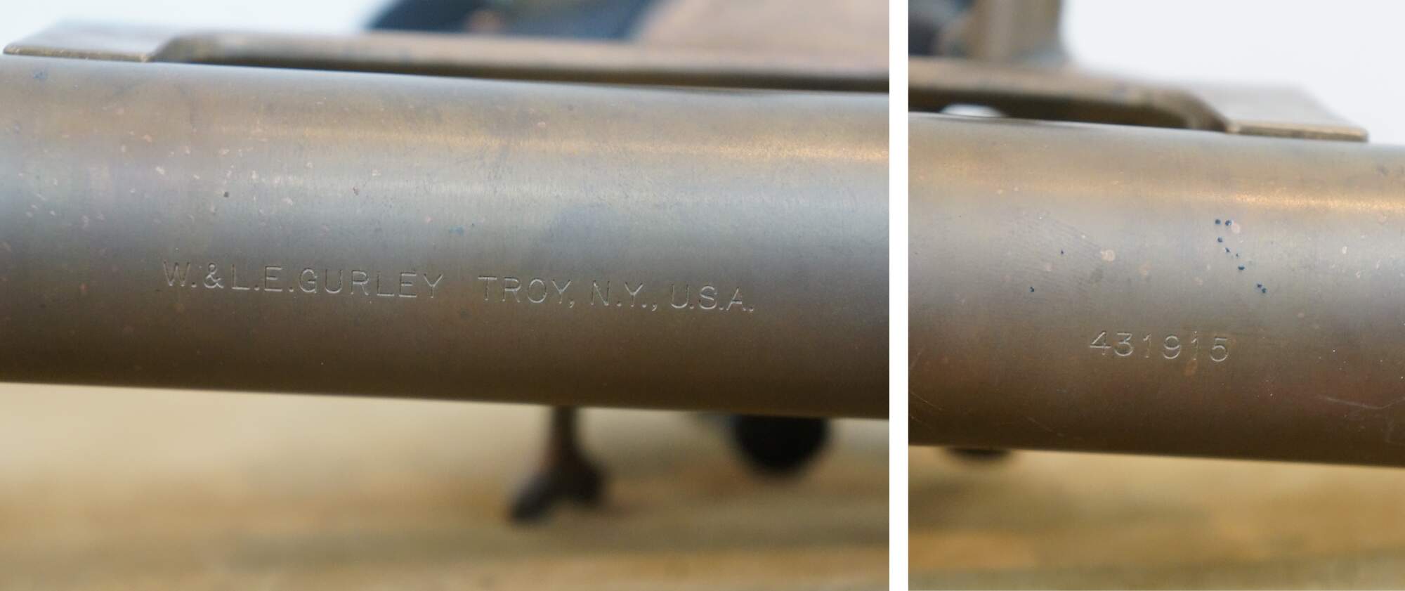 "The Gurley enterprise was established in 1845, first as the partnership of Phelps & Gurley and in 1852 as W. & L. E. Gurley. William Gurley and his younger brother Lewis E. were both engineering alumni of Rensselaer Polytechnic Institute, in Troy, NY, and brought to the business a hunger for technical innovation and unrivaled marketing skill. Exposure at the Centennial Exposition in 1876 launched the company into international prominence from which it never fell. The brothers built a factory in 1852 that operated in departments, each department turning out different components, which were then assembled. This revolutionized the industry which, to that time, operated as small shops making, essentially, individual instruments. Gurley was able to roughly halve the price of their instruments over those of their competition, while maintaining quality. Throughout the 19th century Gurley continued to expand its product line and gradually moved into others. In 1885 Gurley began making hydrologic equipment, like current meters; in 1903 they opened a department of Weights & Measures; in 1905 they acquired Charles Wilder Thermometers and moved it to Troy; in 1908 they opened Department P, making mechanical, electrical, and scientific apparatus; in 1923 they launched a line of paper testing equipment; and in the 1950s moved into applications of optical encoder technology. Incorporated in 1900, Gurley responded to the worldwide demand for their products by opening the Seattle Factory Branch in 1909, to serve the Pacific Rim and Asia. Gurley remained highly visible to the engineering and surveying professions by supplying instruments to major engineering projects and to expeditions, like Admiral Byrd's. During World War II, Gurley distinguished itself by winning coveted Army-Navy E Awards for outstanding contribution to the war effort. Teledyne Corporation purchased W. & L. E. Gurley in 1968 and the company became Teledyne Gurley. Production of surveying instruments ceased in 1980 in the face of stiff foreign competition and the technological shift away from optical instruments. In 1993 Teledyne sold Gurley and the company became Gurley Precision Instruments, Inc." (Source: Gurley)