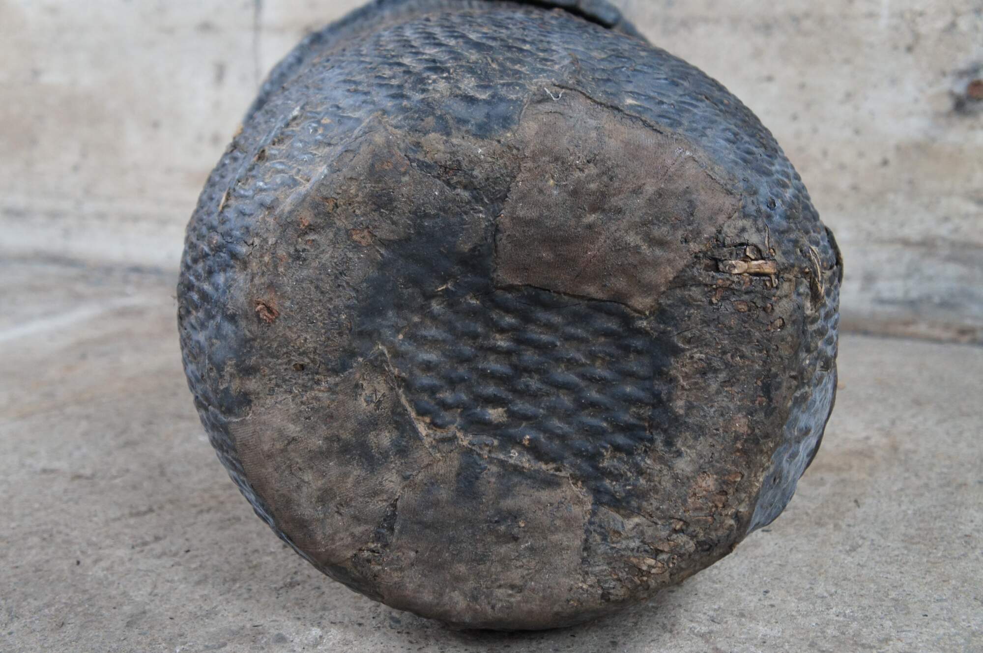 Antique Chinese rice basket featuring woven reed and willow with bentwood handle. Each basket differs slightly in characteristics and measurements - some have calligraphy, some richer / darker / lighter in color etc.