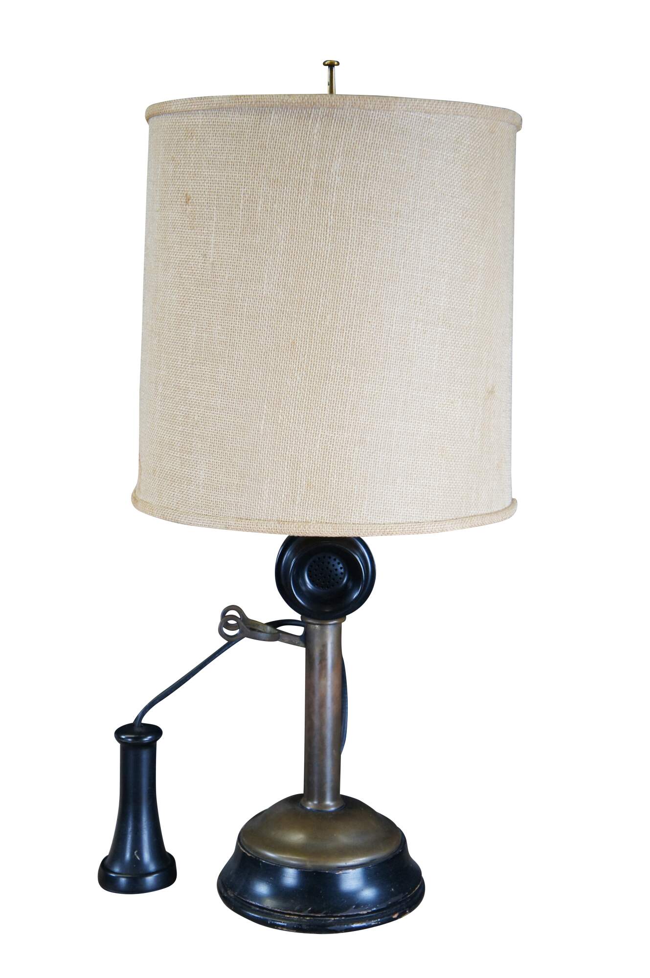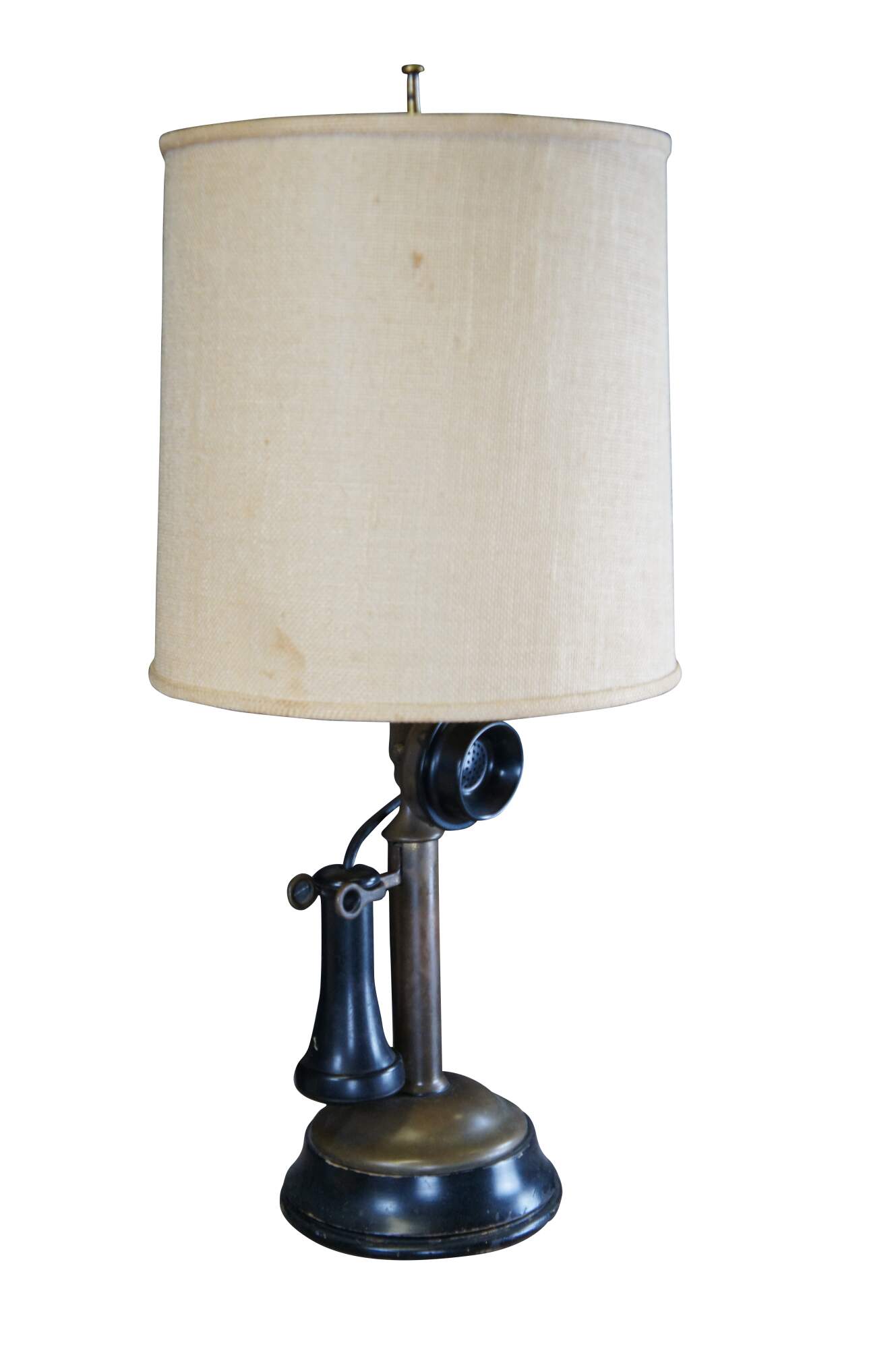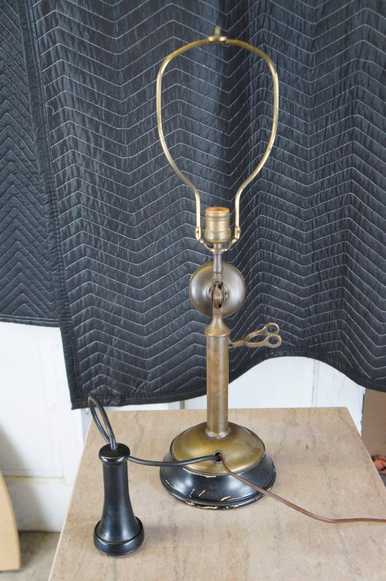 Early 1900s Western Electric Candlestick Lamp. The lamp is turned on by lifting the earpiece off the handle. A unique timless design that will bring a smile after every use.