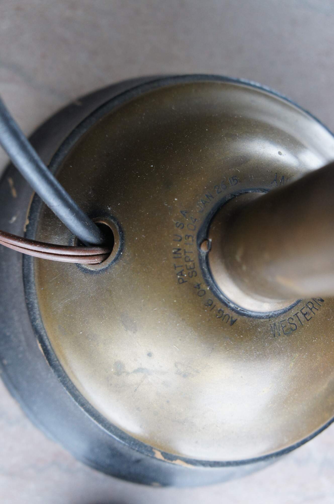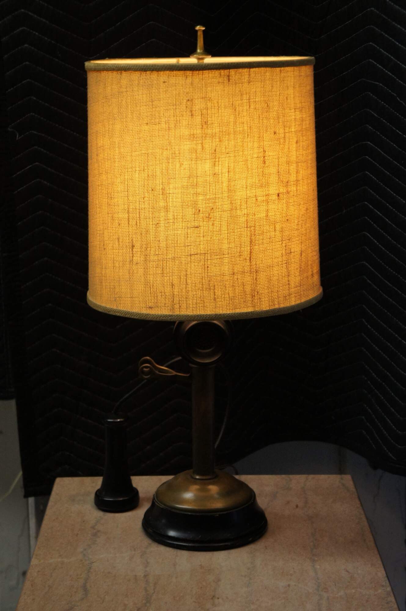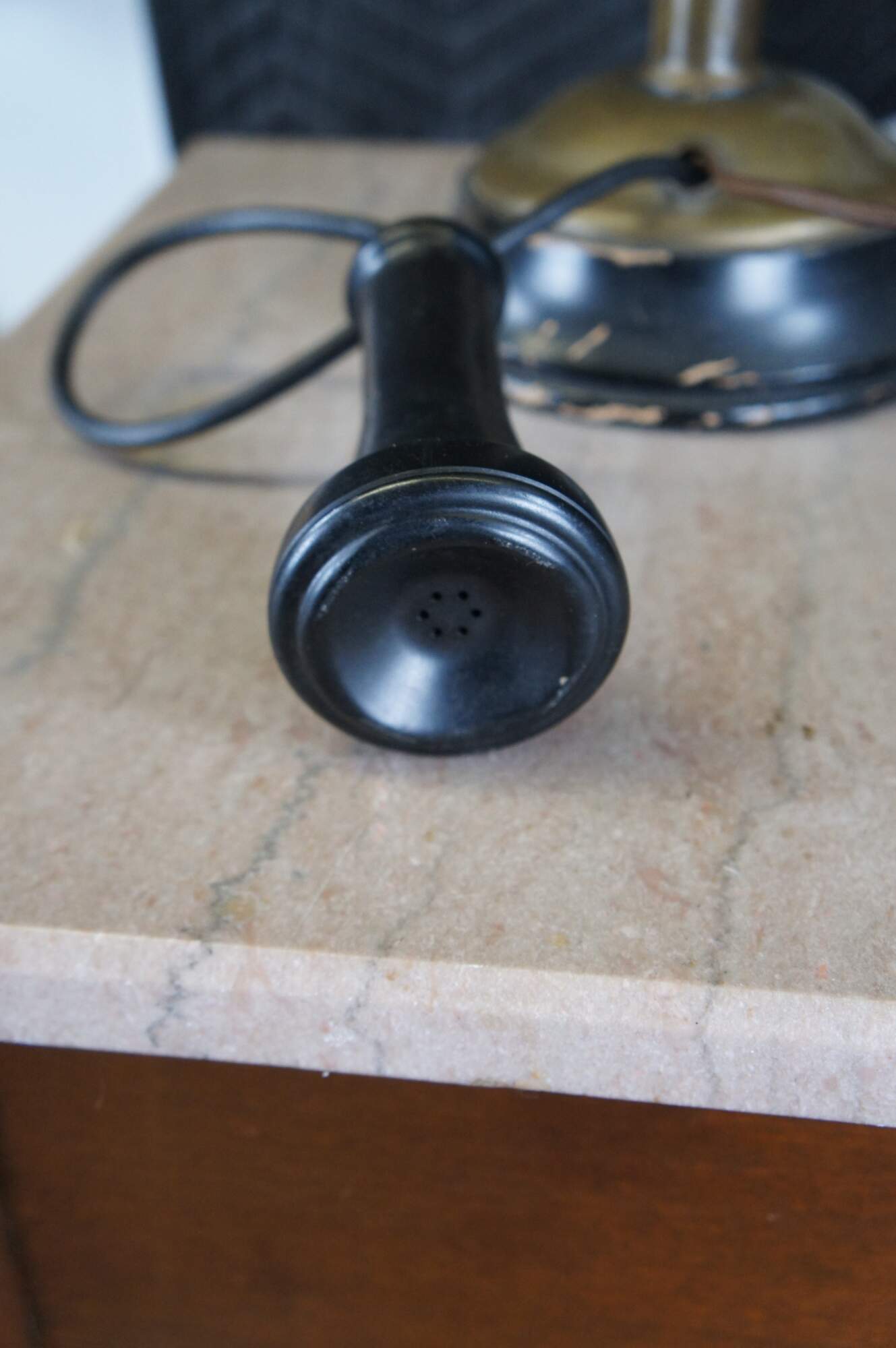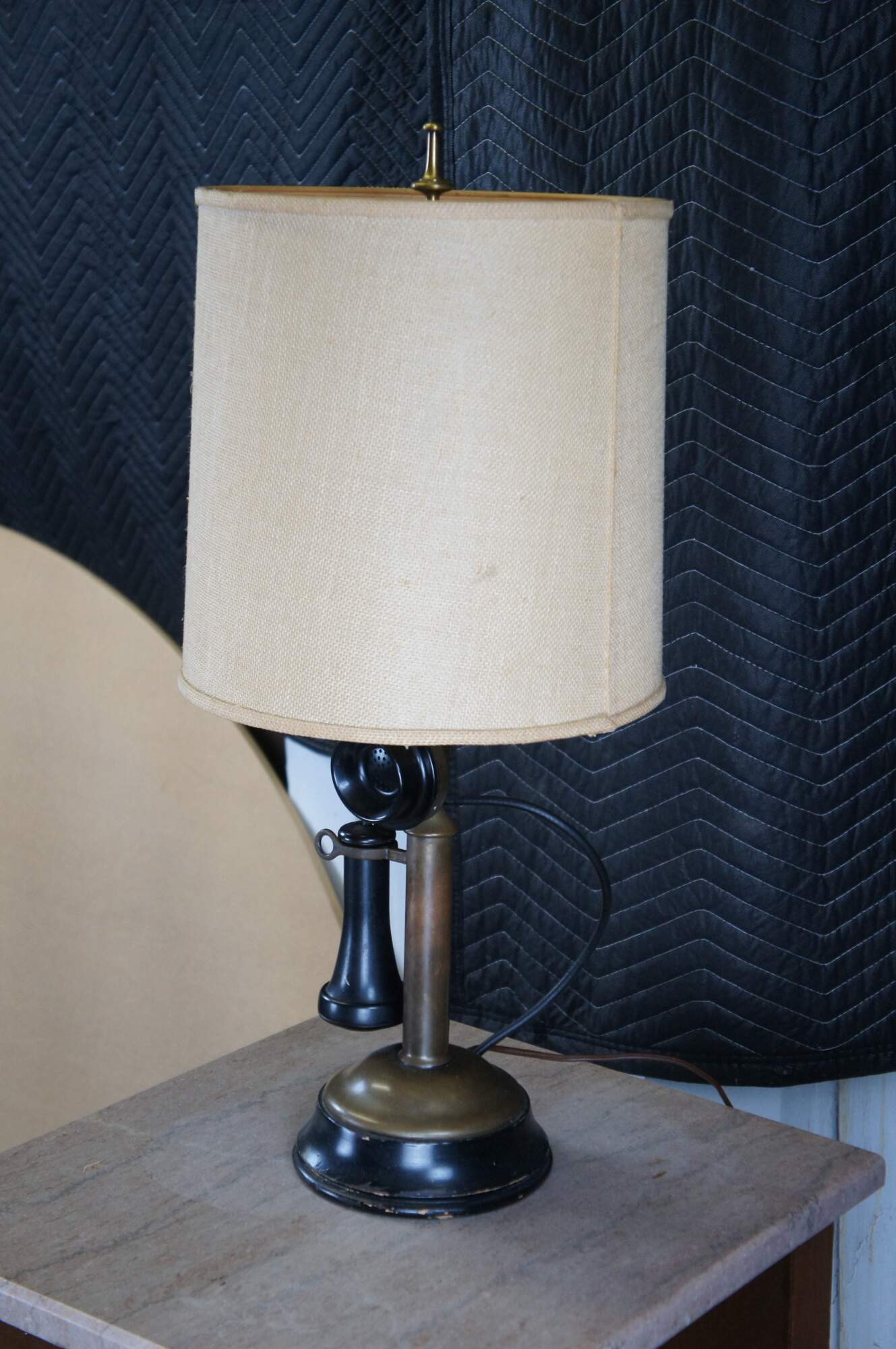 Early 1900s Western Electric Candlestick Lamp. The lamp is turned on by lifting the earpiece off the handle. A unique timless design that will bring a smile after every use.
