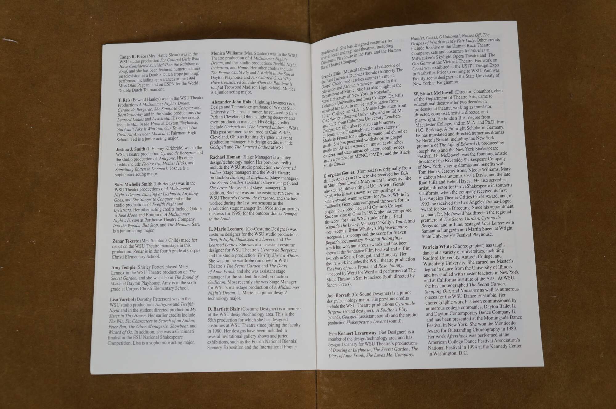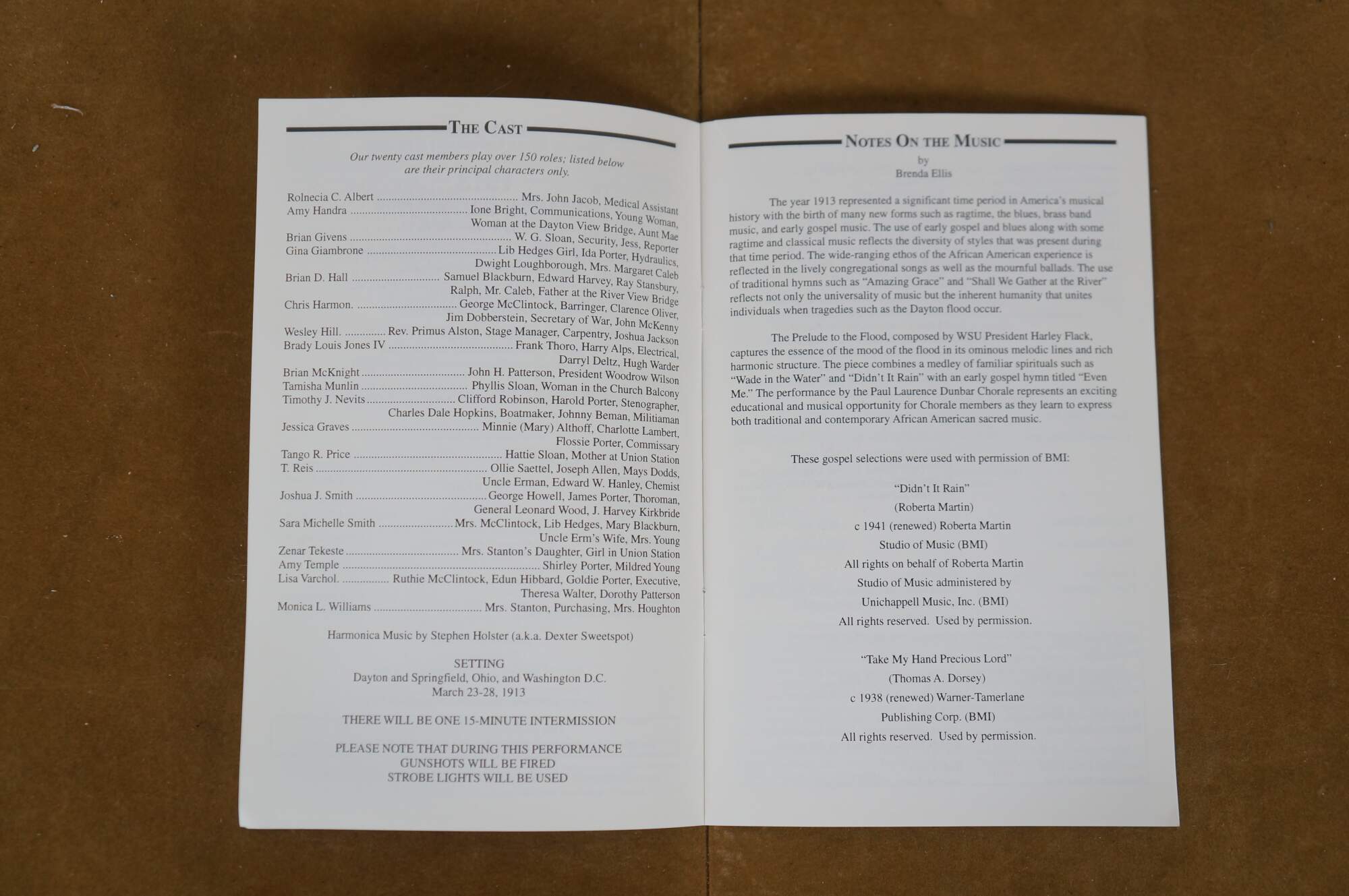 Vintage 1997 Stage Wright theatre program and tickets. The Wright State University Department of Theatre Arts presents 1913: The Great Dayton Flood (An Epic Drama with Gospel Blues) by Timothy J. Nevits and W. Stuart McDowell at the Victoria Theatre.
