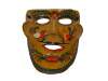 Vintage 20th century Mexican folk art pottery clay mask, hand painted masculine in mustard yellow with mustche and goatee, decorated with sprigs of flowers and a pair of brightly colored birds.