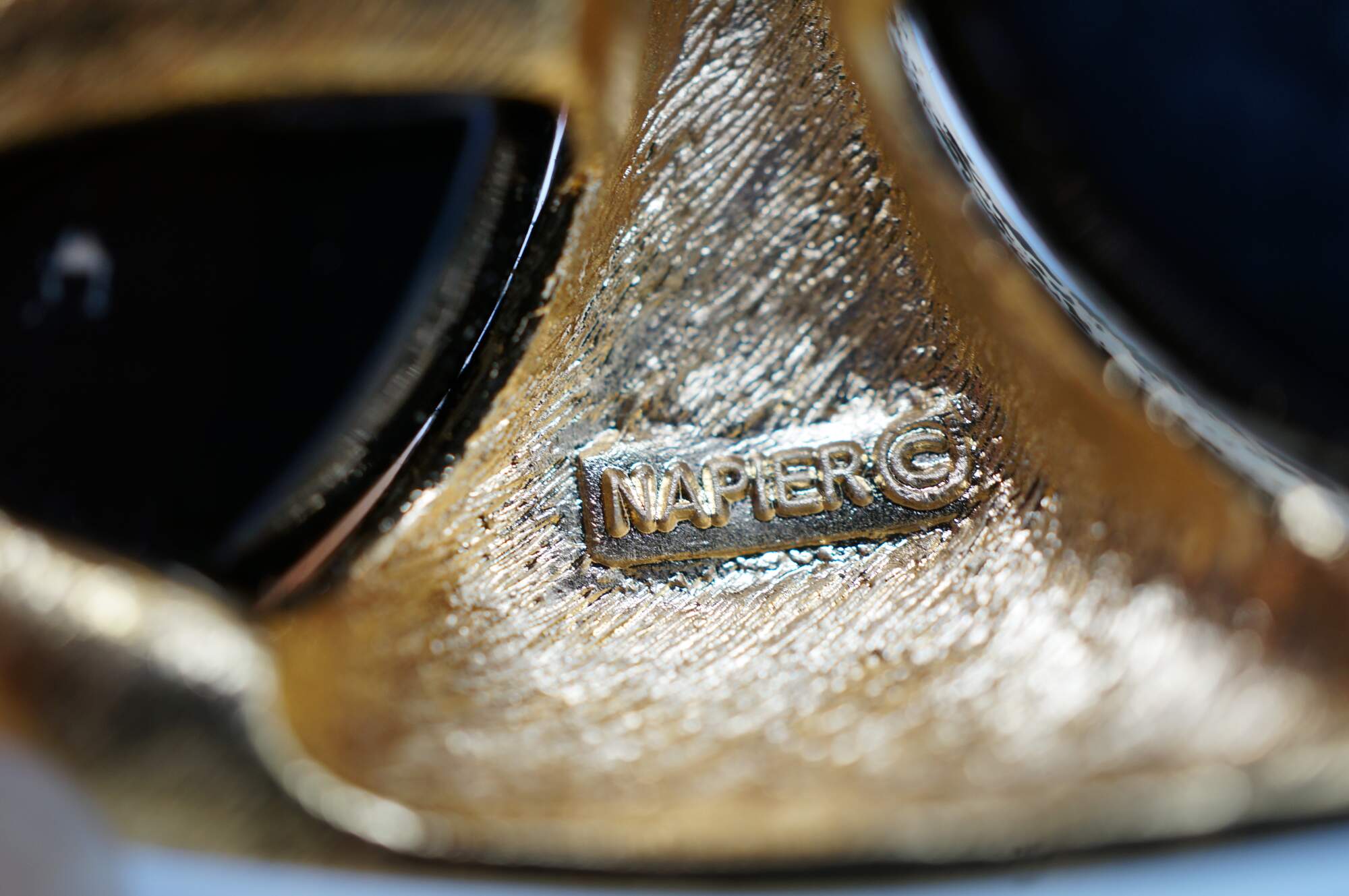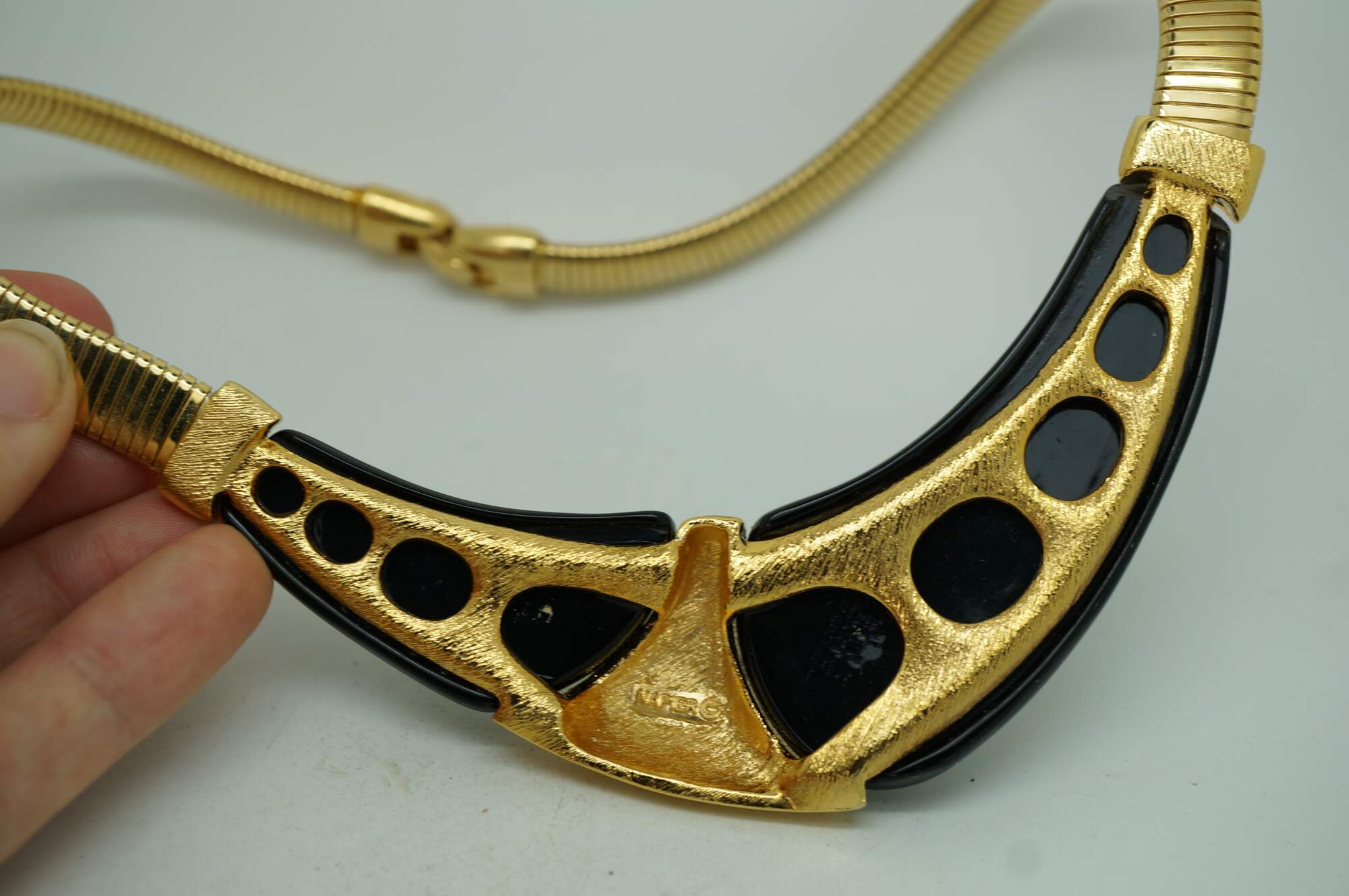 1980's Napier Black & Gold Necklace & Earring Set with Box