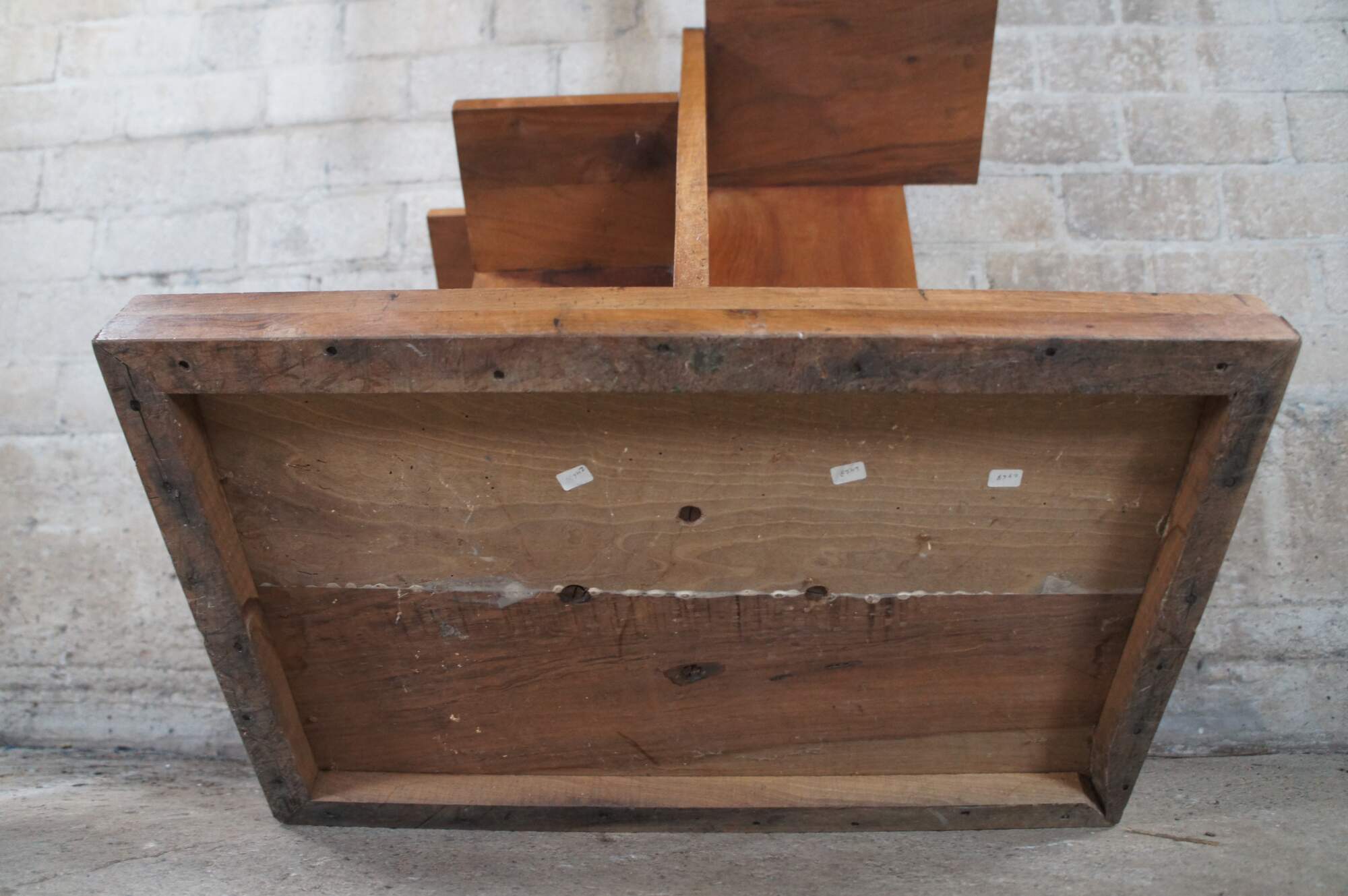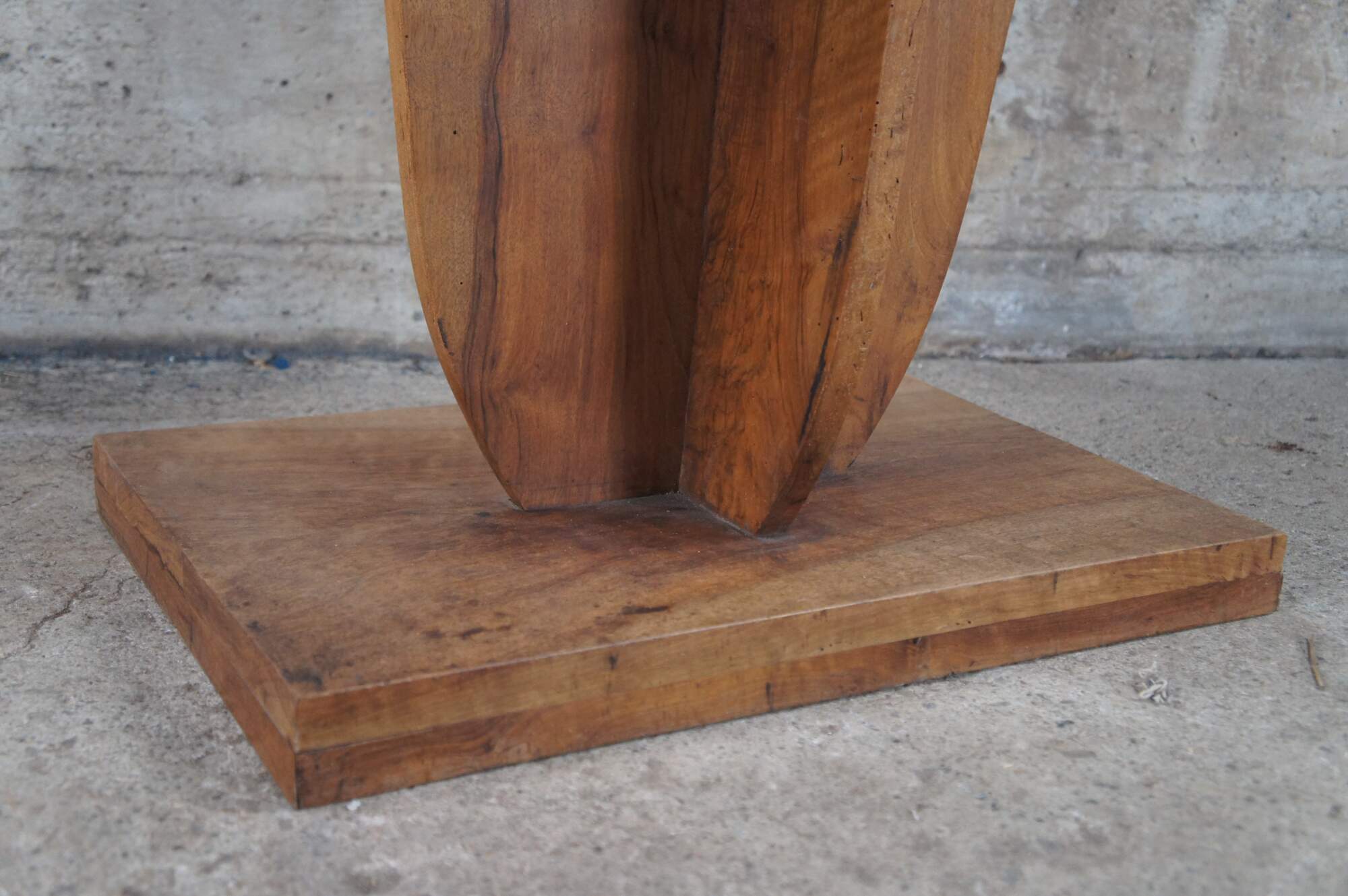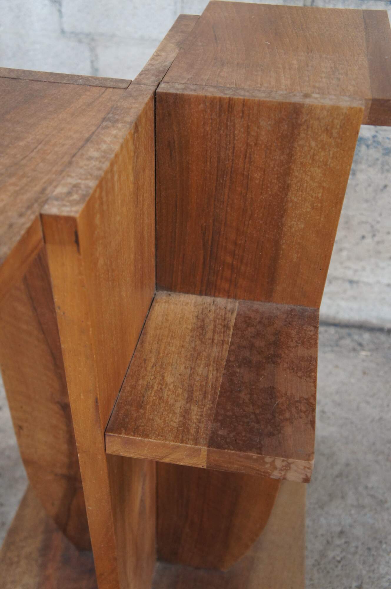 20th Century Art Deco style tiered sculpture stand or side table. Made from American walnut with an abstract form featuring an upper surface and two shelves on each side. The piece is set over a plinth base. A piece of glass could be added to use as a dining or side table.