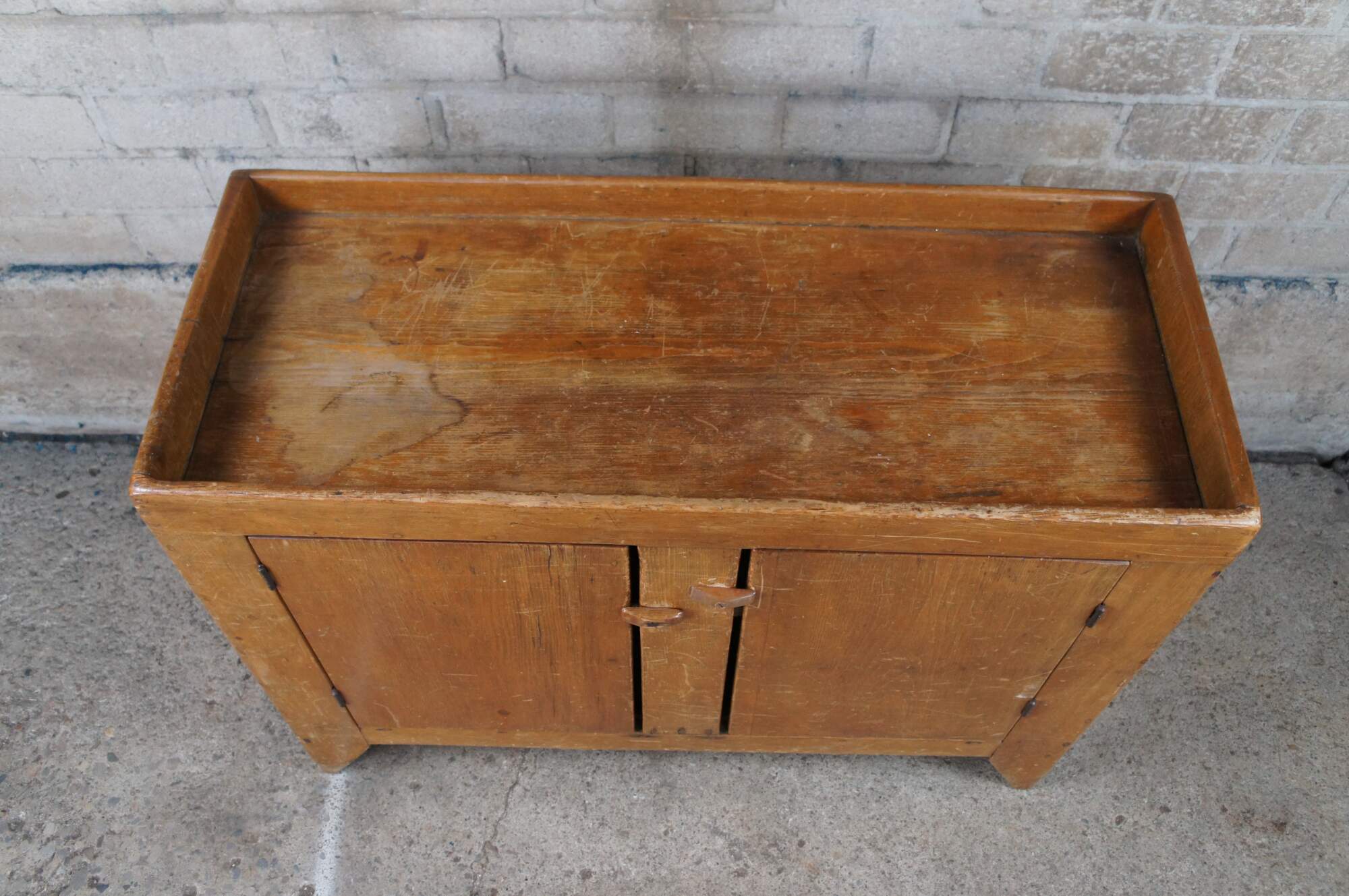 Primitive antique farmhouse dry sink. Made from pine. Features a large basin over a lower cabinet with shelf for storage. Great for use as a pantry, changing station or dry bar.