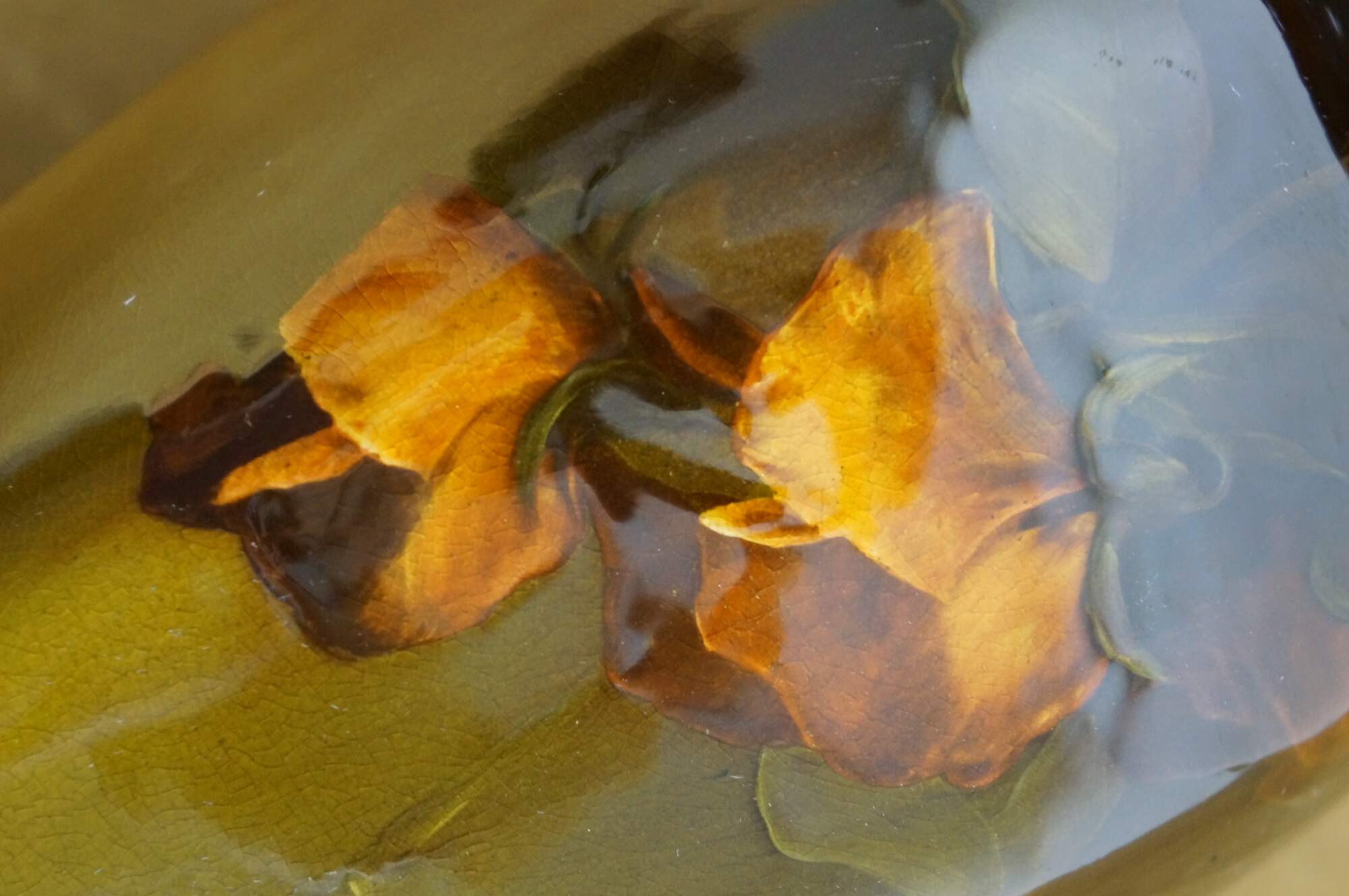 An X scratched in the base usually indicates the piece was a second and was not allowed to be sold at the top quality price; however, the X did not always indicate a second. The Rookwood management was constantly striving to increase business by attempting new methods of merchandising; however, despite all efforts, the salesroom became overstocked. In order to alleviate this problem, a certain amount of perfect pieces were removed and placed in the second room. These were incised with an X and reduced in price, where they sold more readily. Because the X mark does not always mean it’s a second.