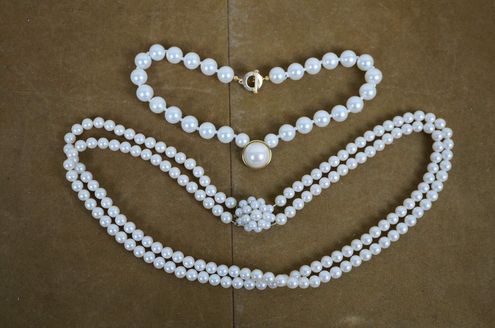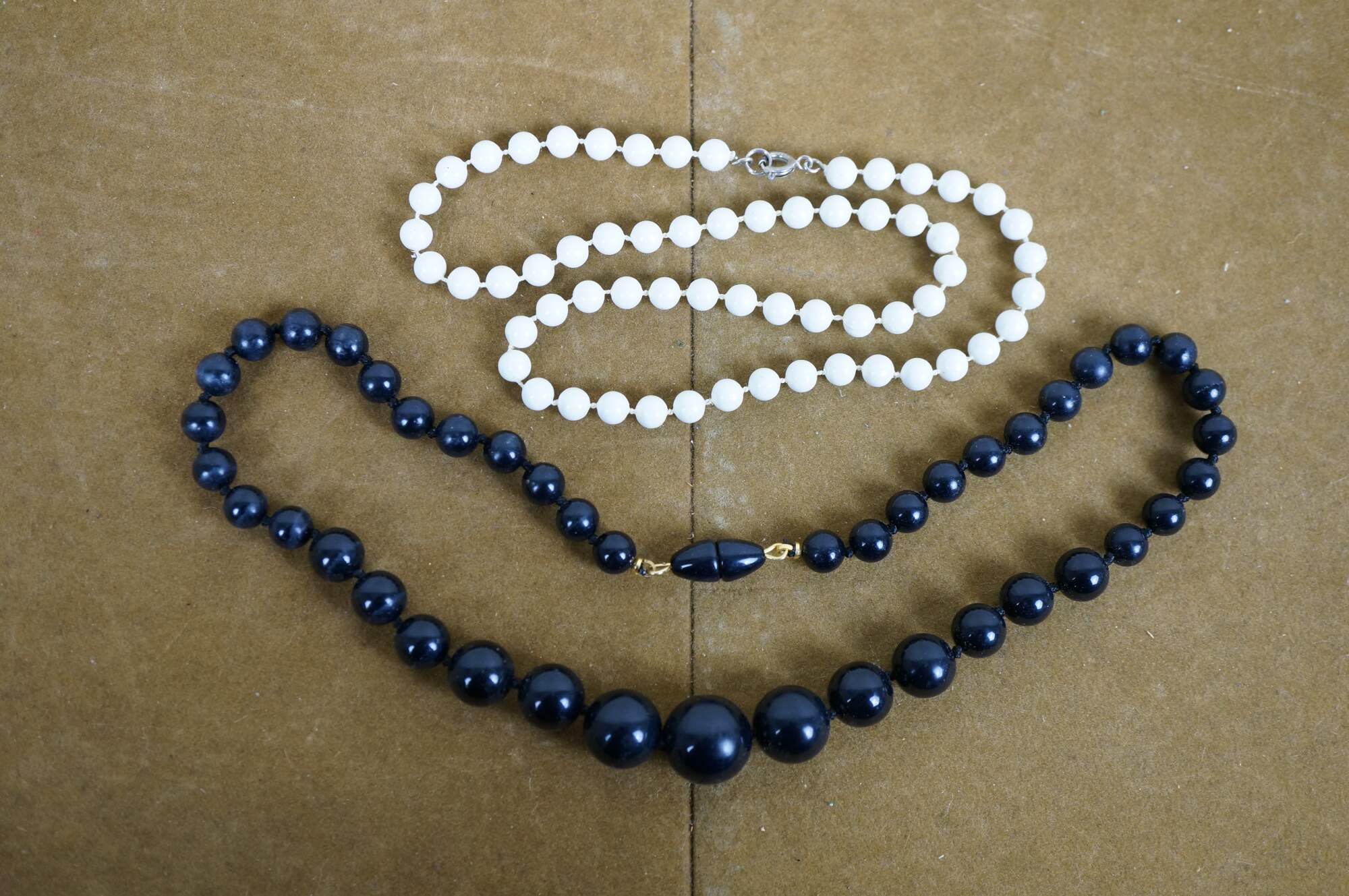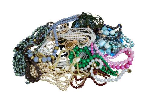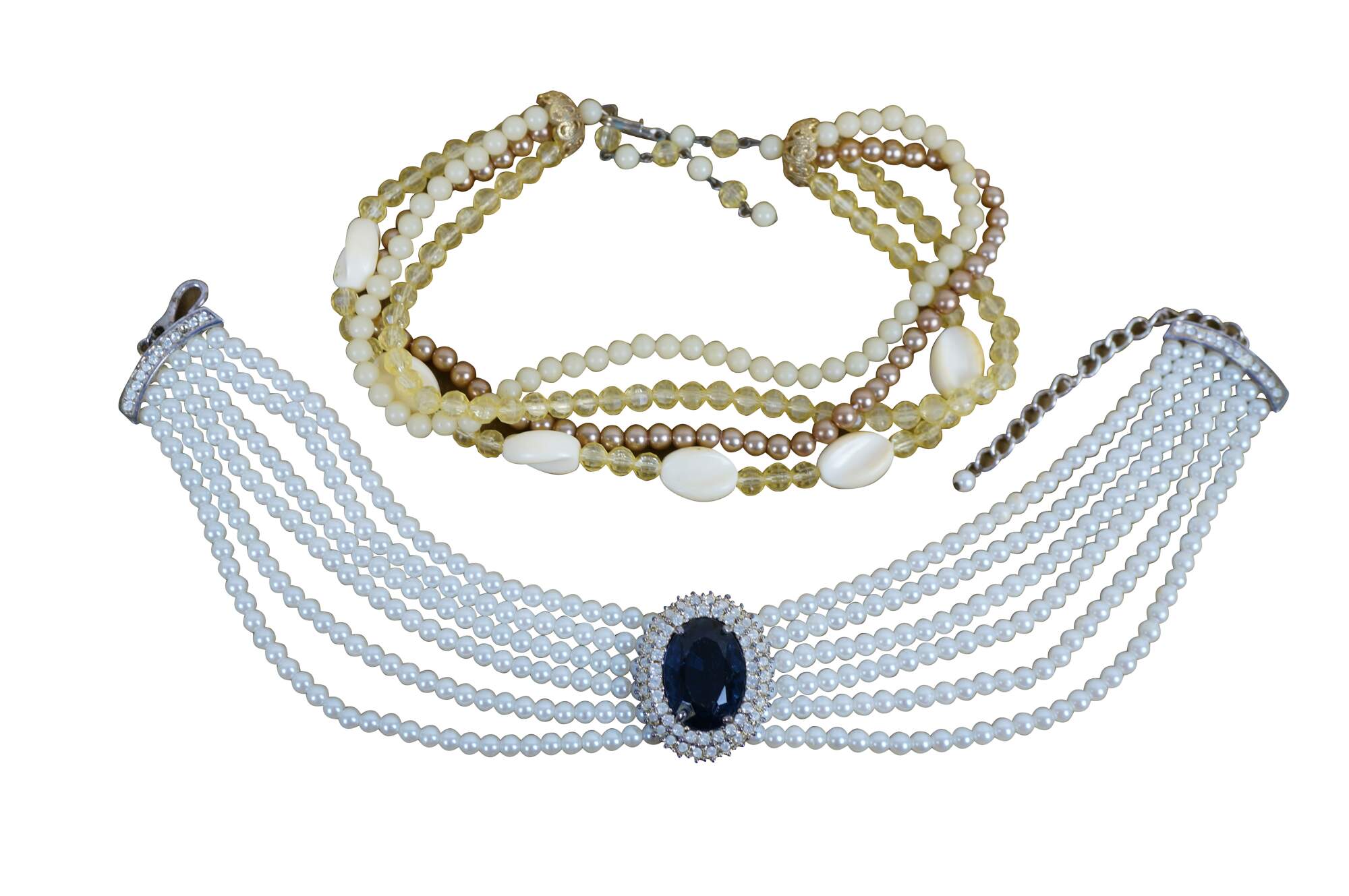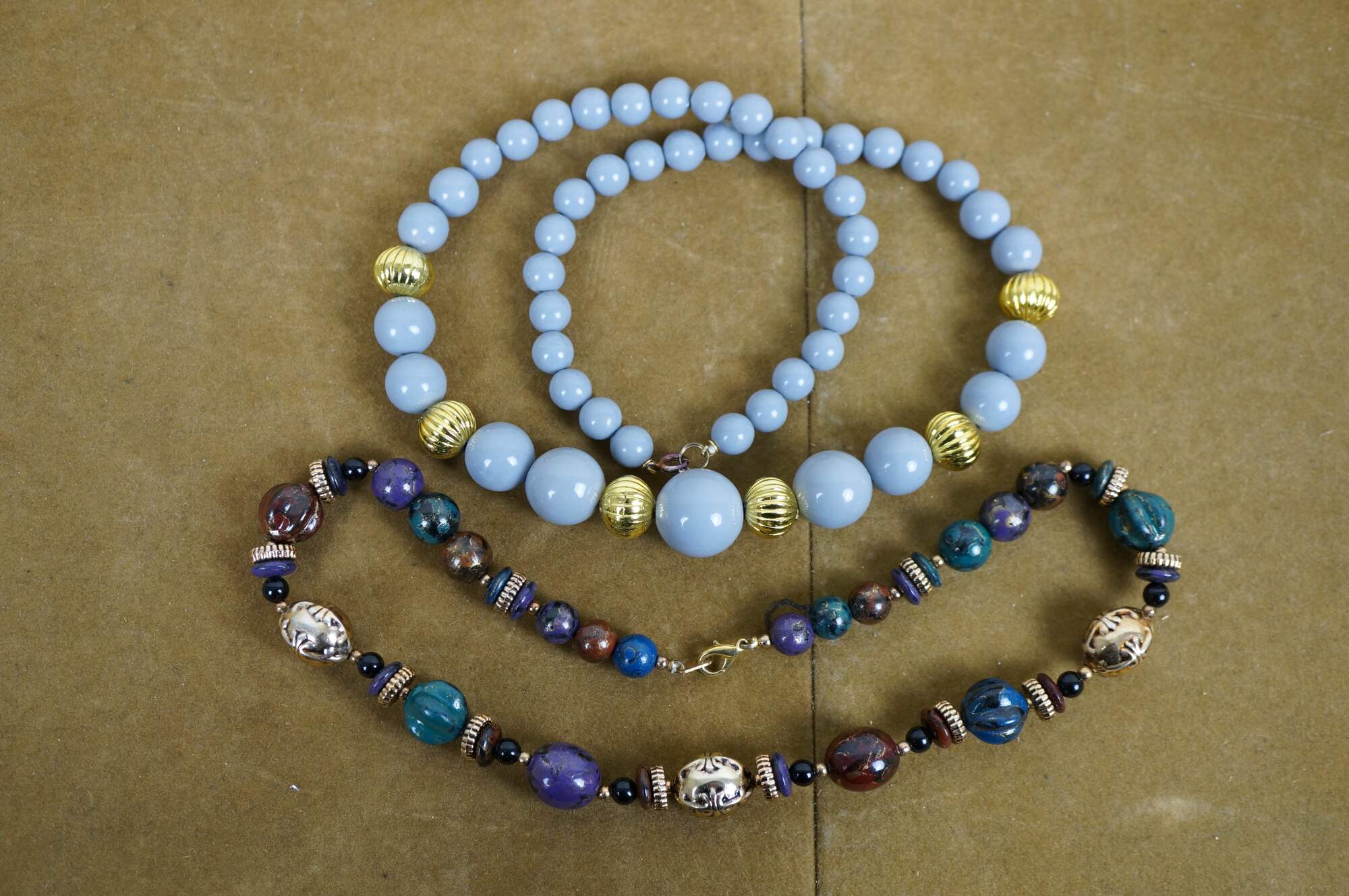 Lot of 20 mid to late 20th century beaded layered and choker style necklaces in a variety of colors. Brands include Marvella, FM, Carolee, MMA, RDC. Several Made in Japan.