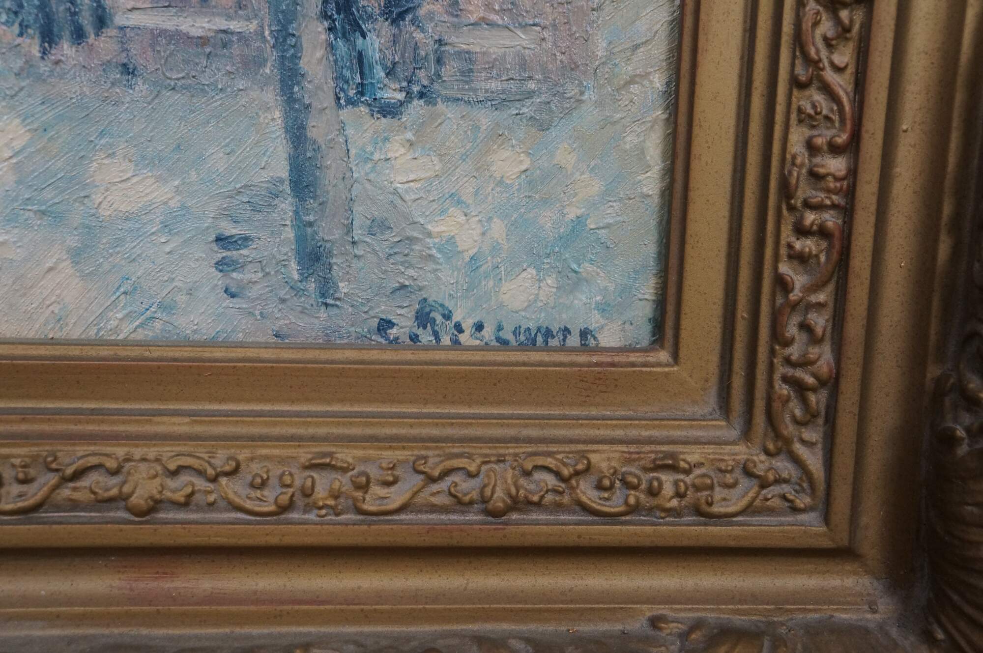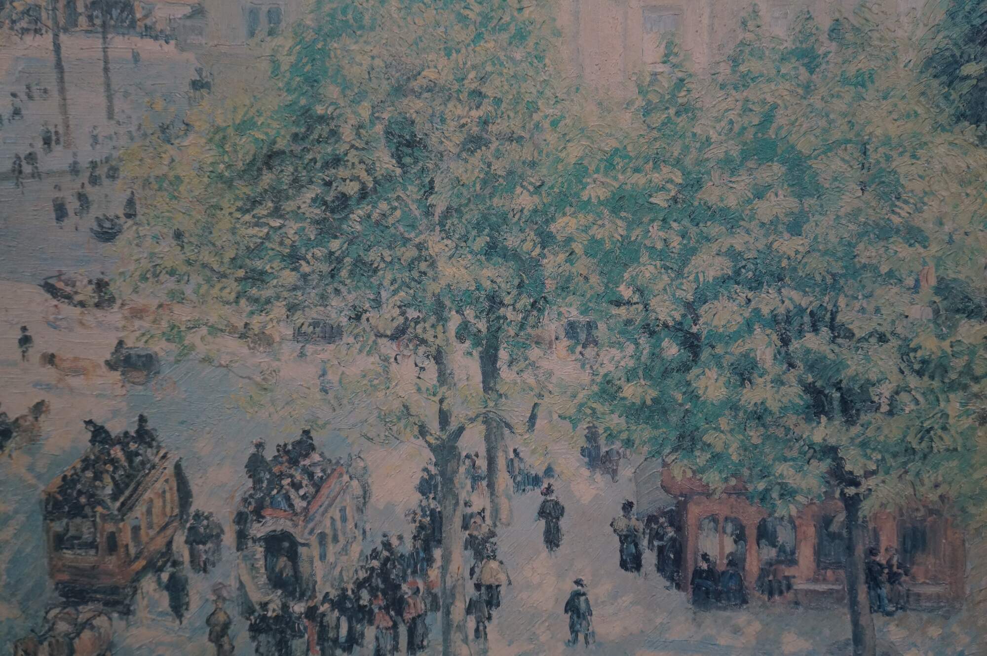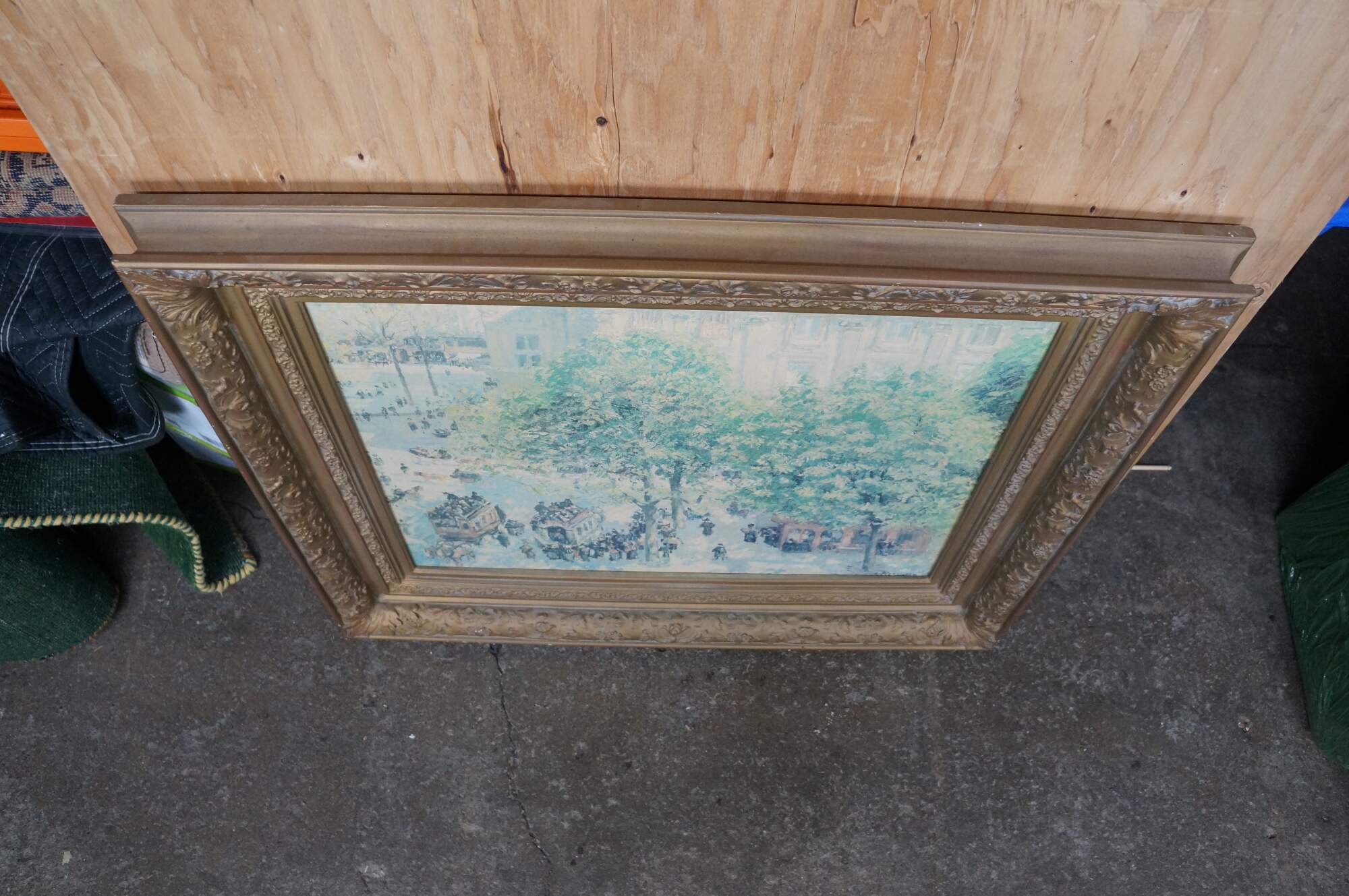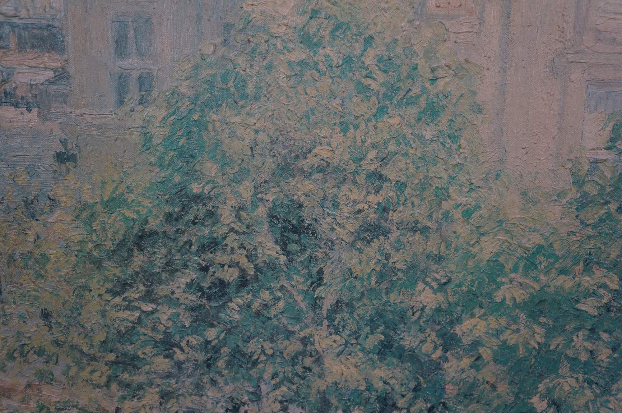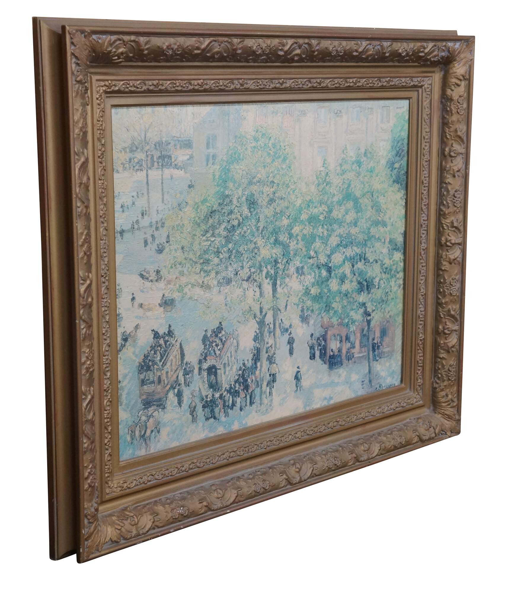 Place du Théâtre-Français, Spring Painting by Camille Pissarro was made in 1898. An impressionist landscape / cityscape showcasing bustling Paris. This beautiful reproduction is an Artagraph Edition of the State Hermitage Museum Collection. No. 299 of 300. Circa 1991. Signed lower right. Ornately framed with gold finish.
