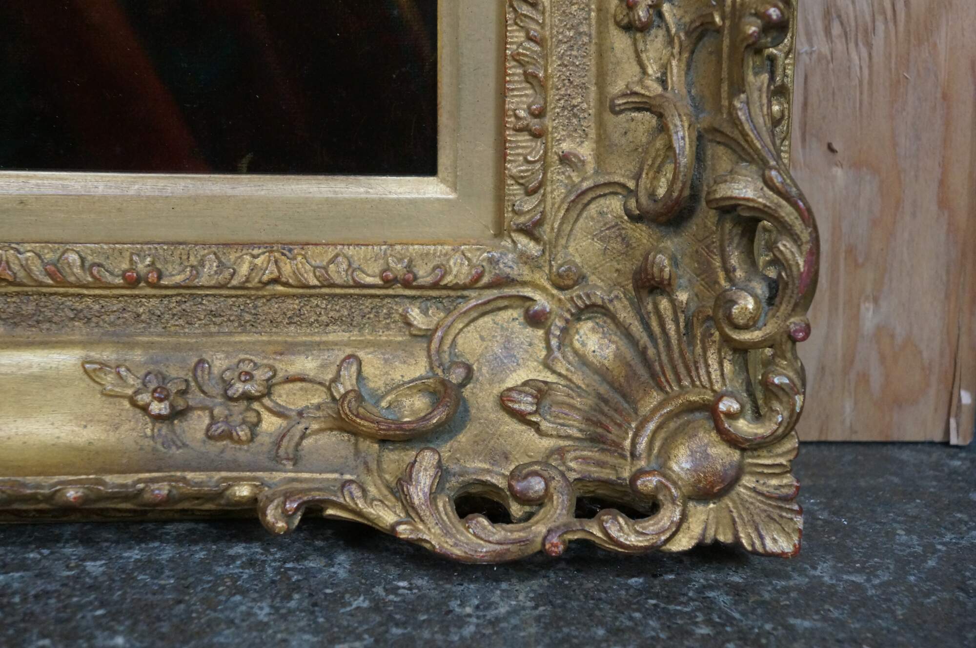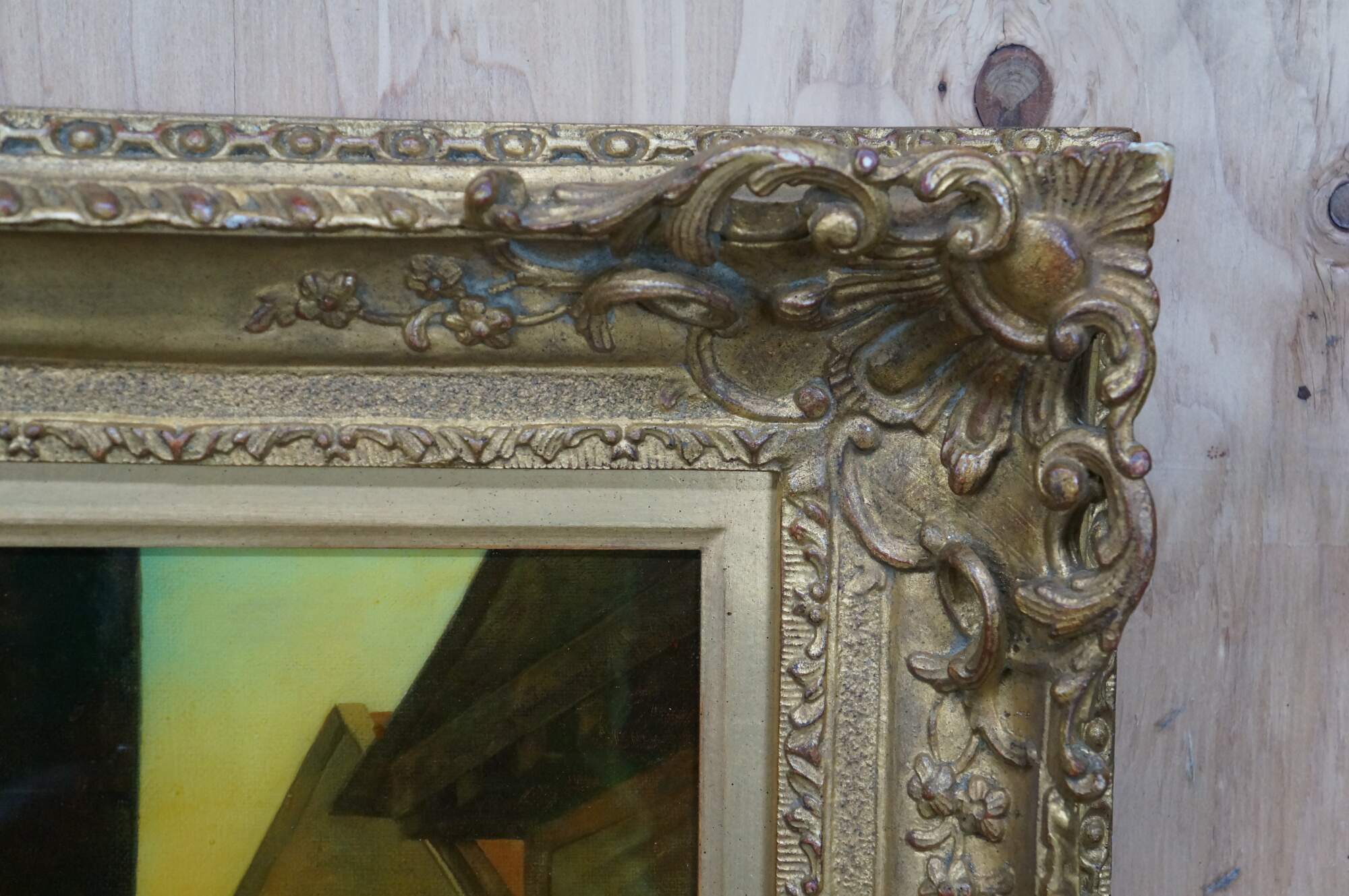 The painting has an epoxy finish for added color and is ornately framed with gold finish.