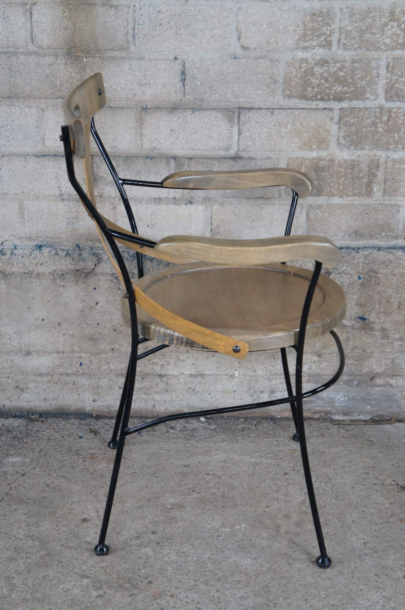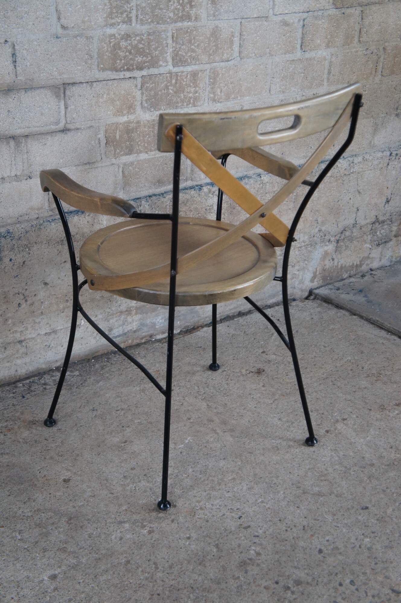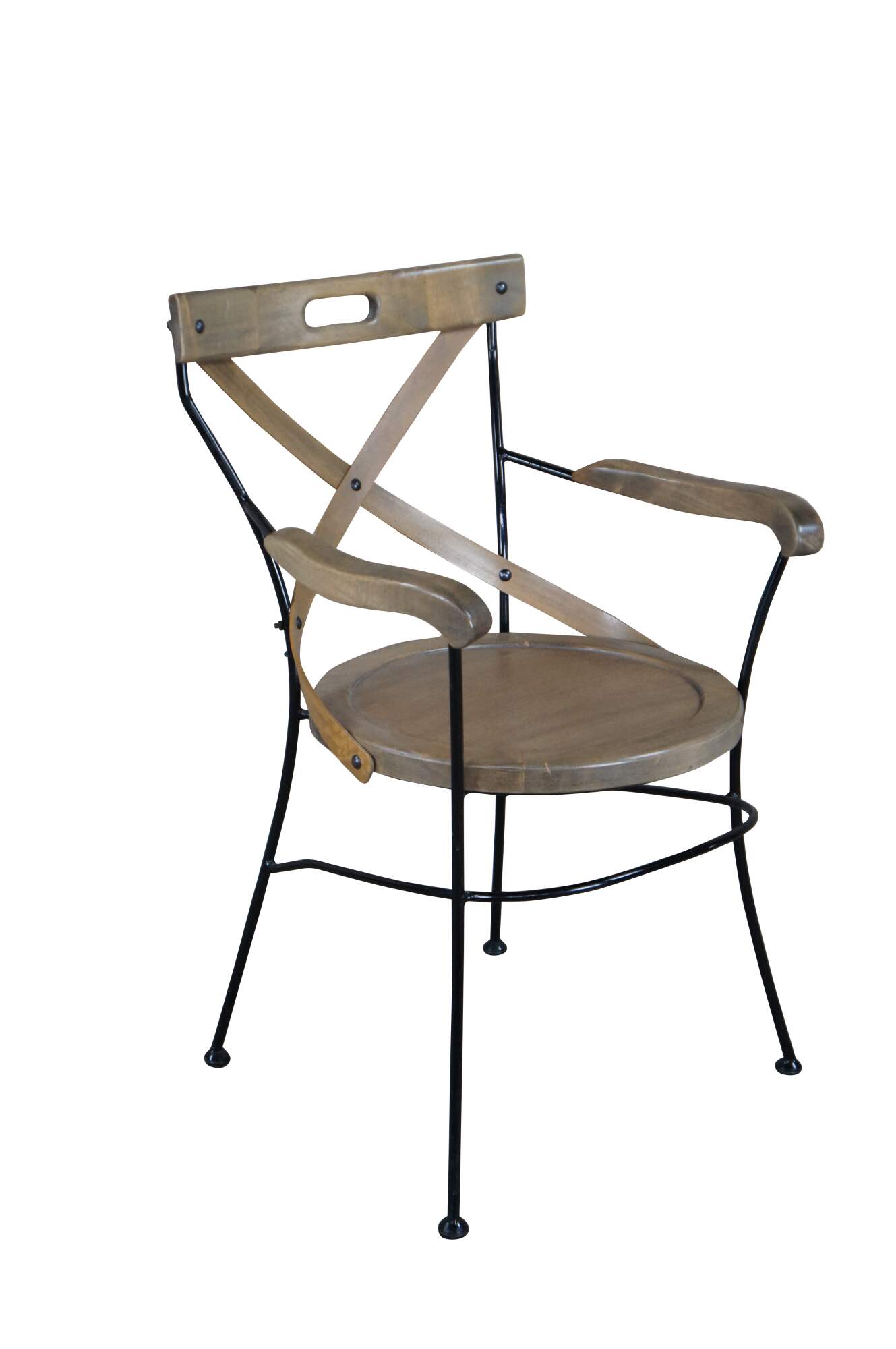 Set of five World Market Cost Plus Anthropologie style campaign dining arm chairs. Made of Birch featuring X back with metal frame. Made in Vietnam.