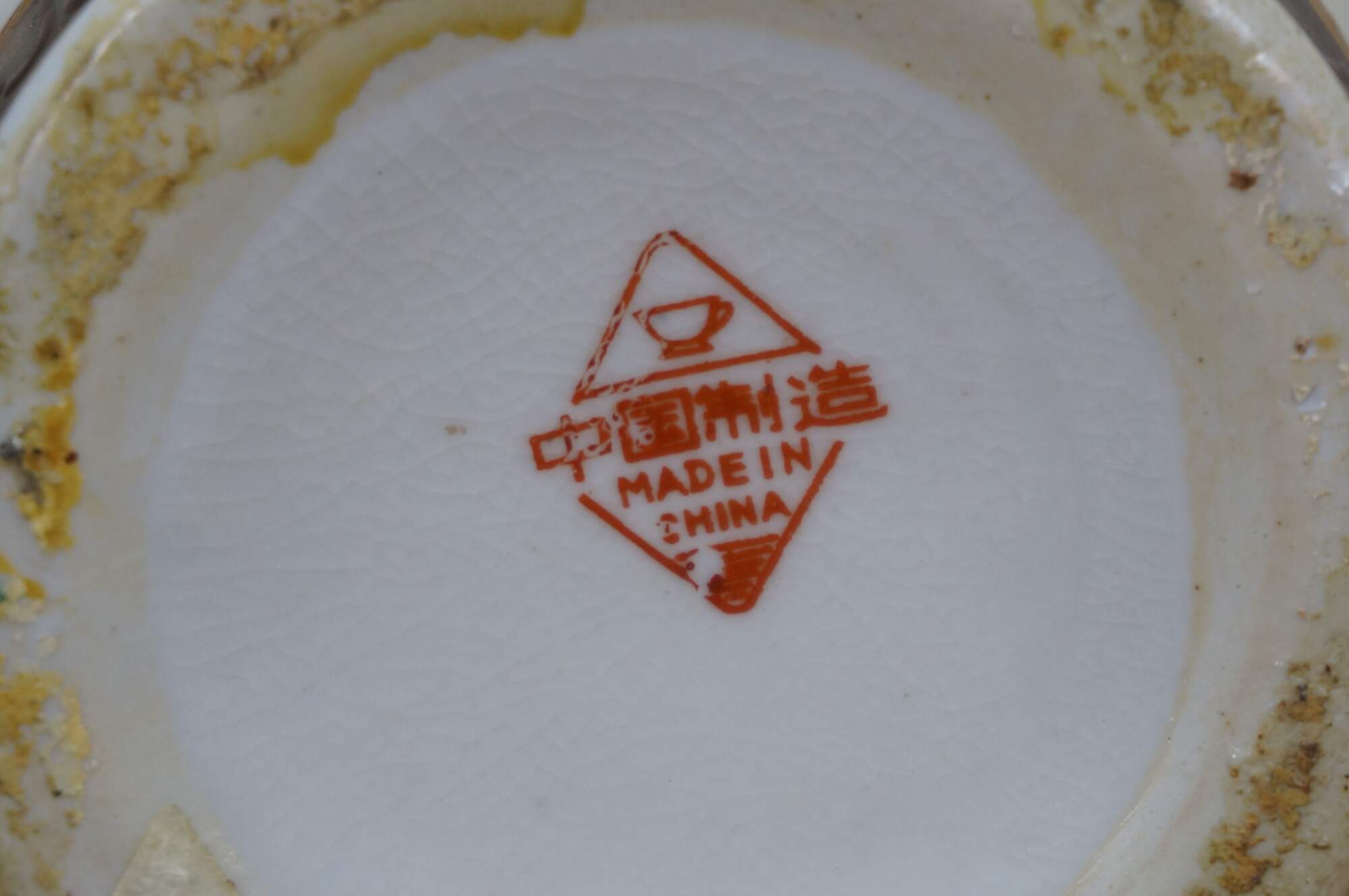 Late 20th century Chinese white porcelain flower vase, stamped with a floral and ribbon motif in brown and gold.