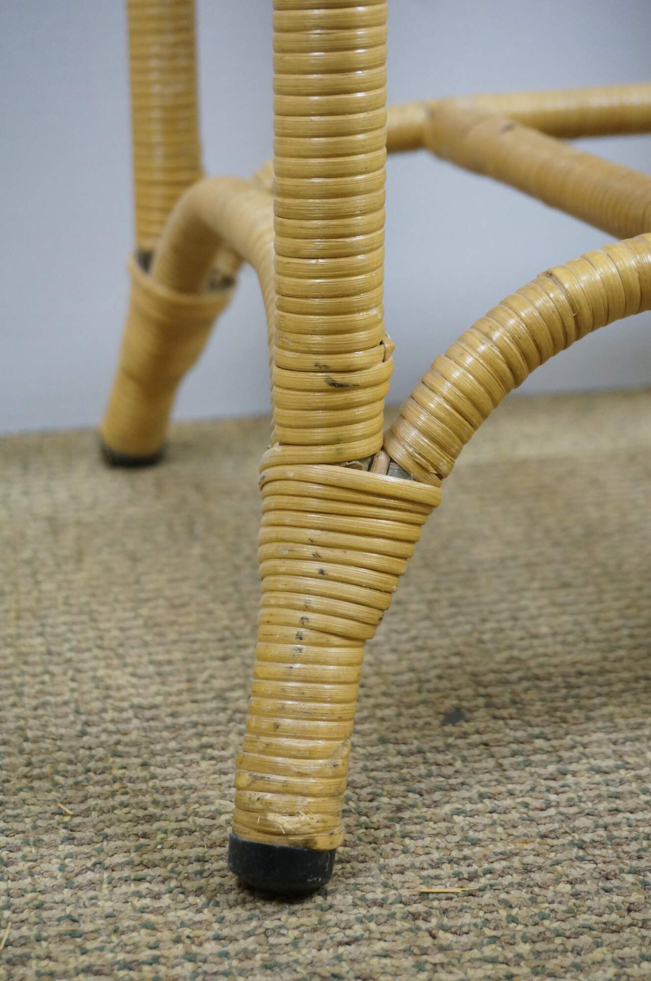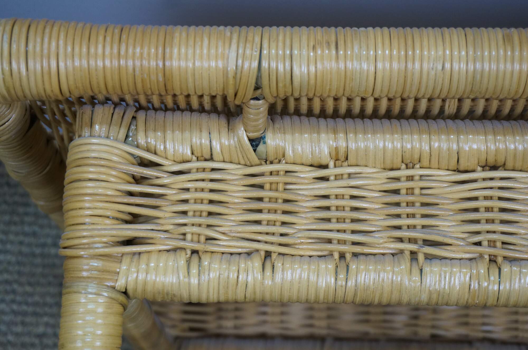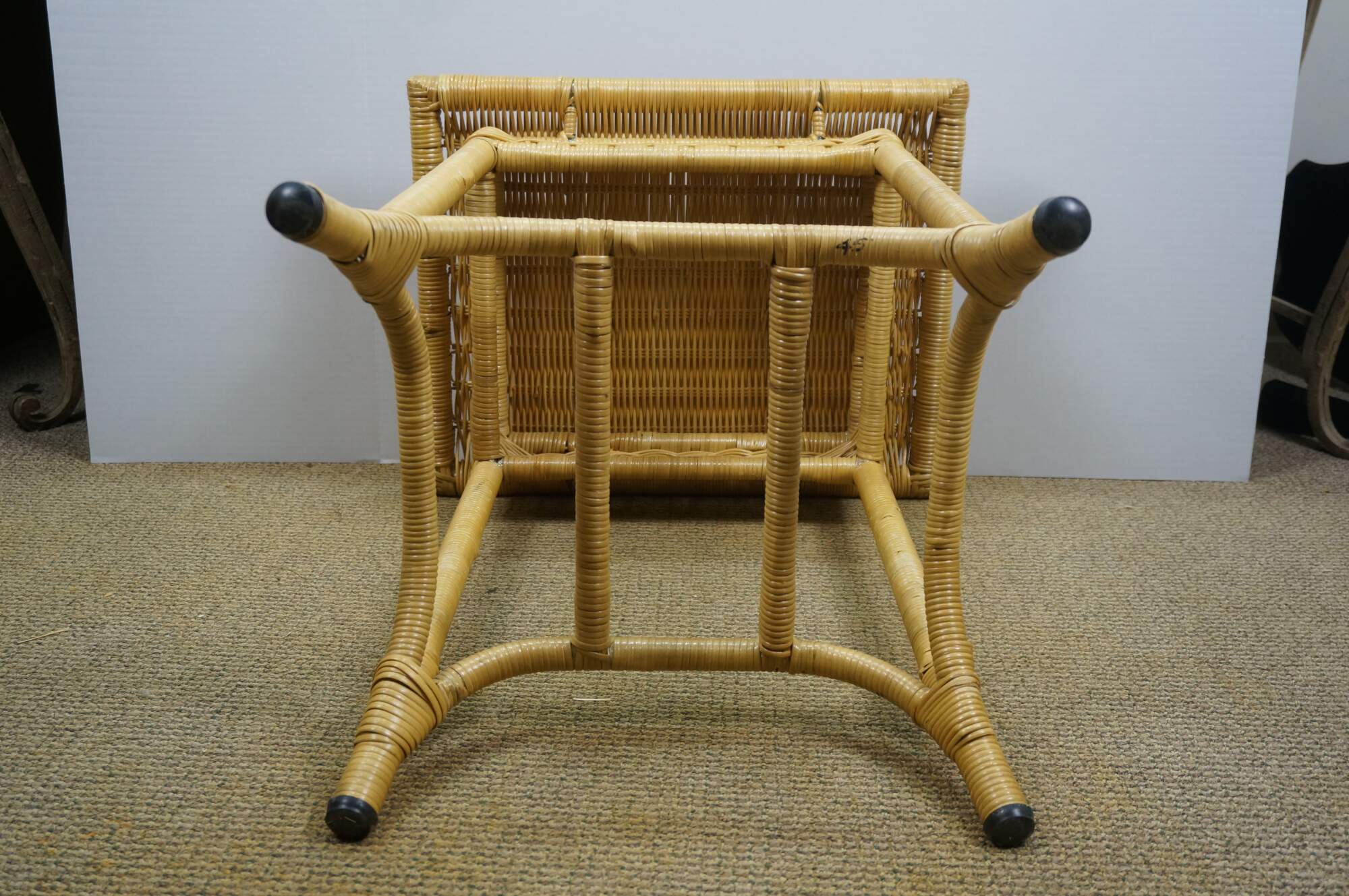 Vintage 20th century wicker end / accent table - rectangular top with apron, four legs and basket that fits on the lower stretchers.