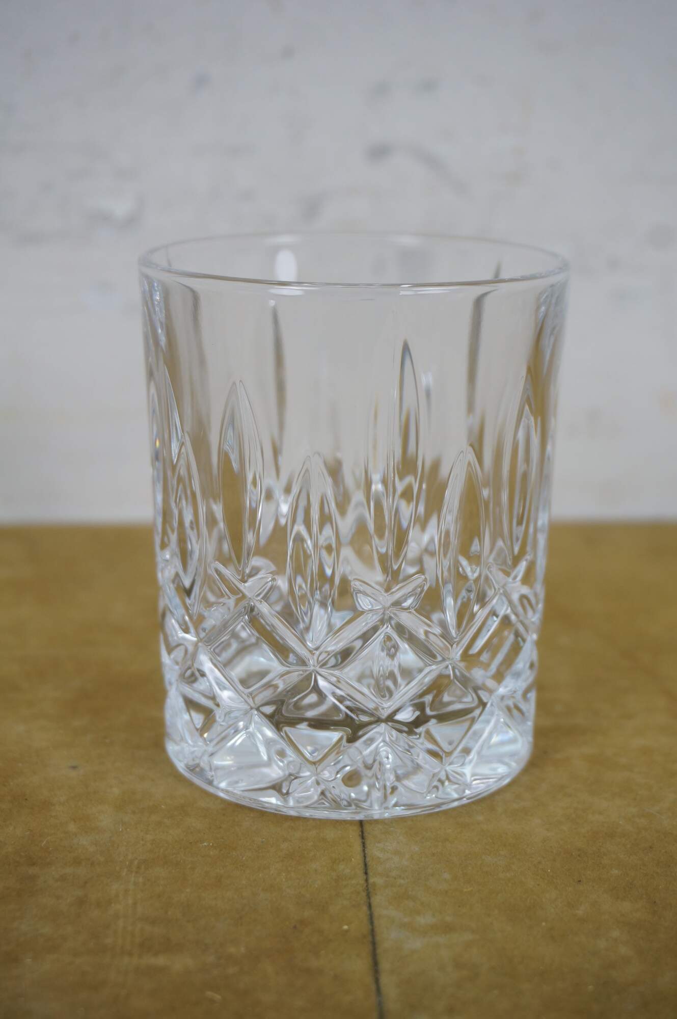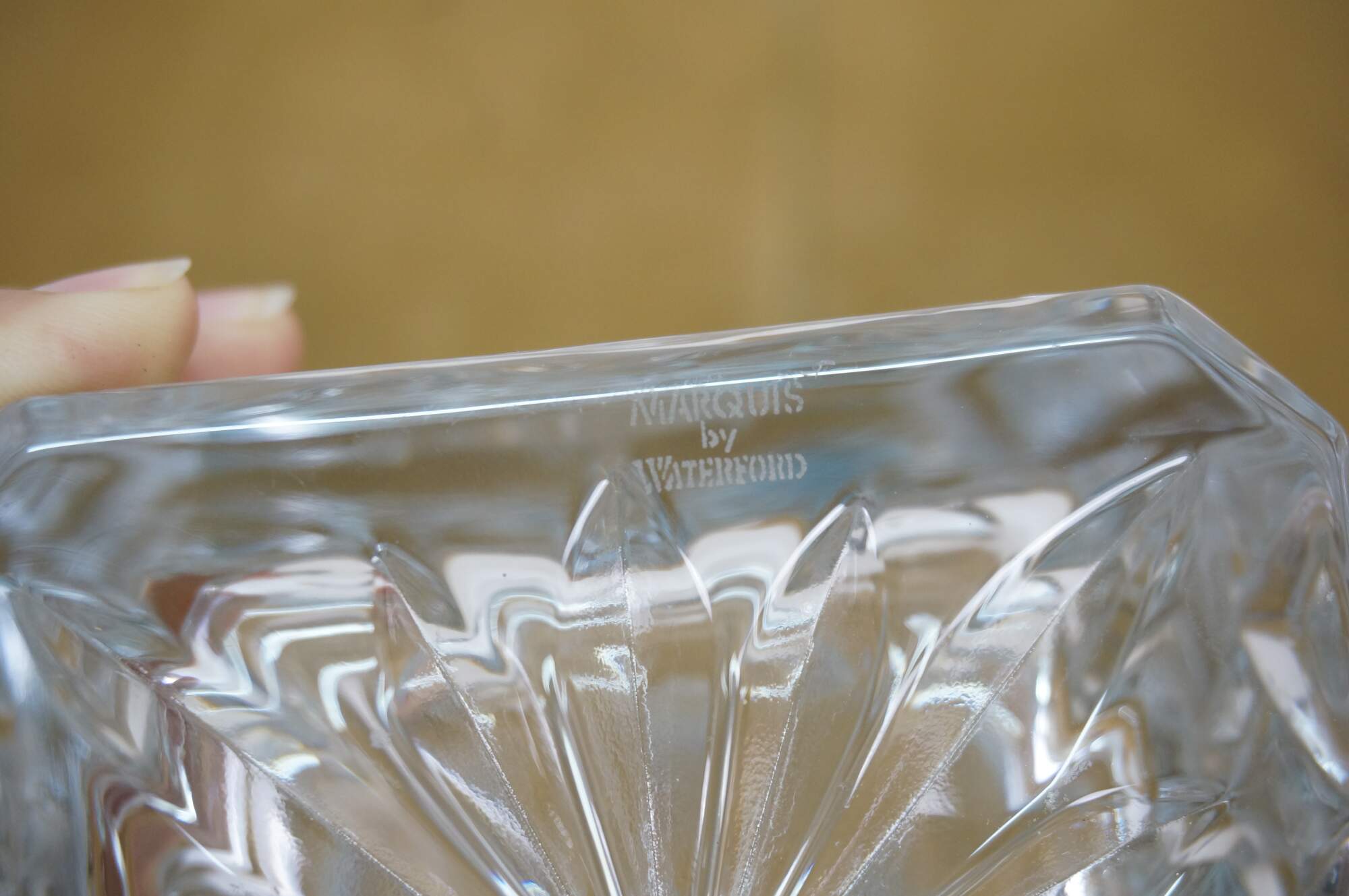 Late 20th century Marquis by Waterford Markham cut crystal whiskey decanter and four lowball/tumblers.