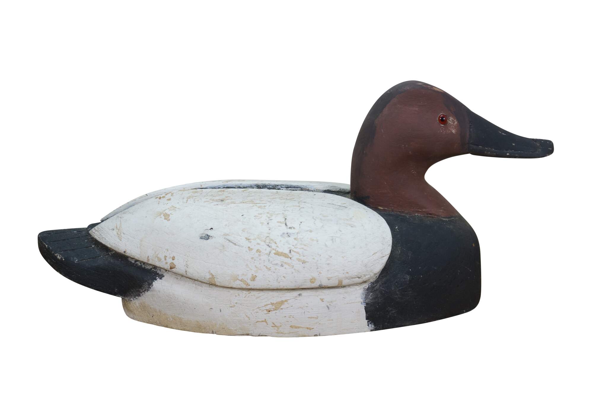 Large vintage mid century folk art redhead Canvasback duck decoy by Buck, circa 1966.