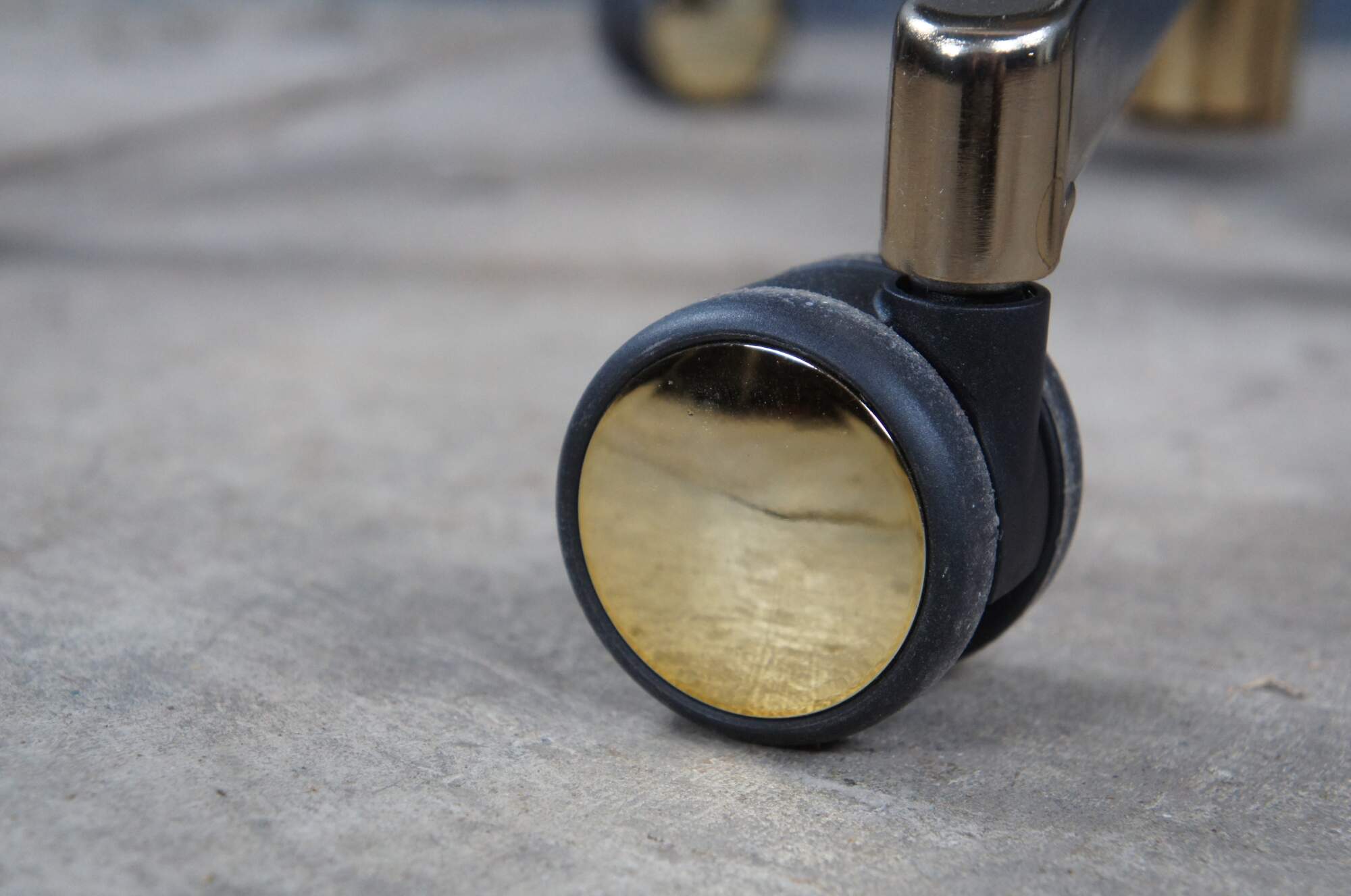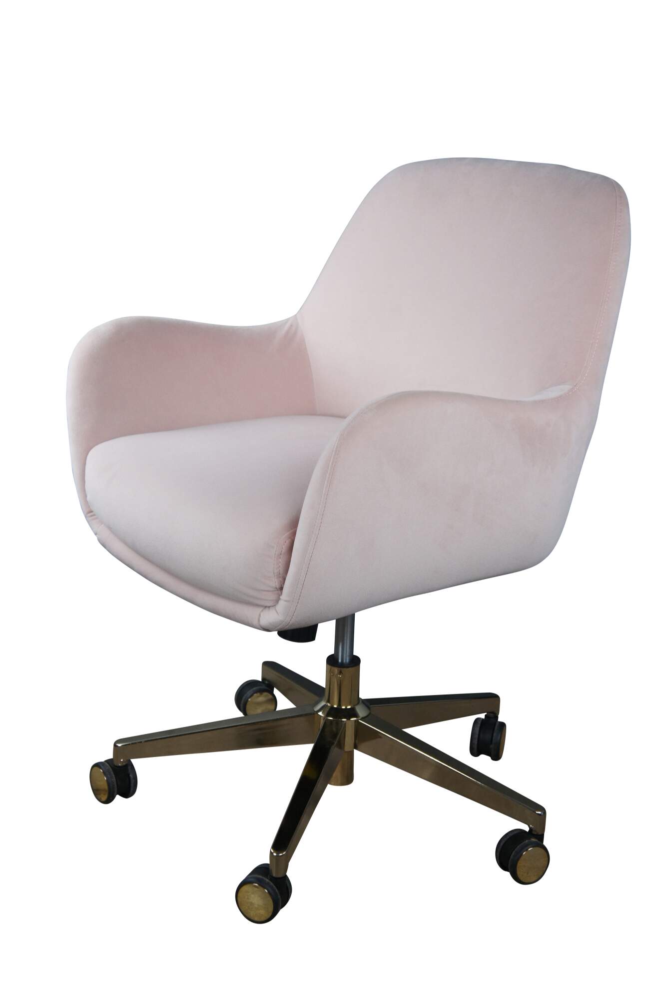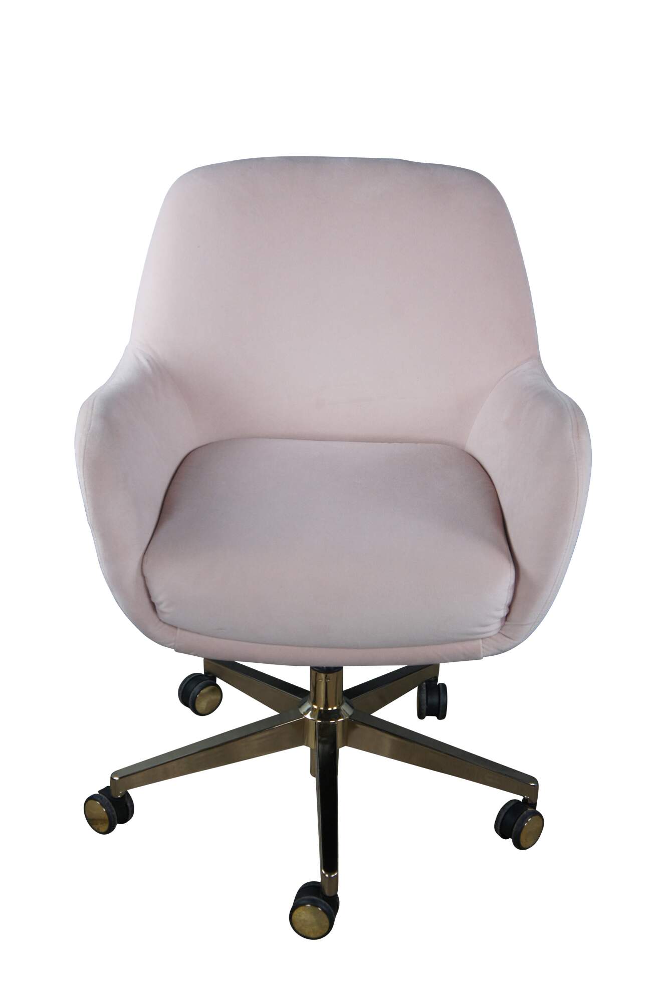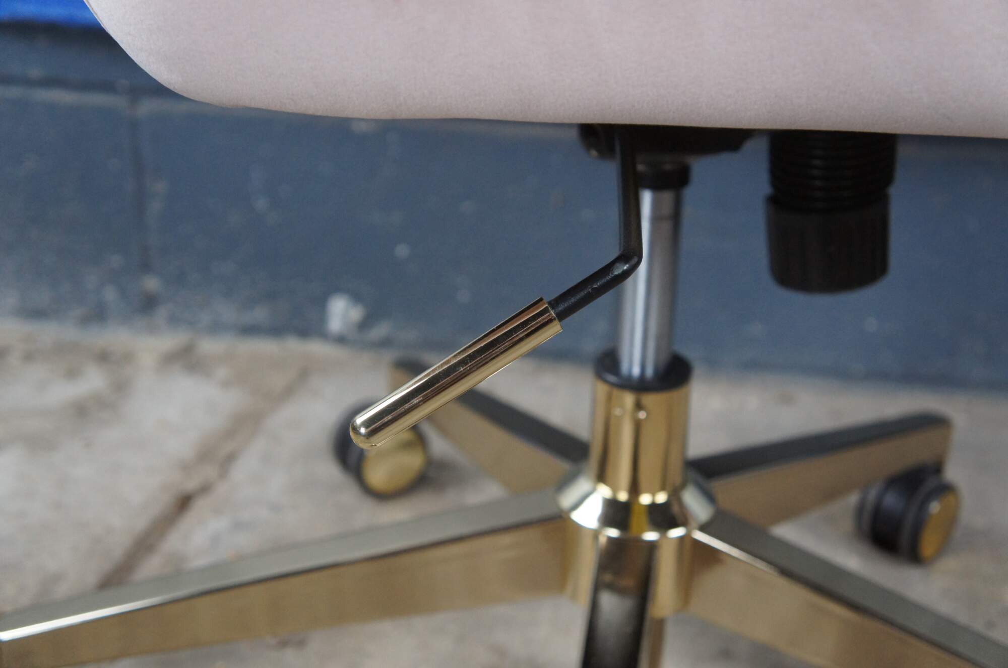 Vintage pair of Elyse Home Office Chairs. These luxurious office chairs are upholstered in rich velvet fabric, making them a chic and elegant addition to any home or office. The one-touch pneumatic height adjustment and tilting function make it easy to customize your seating position for maximum comfort. Exceeding rigorous BIFMA testing standards, the rolling base with a shiny gold metal finish and dual-wheel mobility casters make it easy to move around the workspace.