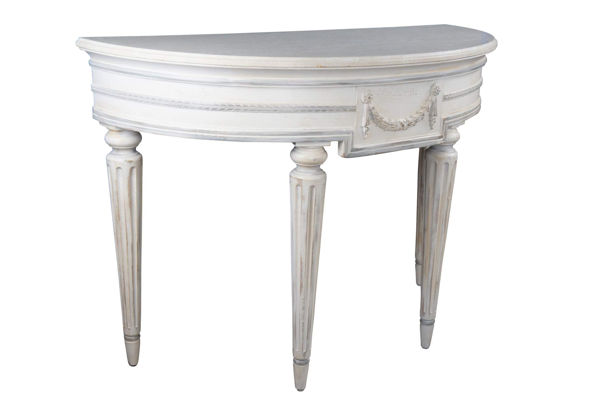Henredon Louis XVI Neoclassical Travertine Demilune Side Entry Table 45"
