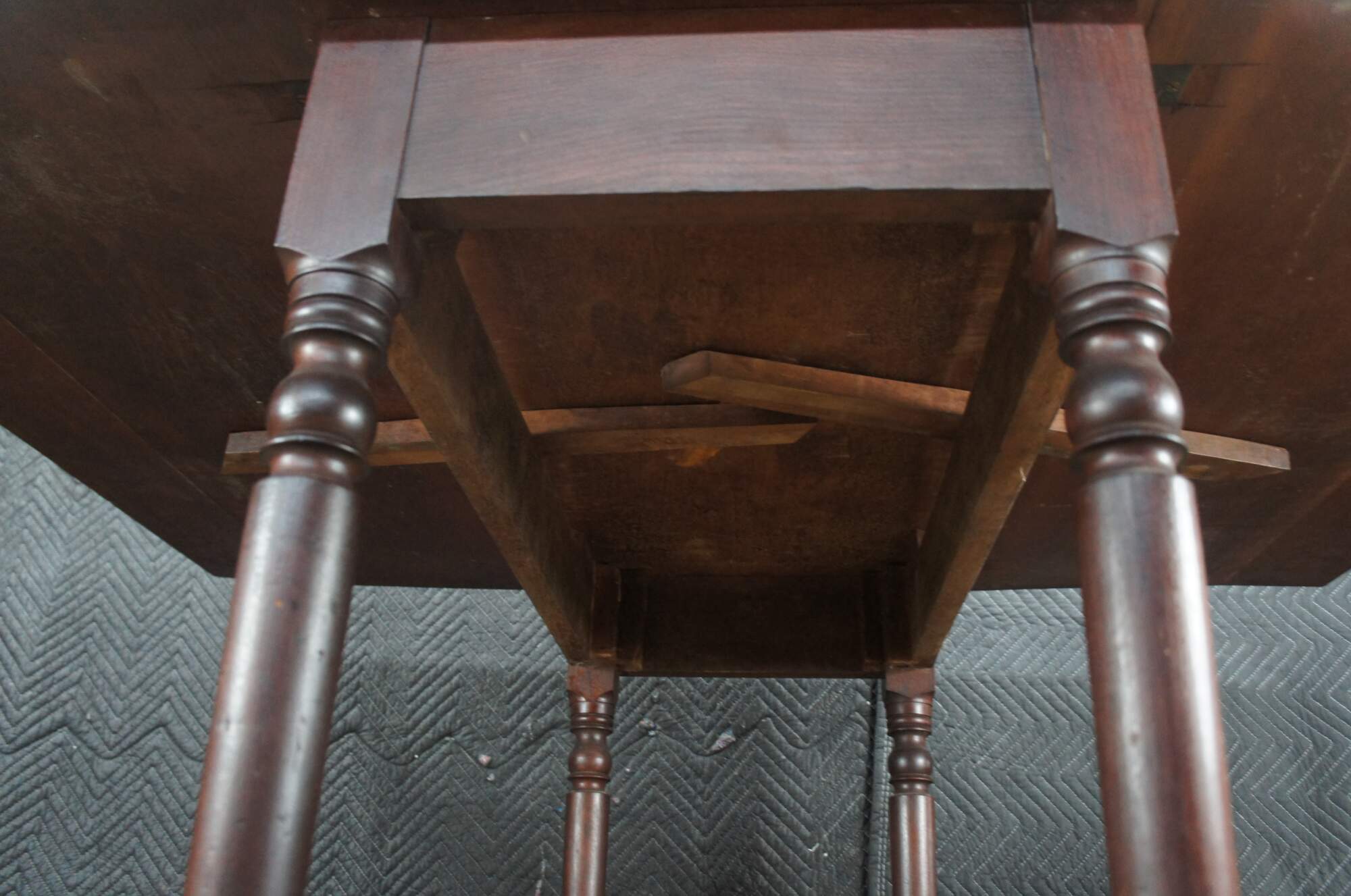 Fair; Structurally solid; top is weathered from use and age. Staining and finish loss
