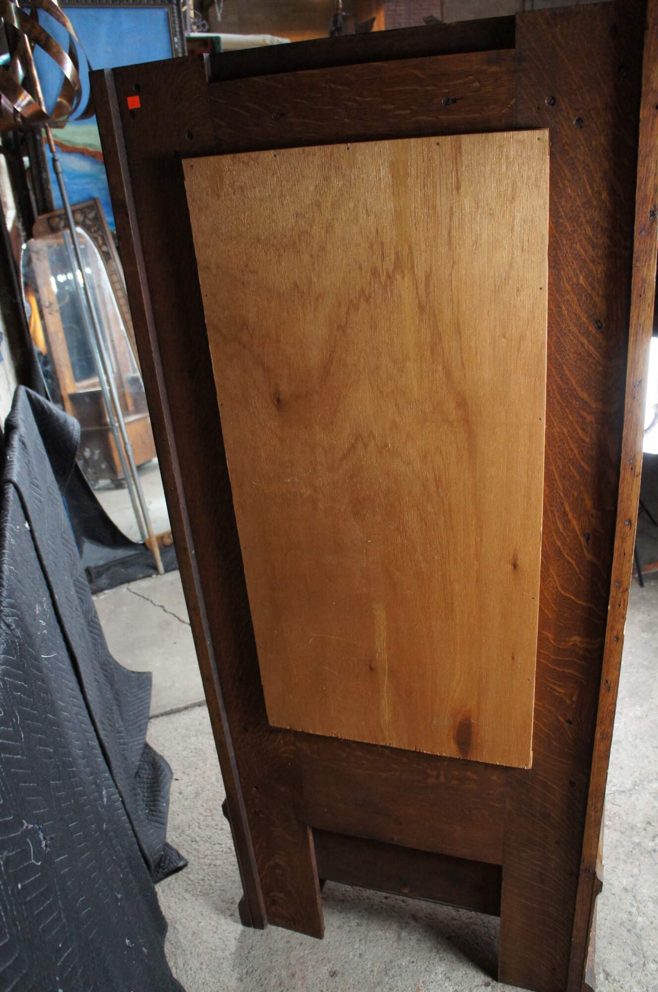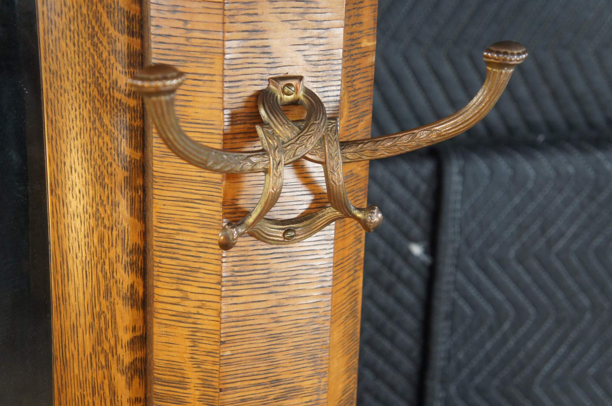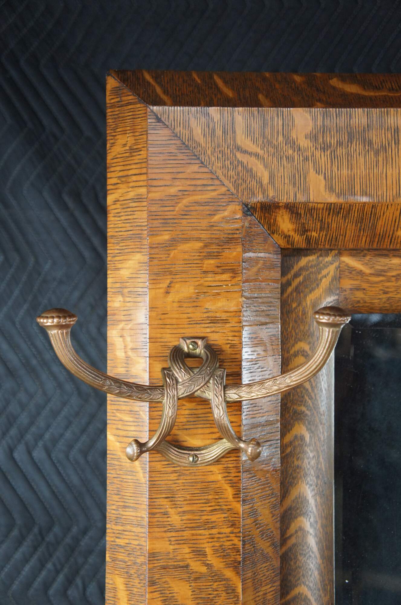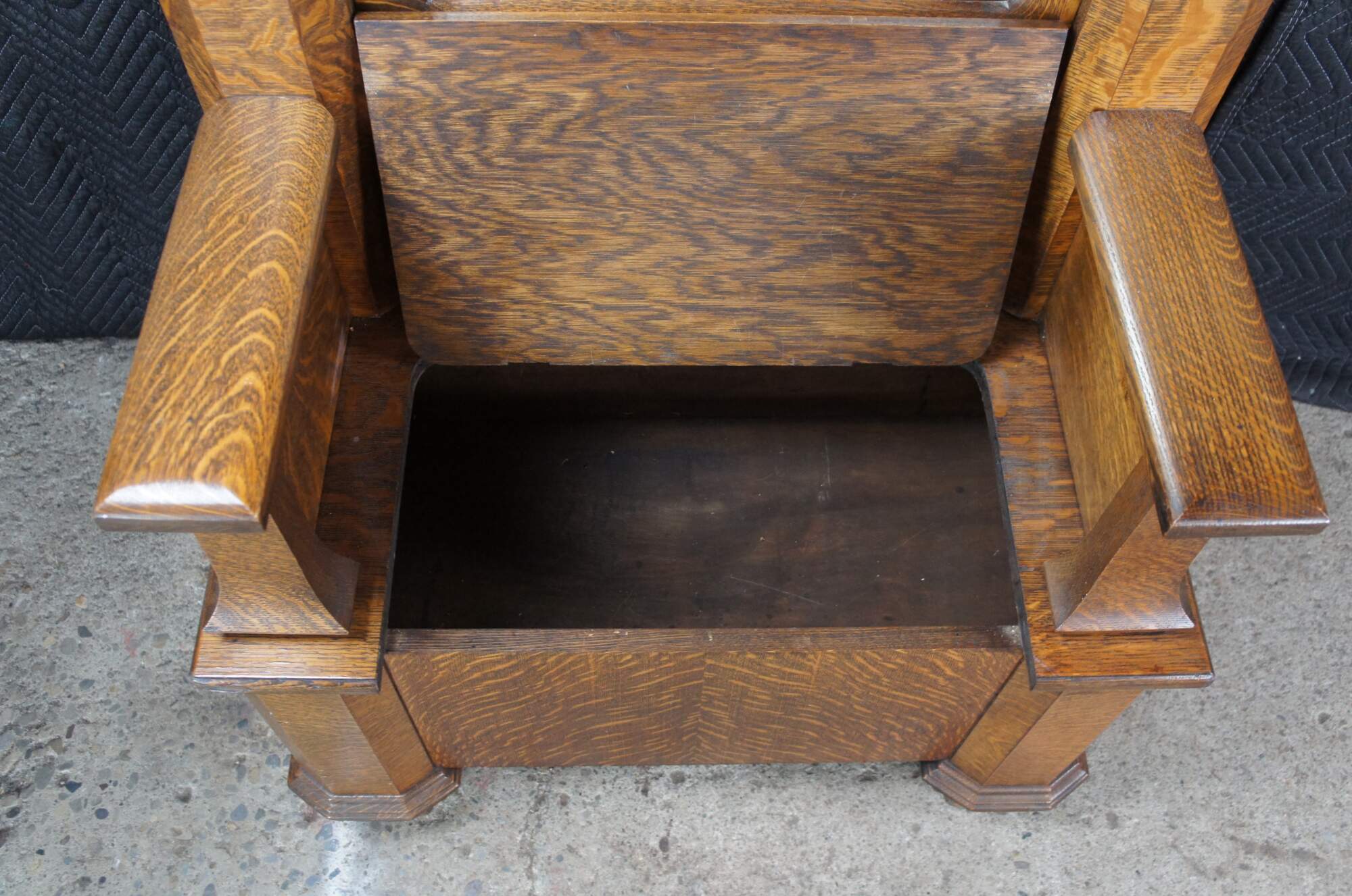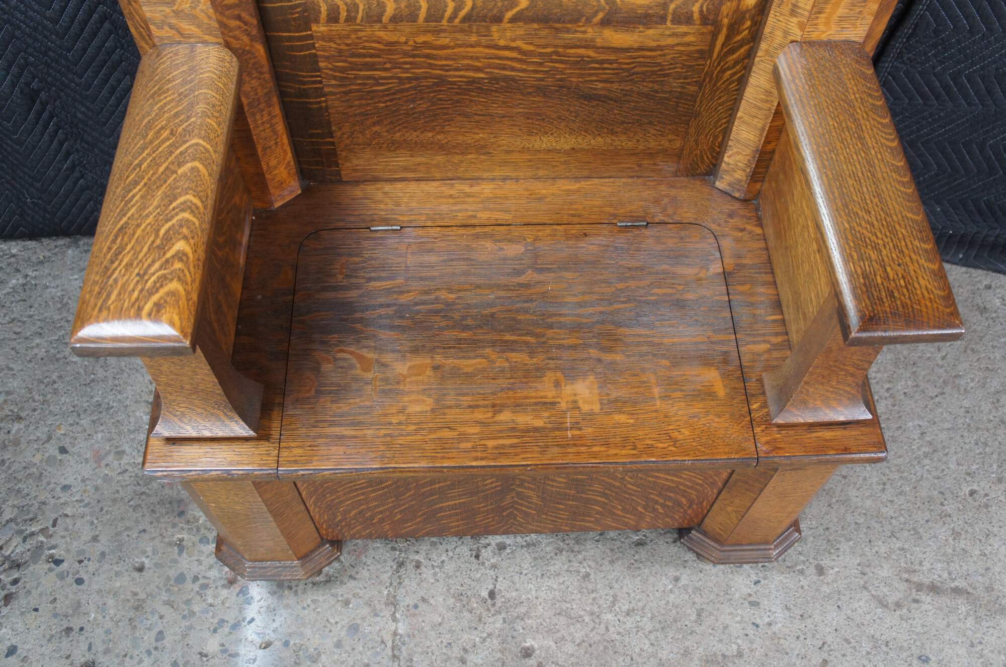 Antique Victorian Quartersawn Oak Hall Tree Bench Seat & Storage Beveled Mirror