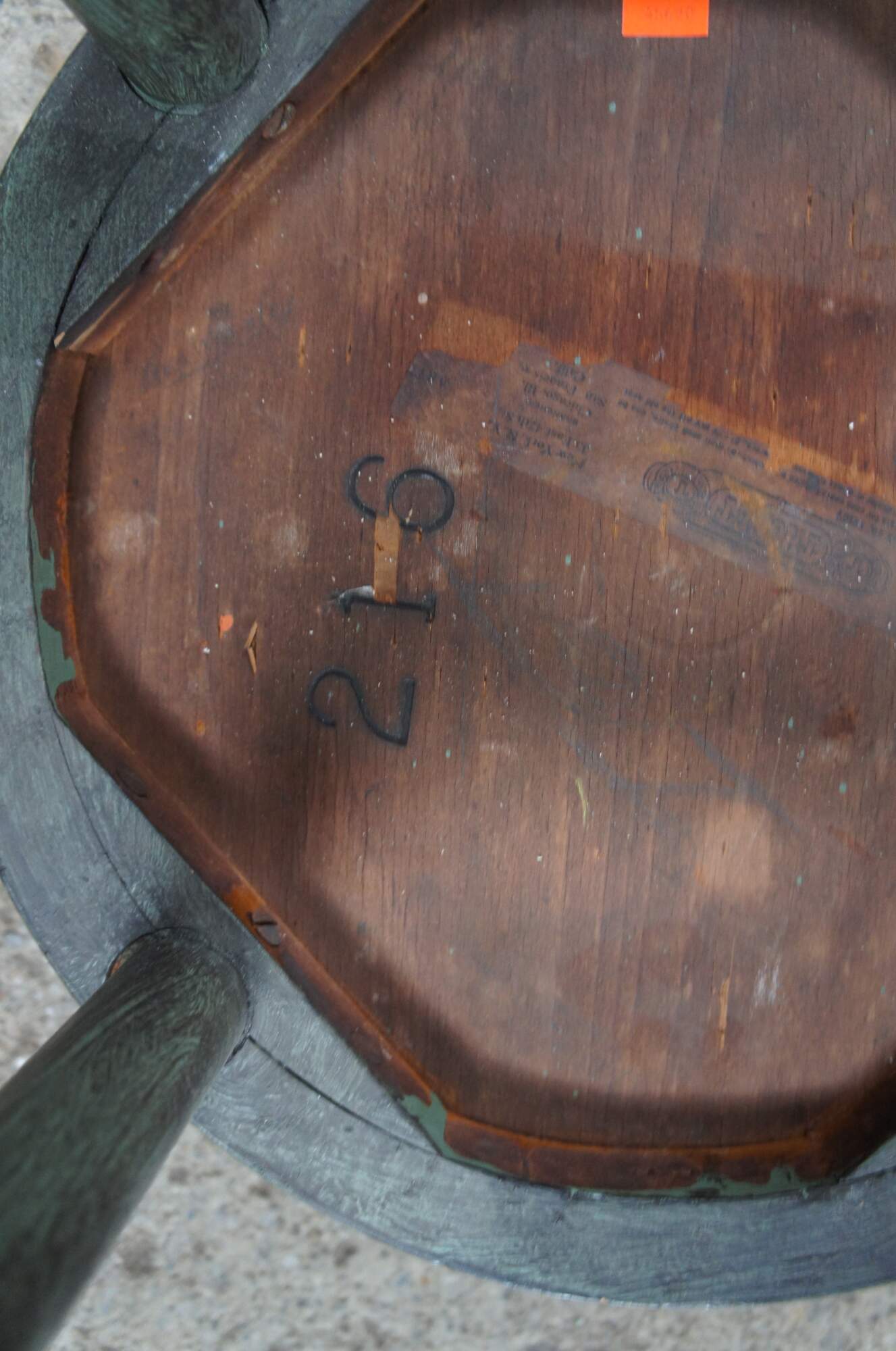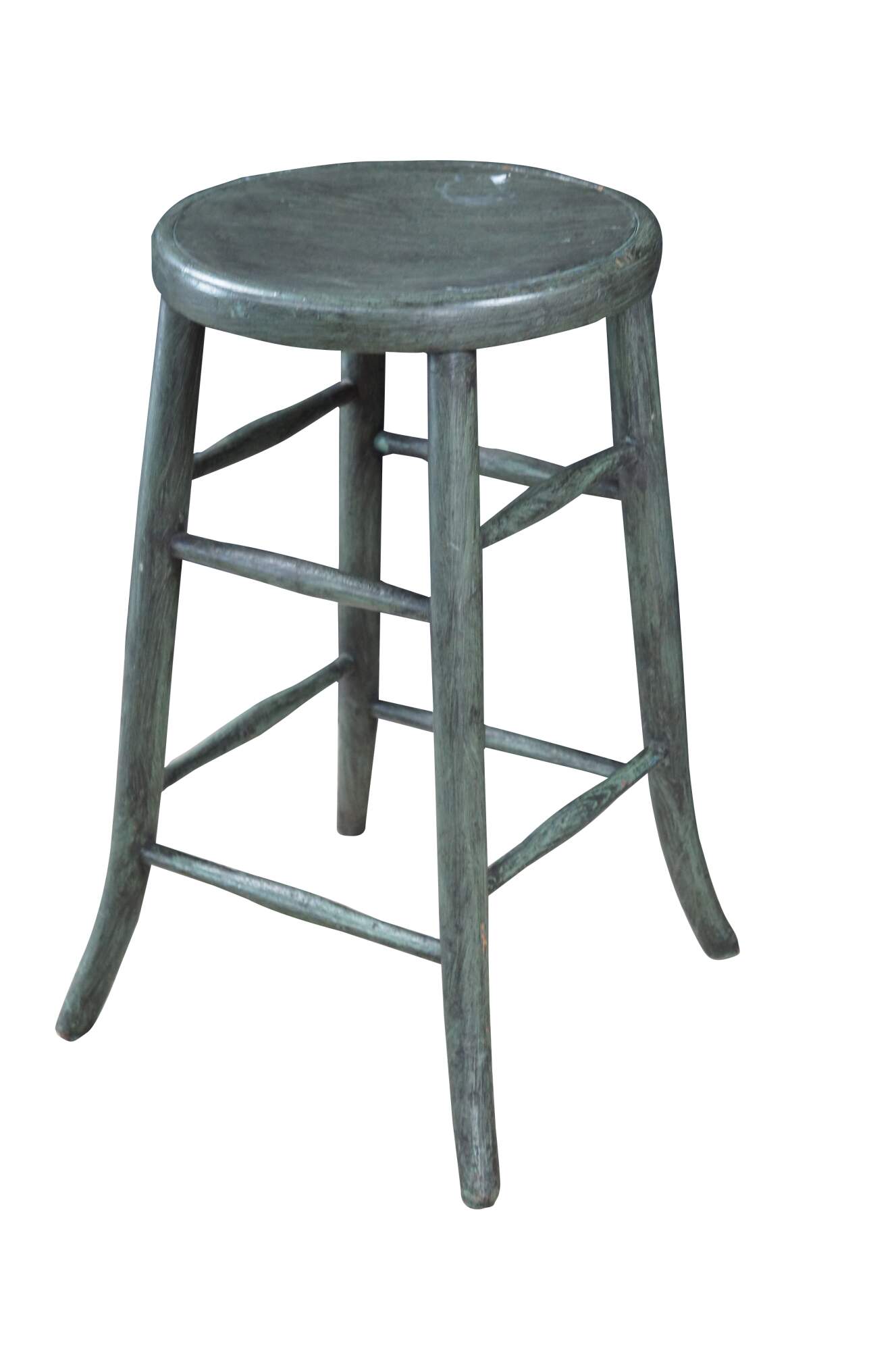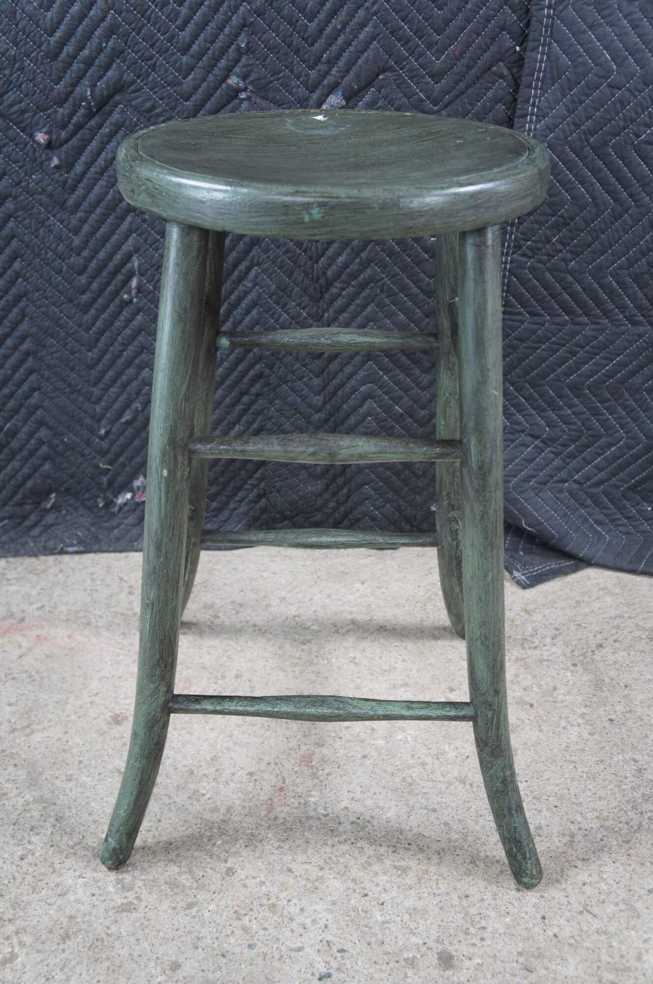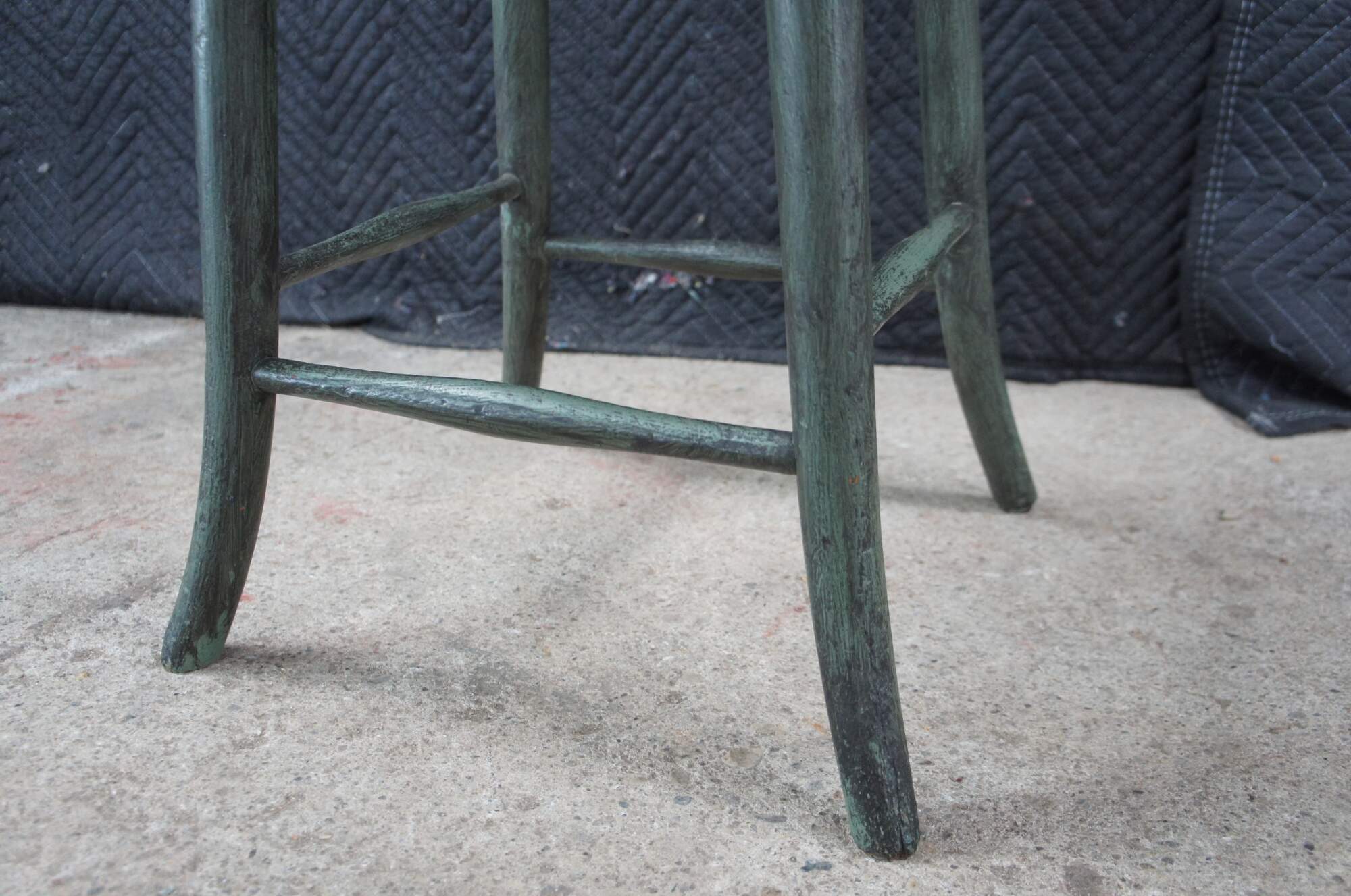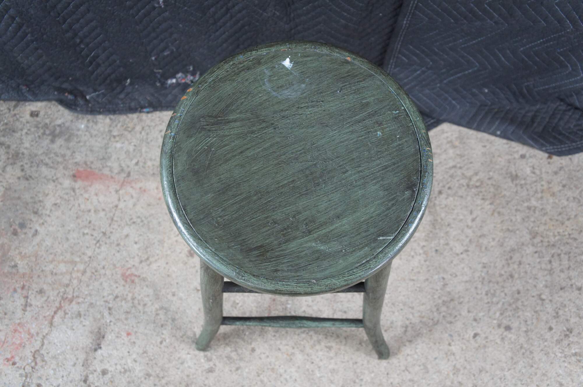 Thonet Bentwood Stool #216, circa 1920. Features a green painted finish, round seat and bentwood legs connected by spindled stretchers.