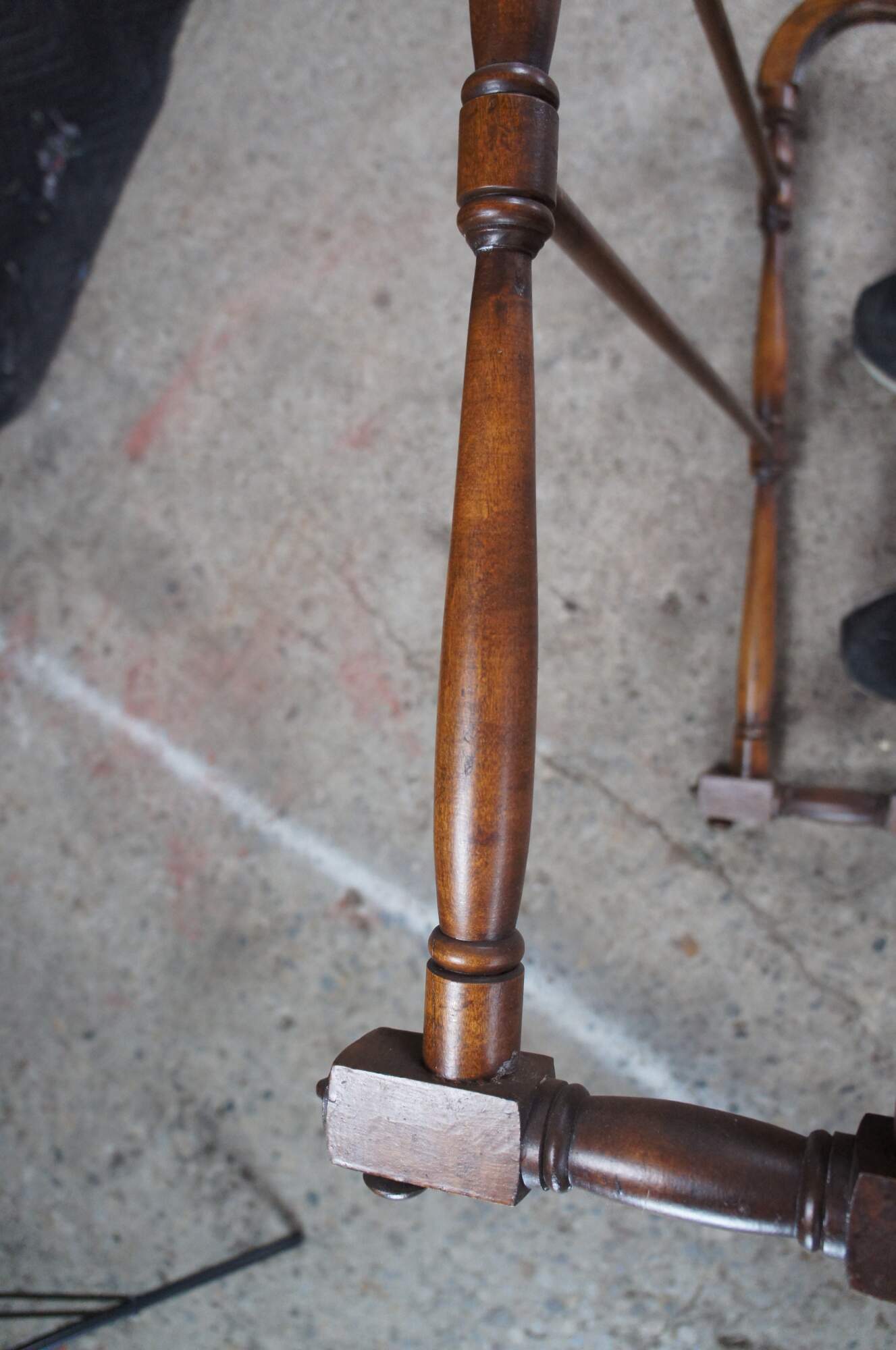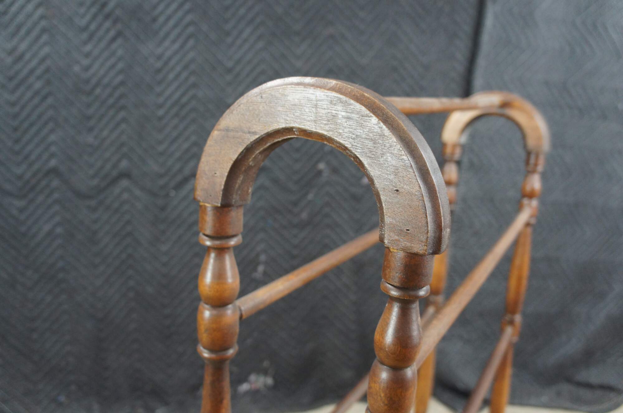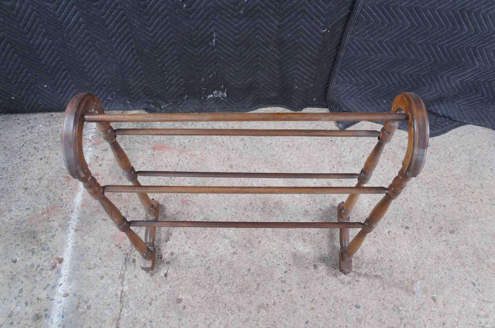 20th Century Early American Style Towel, Quilt or Blanket Rack. Made from oak with an arched top and turned detail.