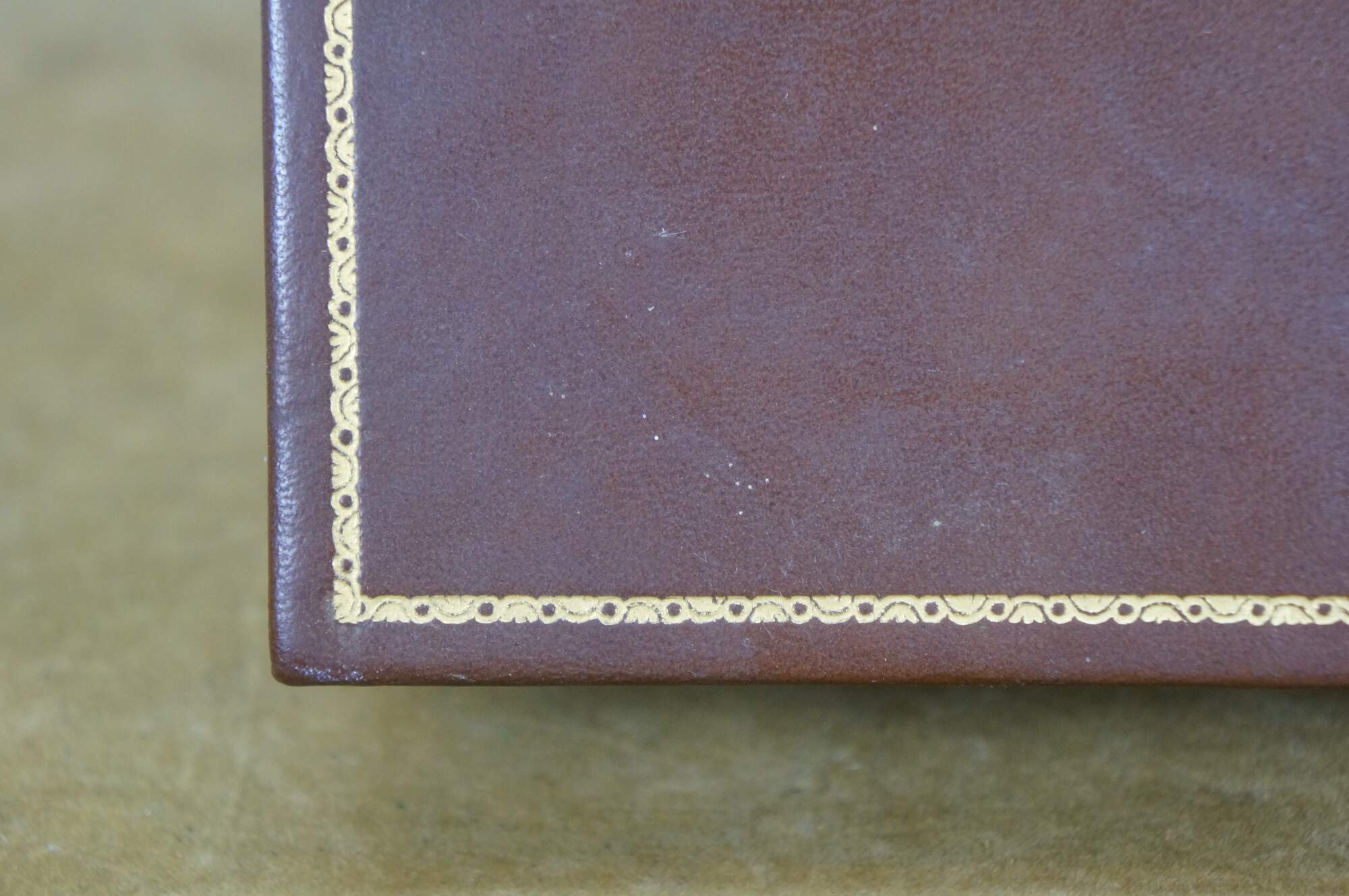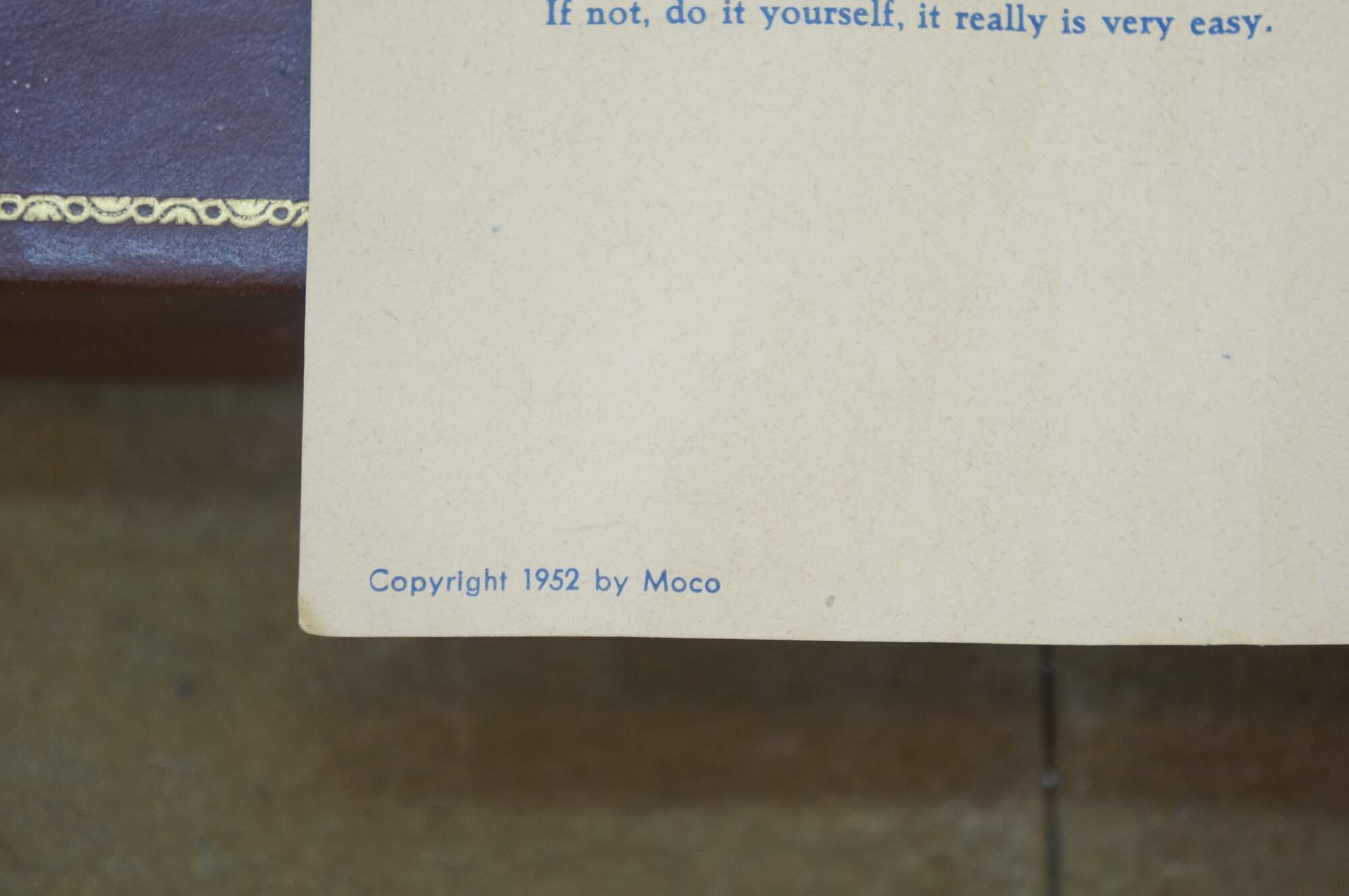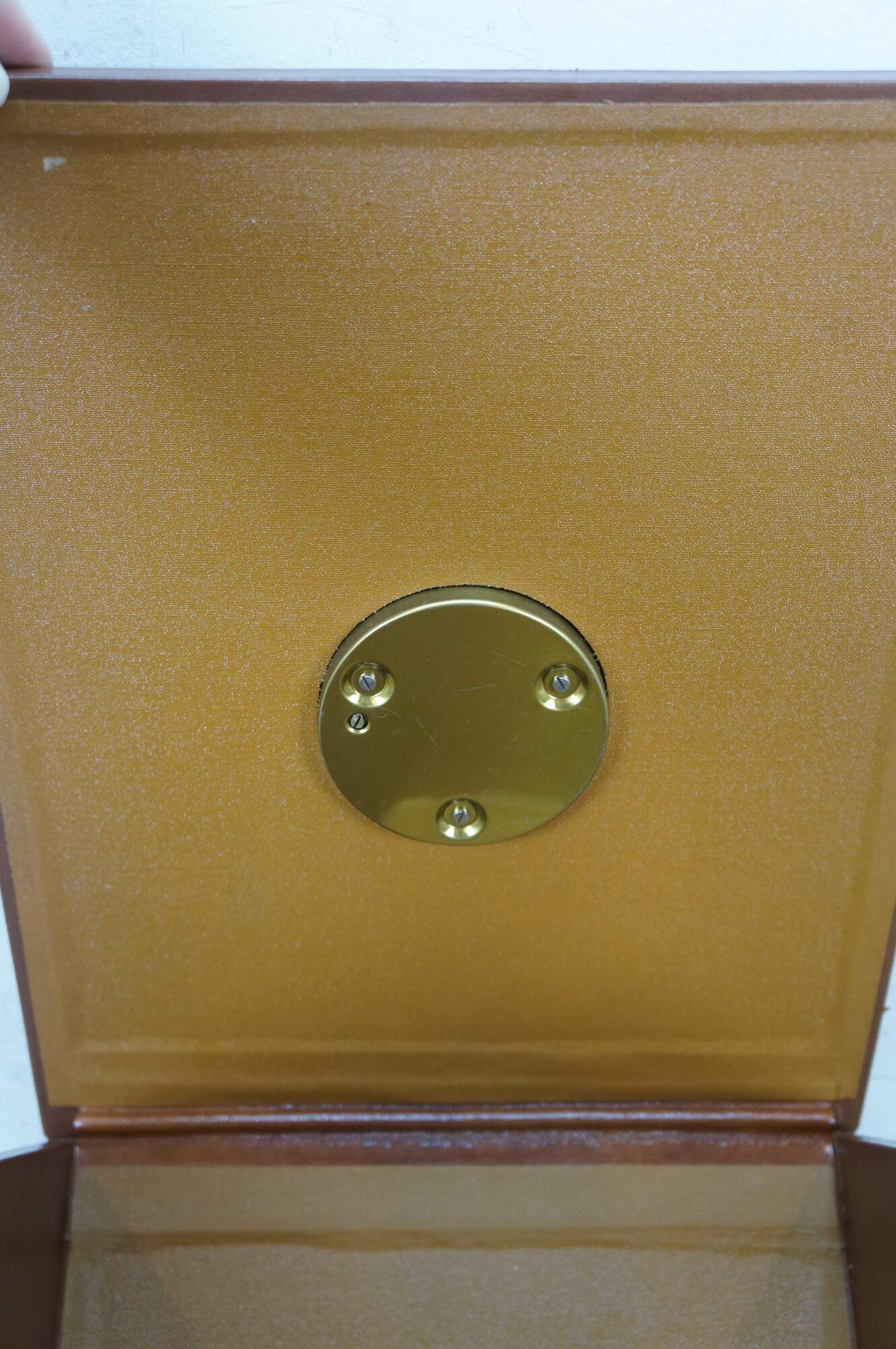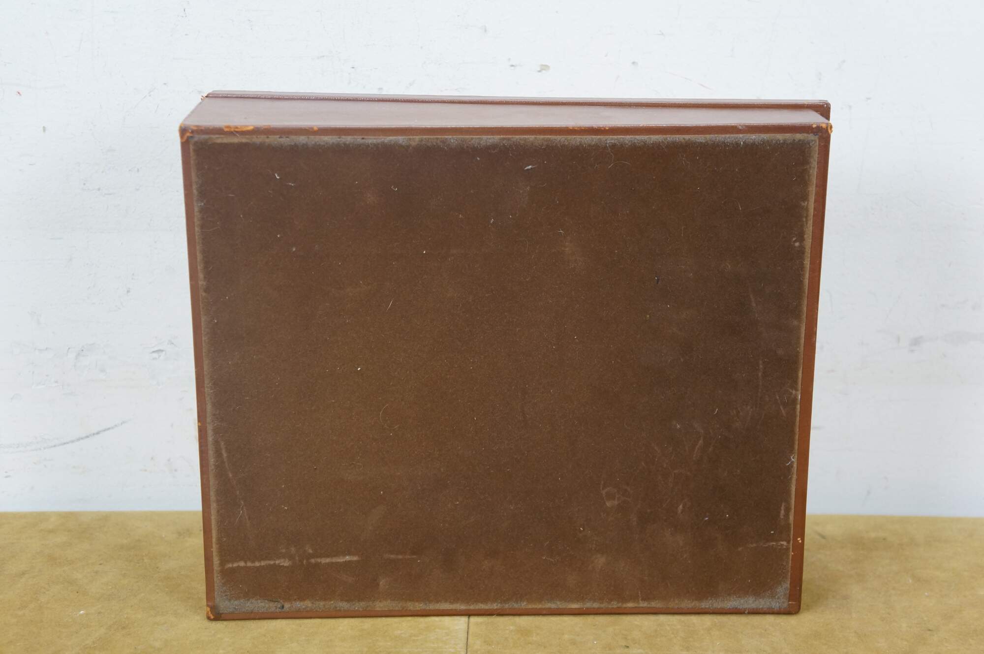 Mid century desktop / library document box by Moco of West Germany. Made of wood featuring a tooled leather case with slant top that showcases a barometer and opens for additional storage.