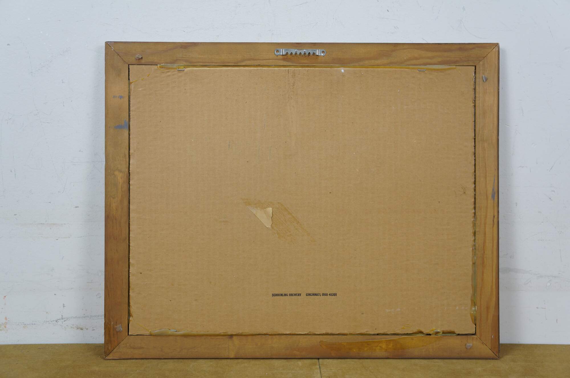 Vintage 20th century black, white and gold reverse painted glass mirrored bar ad sign advertising Little kings Cream Ale by Schoenling Brewery of Cincinnati, Ohio. Beveled wood frame.