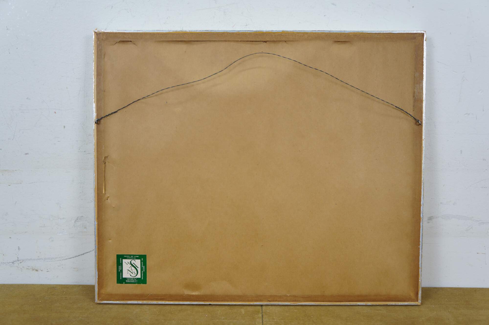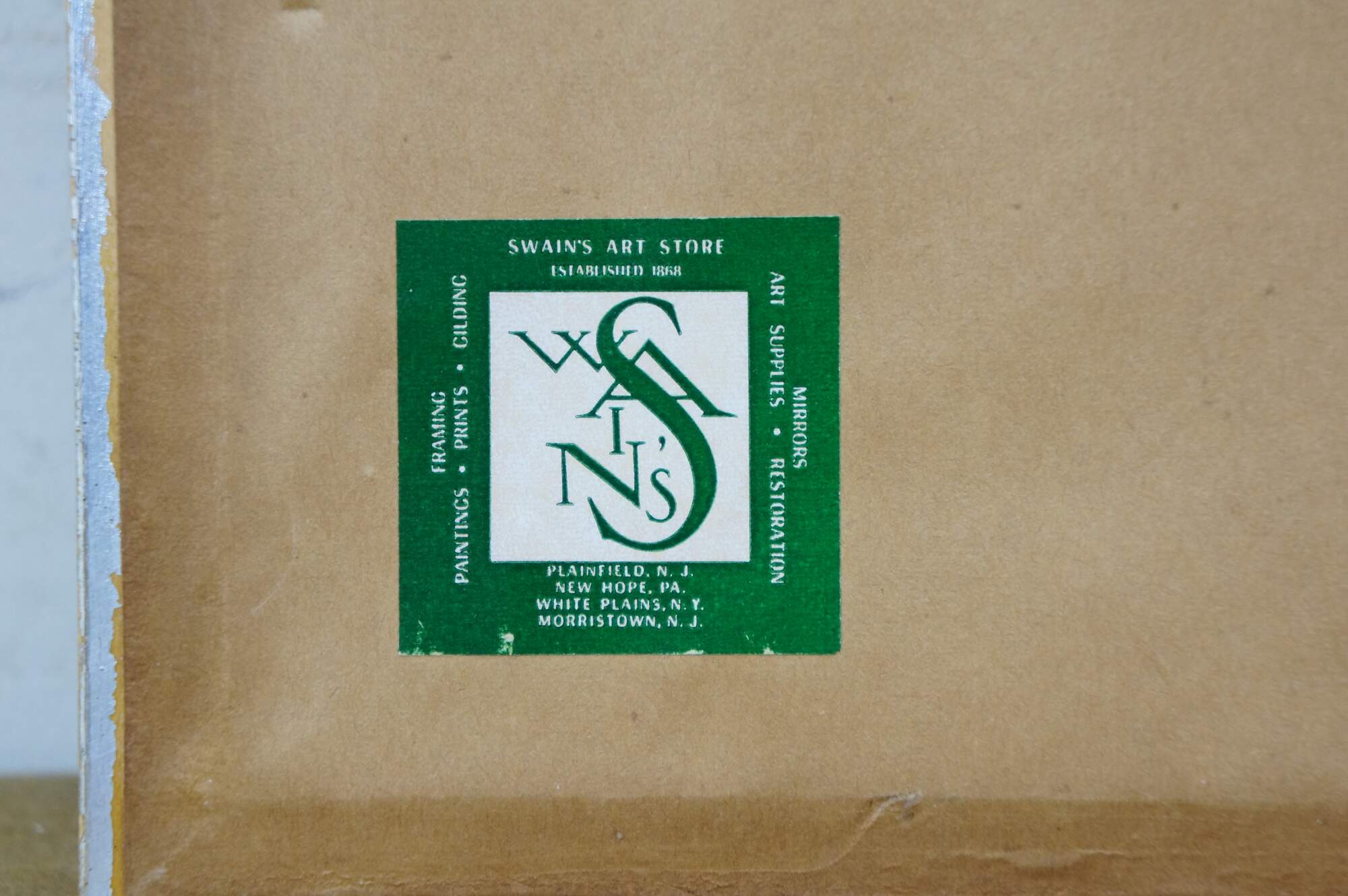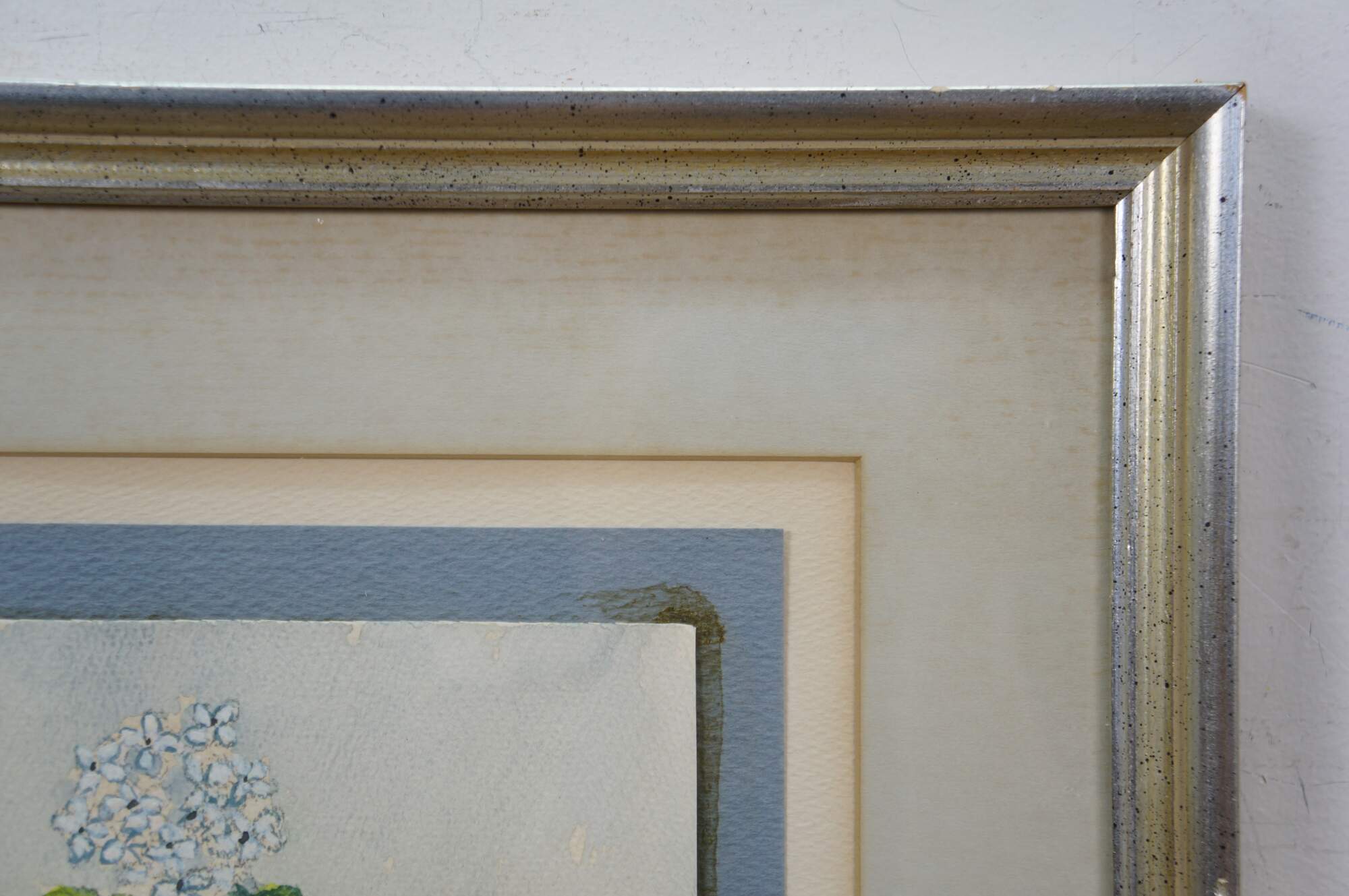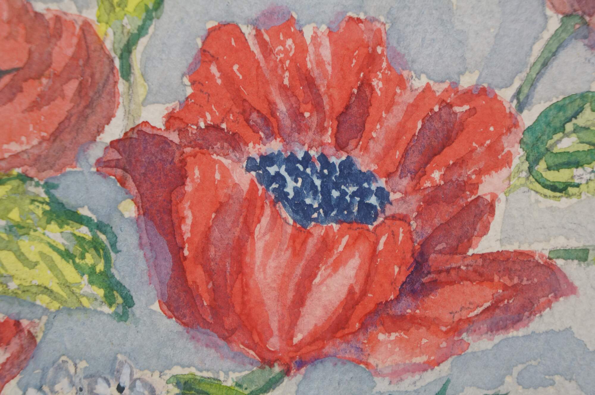 Vintage 20th century watercolor on paper still life painting of red and white flowers in a low dish. Signed H. McR in lower left.
