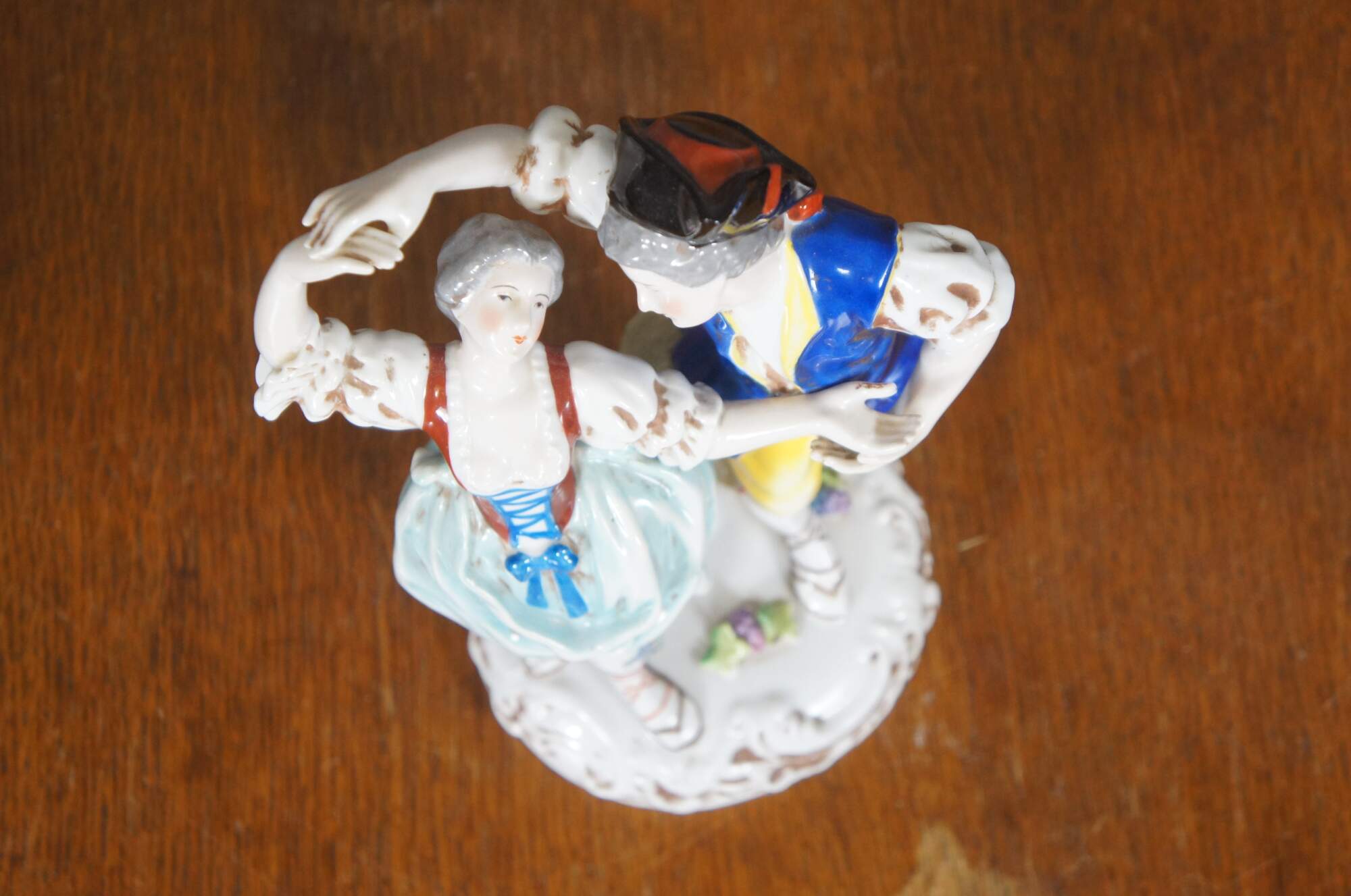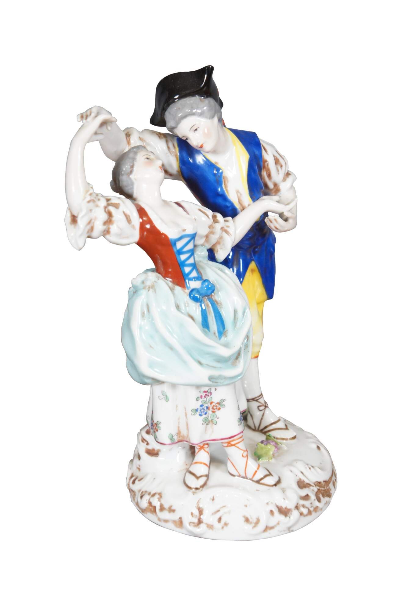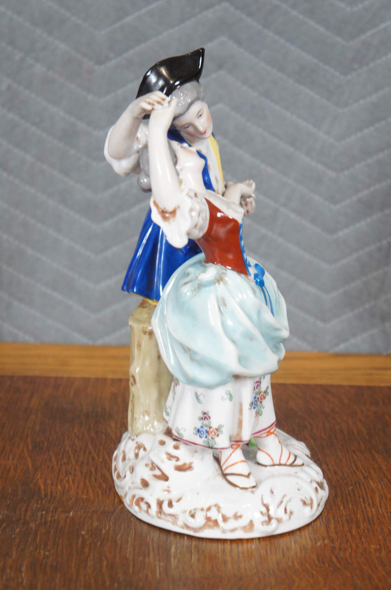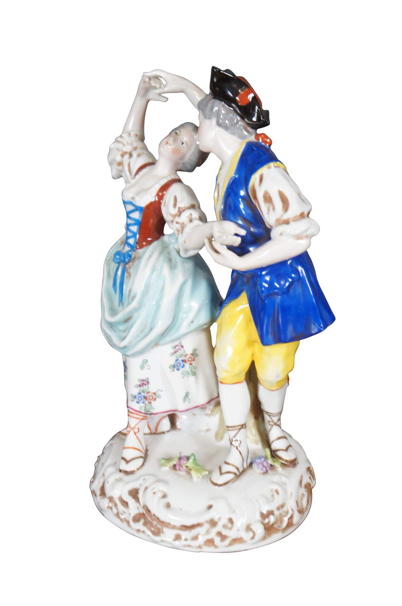Circa mid 20th century LC Japan porcelain figurine in the shape of a colonial era couple dancing.
