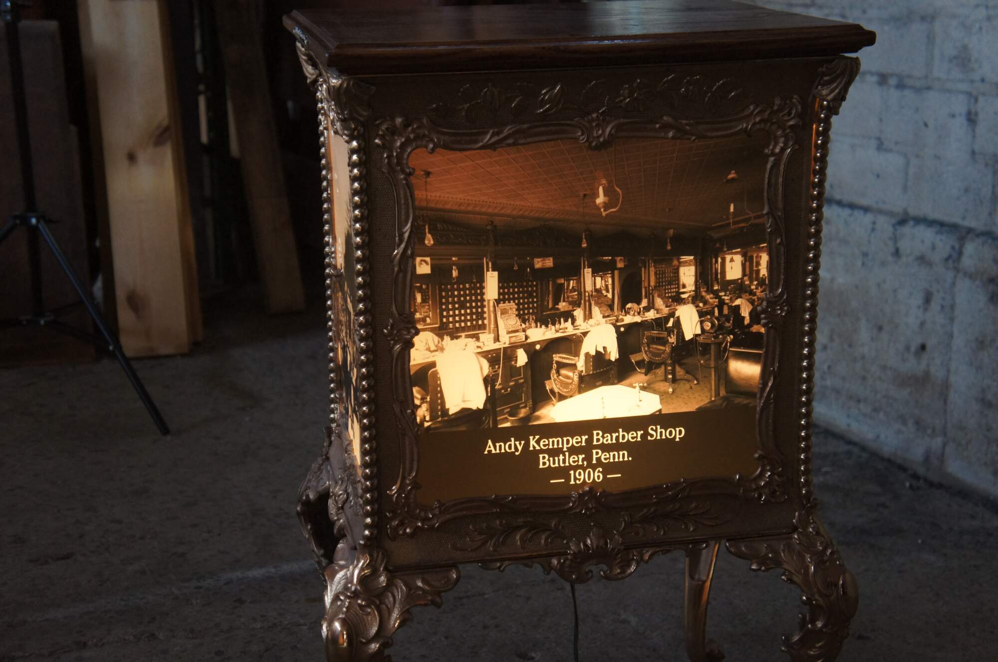 1906 Andy Kemper Barber Shop Butler, Penn. (313) register shown in the background.