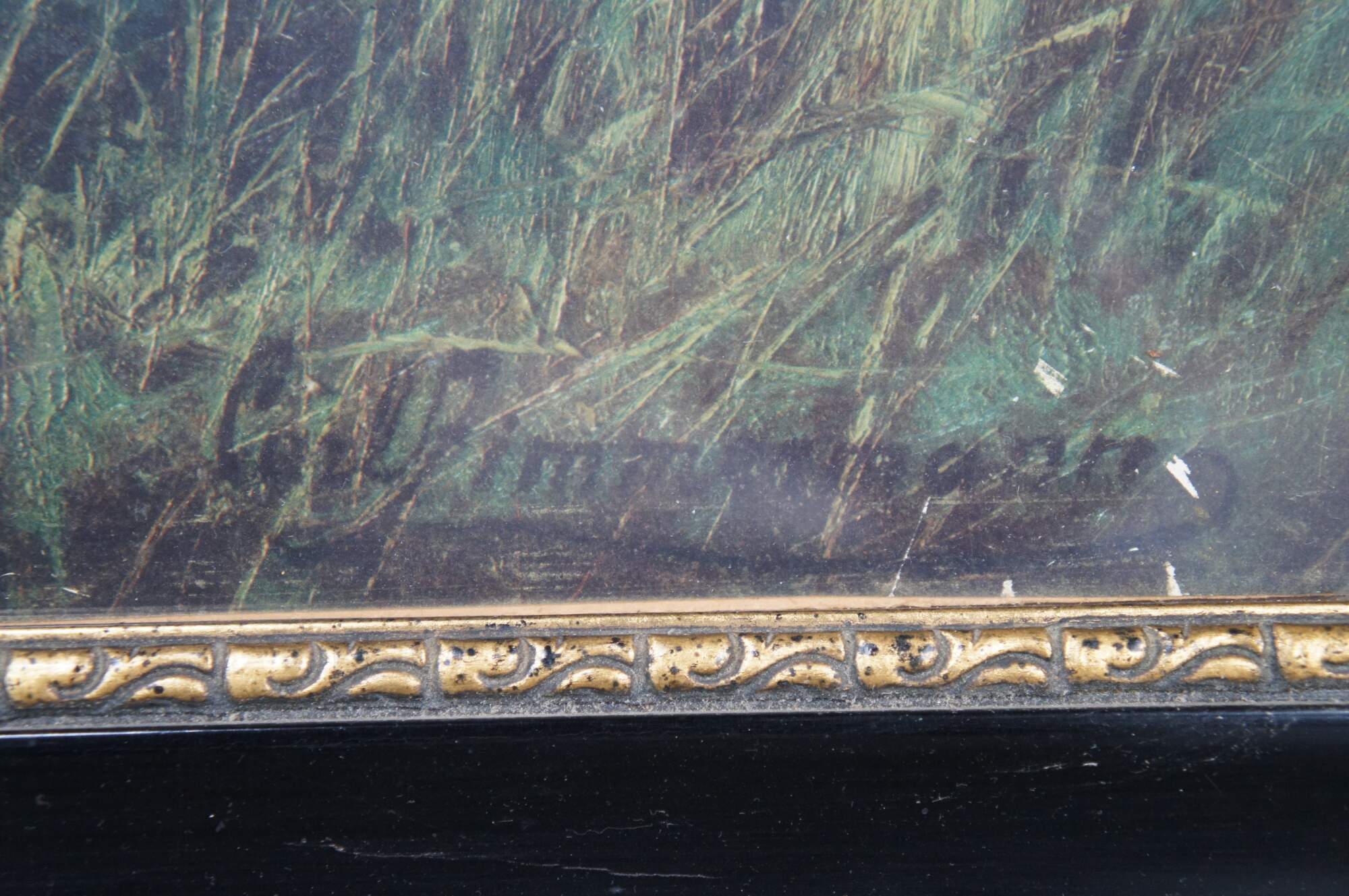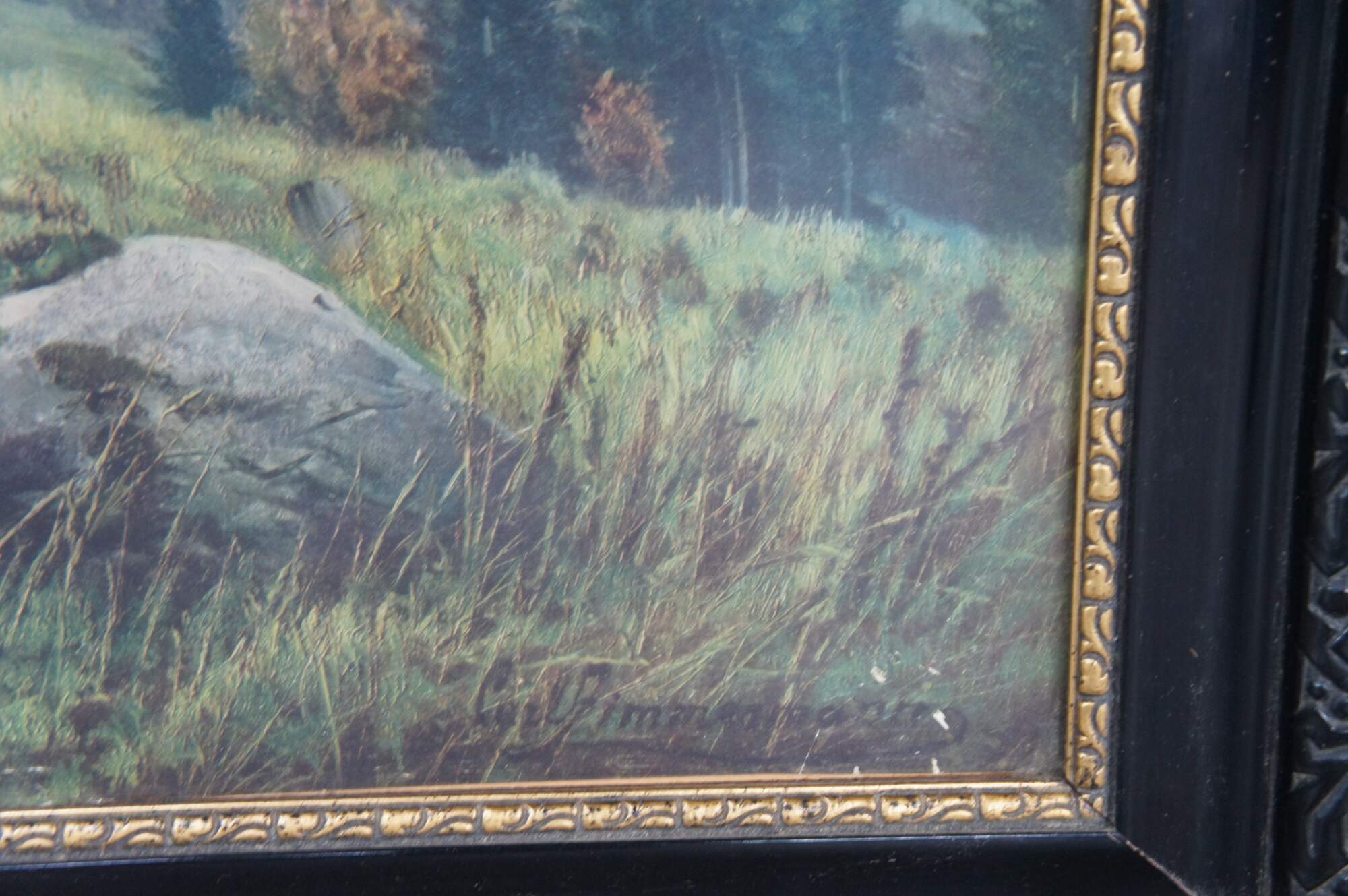 Carl Zimmermann painted landscapes, animals, and hunting scenes. Zimmermann was the student of Paul Friedrich Meyer Home and Eugen Bracht. At first he lived in Munich and was then in Berlin since 1896. He was active in Goslar in 1915 (see FIG. Thieme-Becker XXXVI, 514). He participated in exhibitions in Munich Glass Palace and the Great Berlin Art exhibitions.
