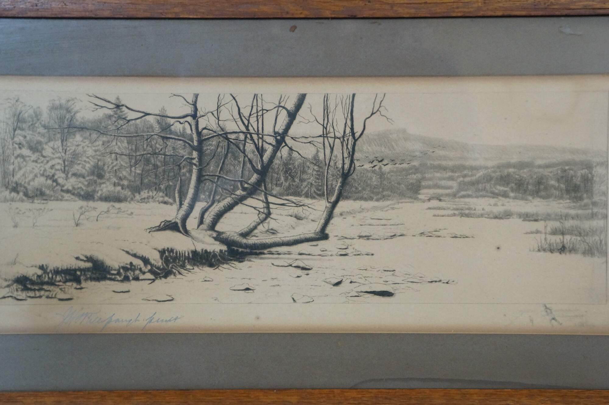 Antique John H Millspaugh Signed Winter Landscape Etching 21"