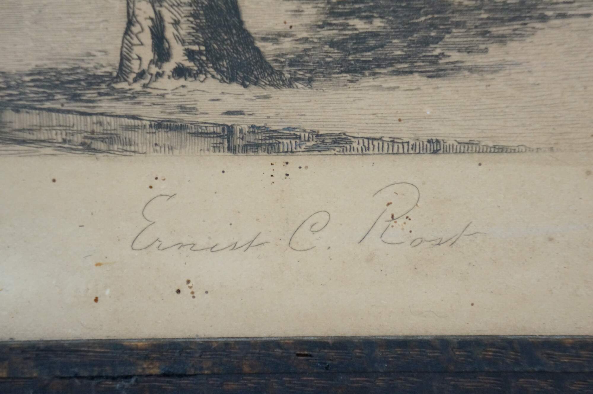 "Ernest Christian Rost - American, 1866 - 1940 - Ernest was born on January 20, 1866, at Mt. Vernon, N.Y., and was probably the son of Christian Rost (a locally known engraver) and Minna M. Rost. Nothing is known of his childhood except that he was the fourth of six children in the family. By the mid-1880s, E.C. Rost was exhibiting landscapes in oil at the National Academy of Design, New York City. After 1887, his oil painting stopped, and by 1891, etching became his primary occupation. Today, the Library of Congress (Prints and Photographs Division) maintains 63 etchings signed 'Ernest C. Rost' or 'E. C. Rost', with dates running from 1891 to 1896. These often portray country lanes, cottages, rural scenes, sea, river, and bayside settings, mostly in New York State, but several depict homes of famous statesmen and writers. With the outbreak of the Spanish-American War, Rost was sent by the U.S. War Department to Cuba, Puerto Rico, the Philippines, and Guam as a civilian photographer of military operations and installations. Today, 21 photographs taken by E.C. Rost of these islands are held by the National Archives (Audio-Visual Division), while still another 26 photographs, all of Cuba, are held by the Library of Congress. In 1894, he sued his agents, Fishel, Adler, and Schwartz Co. for the sale of his etchings as artists’ proofs to which his signature had been forged. He went to the shop and bought 2 of these fo $.90 each, whereas Ernest testified that they were worth $5 each. He was so angered by the lawsuit experience that he never again etched. By 1898, Rost had apparently given up etching and entered photography full-time. Still, photography was not his only occupation during this time period, for he began writing, too. Between 1899 and 1900, at least 7 articles by Rost appeared in the popular 'Leaslie's Illustrated Weekly Newspaper.’ (Source: Iowa State University Museum)
