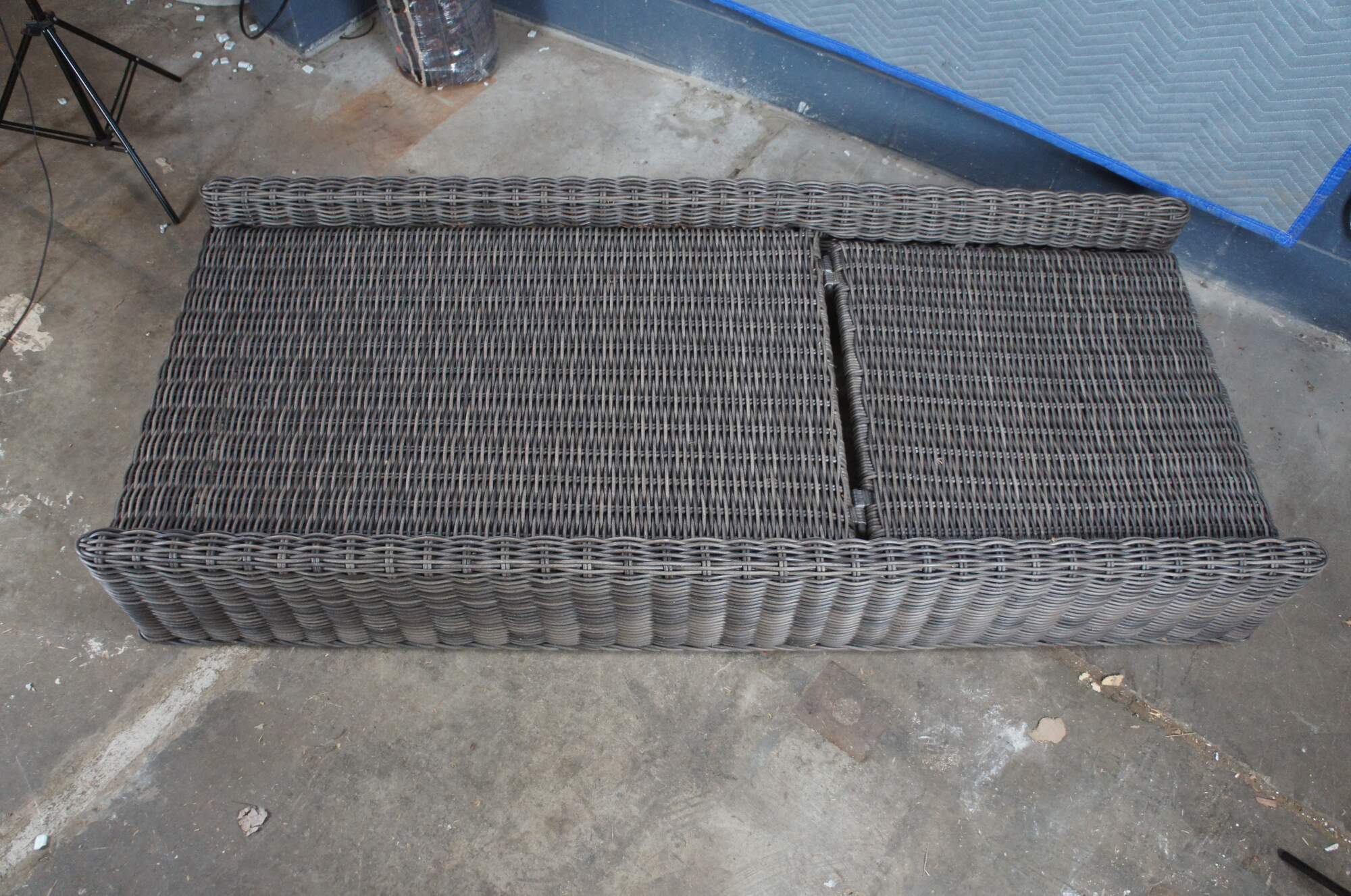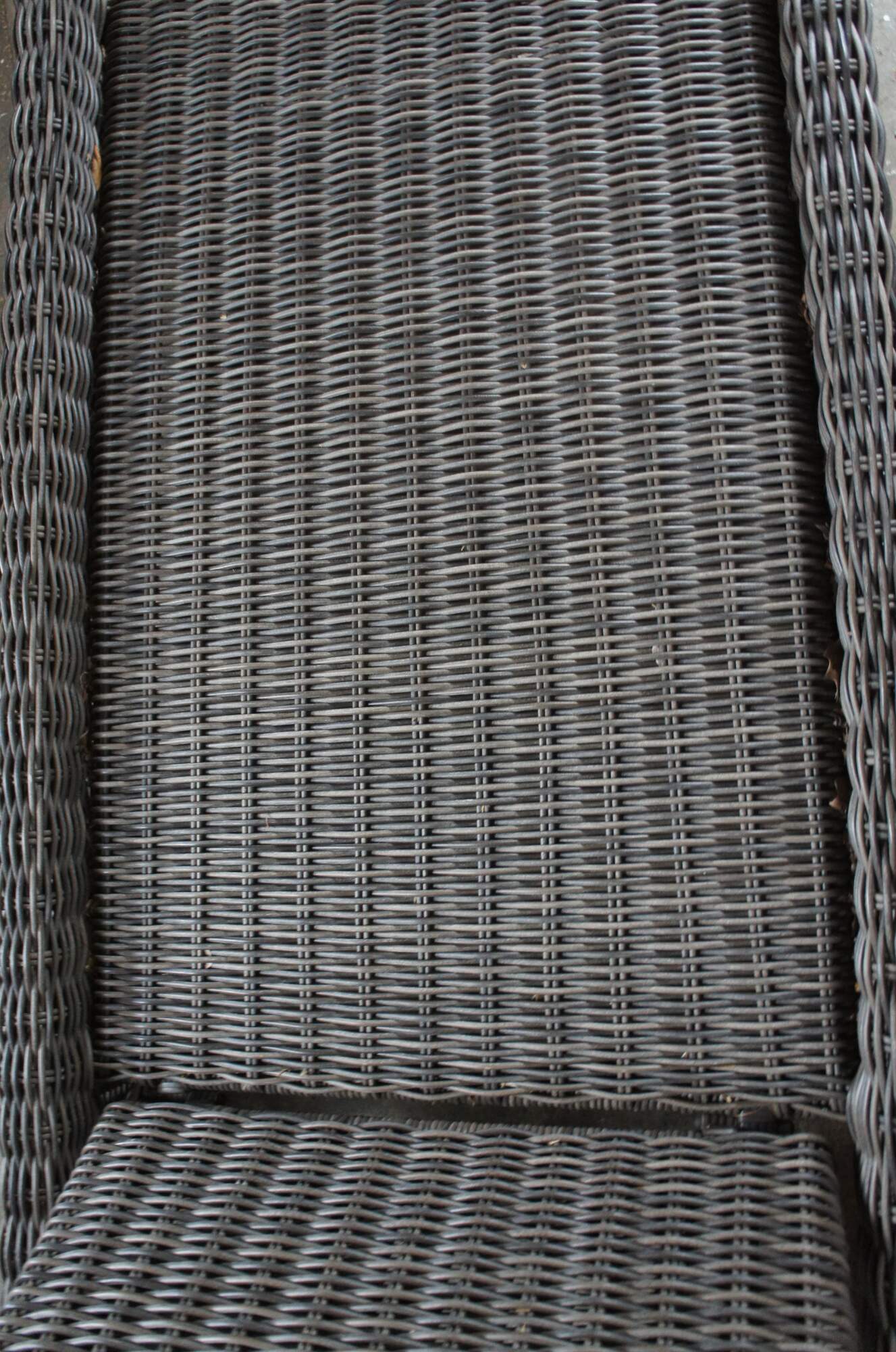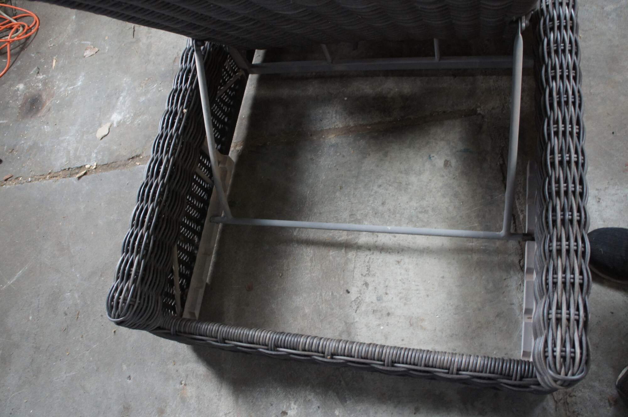 Hand woven of durable strands of all-weather wicker wrapped around a durable powdercoated aluminum frame