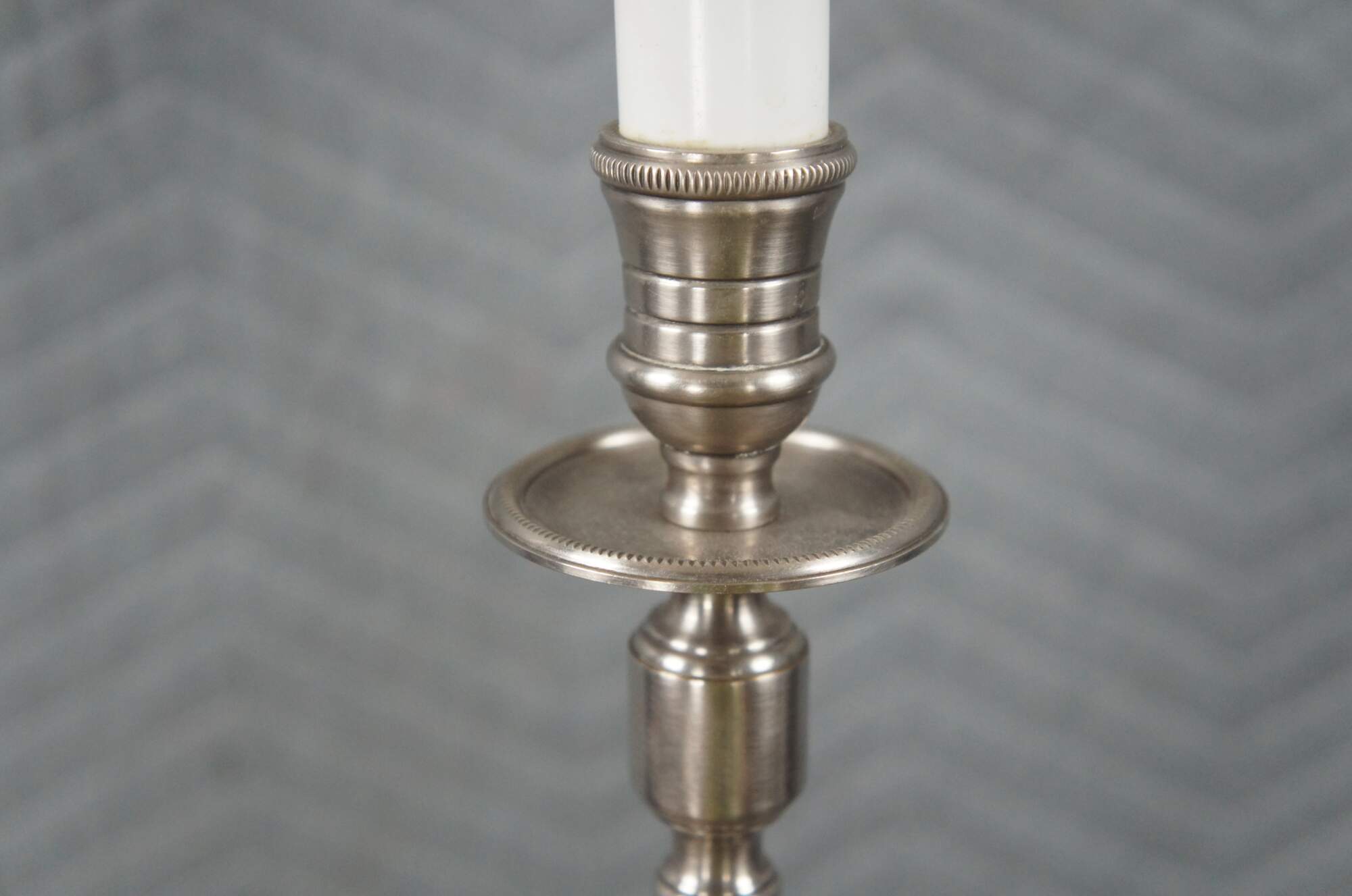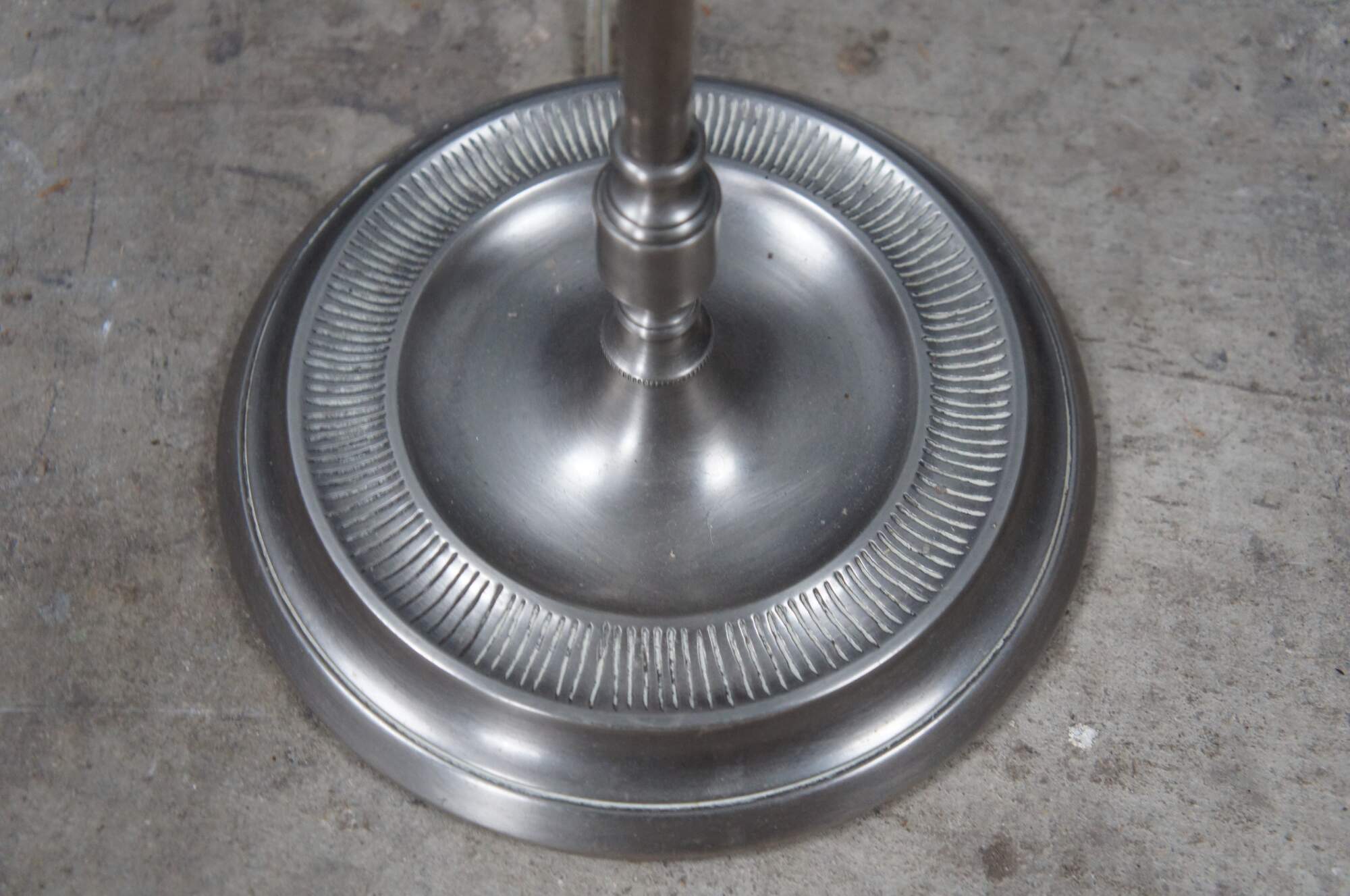 Early 21st century Schonbek silver modern floor lamp. Features a slender form with candlestick topper.