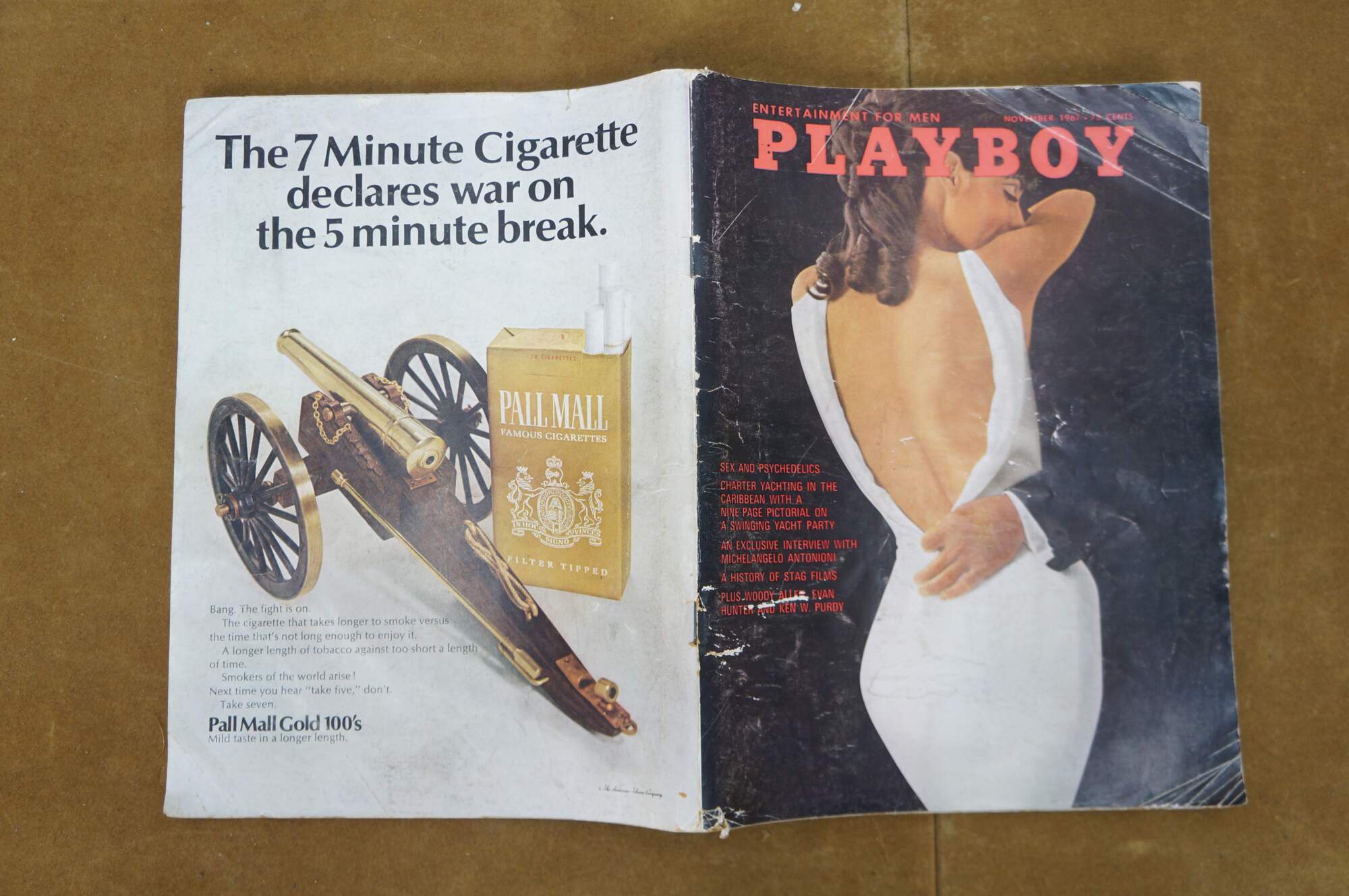Set of three vintage mid 20th century pornographic / erotic magazines: Playboy Vol 14, No 11, November 1967; Playboy Vol 15, No 10, October 1968; and Release (no date). Playboy centerfolds are intact.