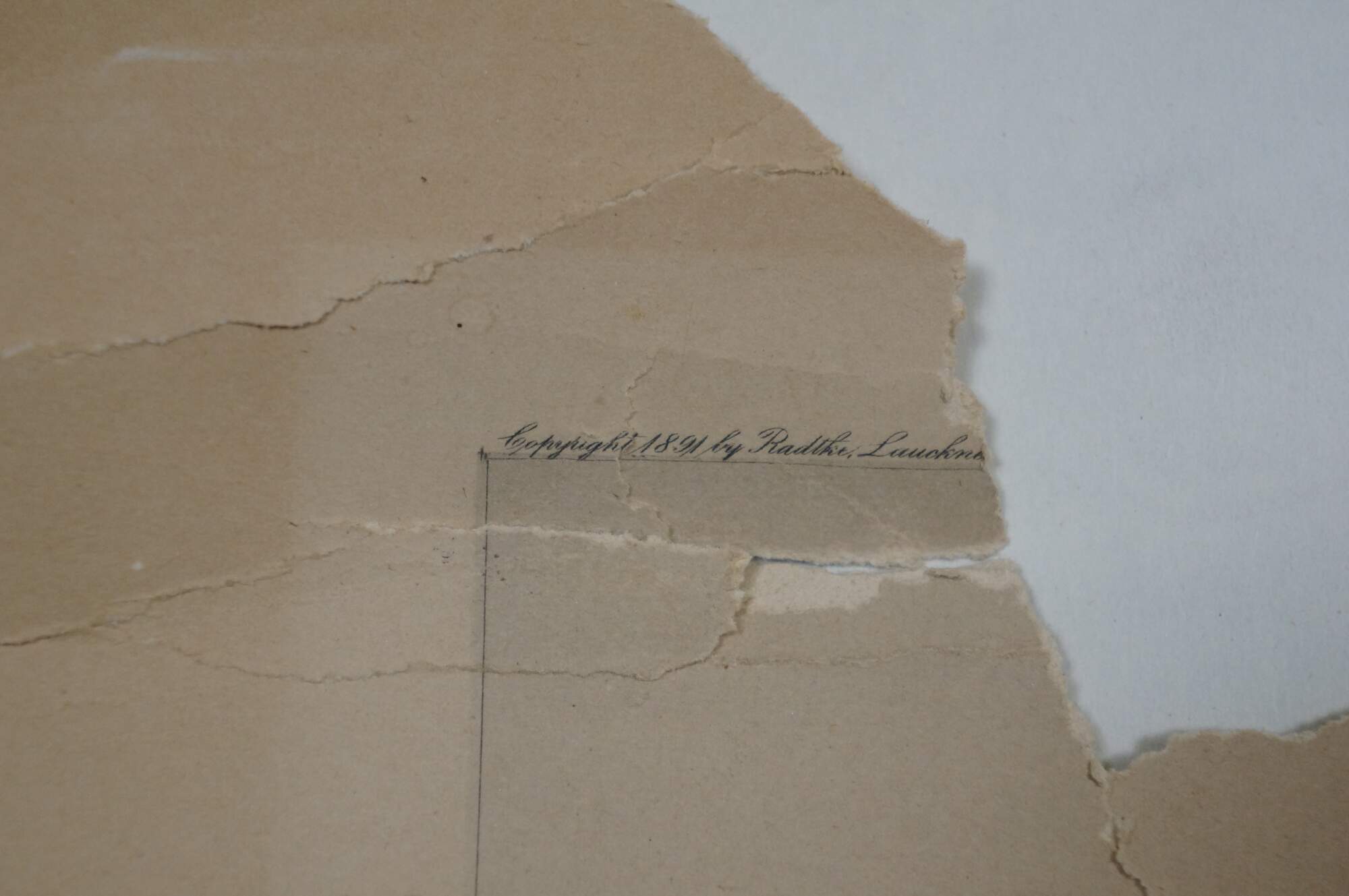 Wear and distressing from age; tears/damage around edges, foxing, discoloration.