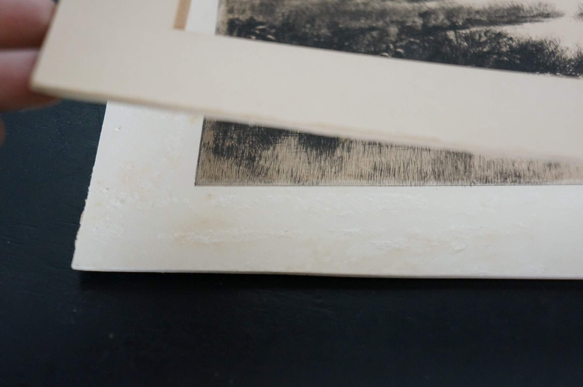 Wear and distressing from age, foxing / discoloration, tear to mat