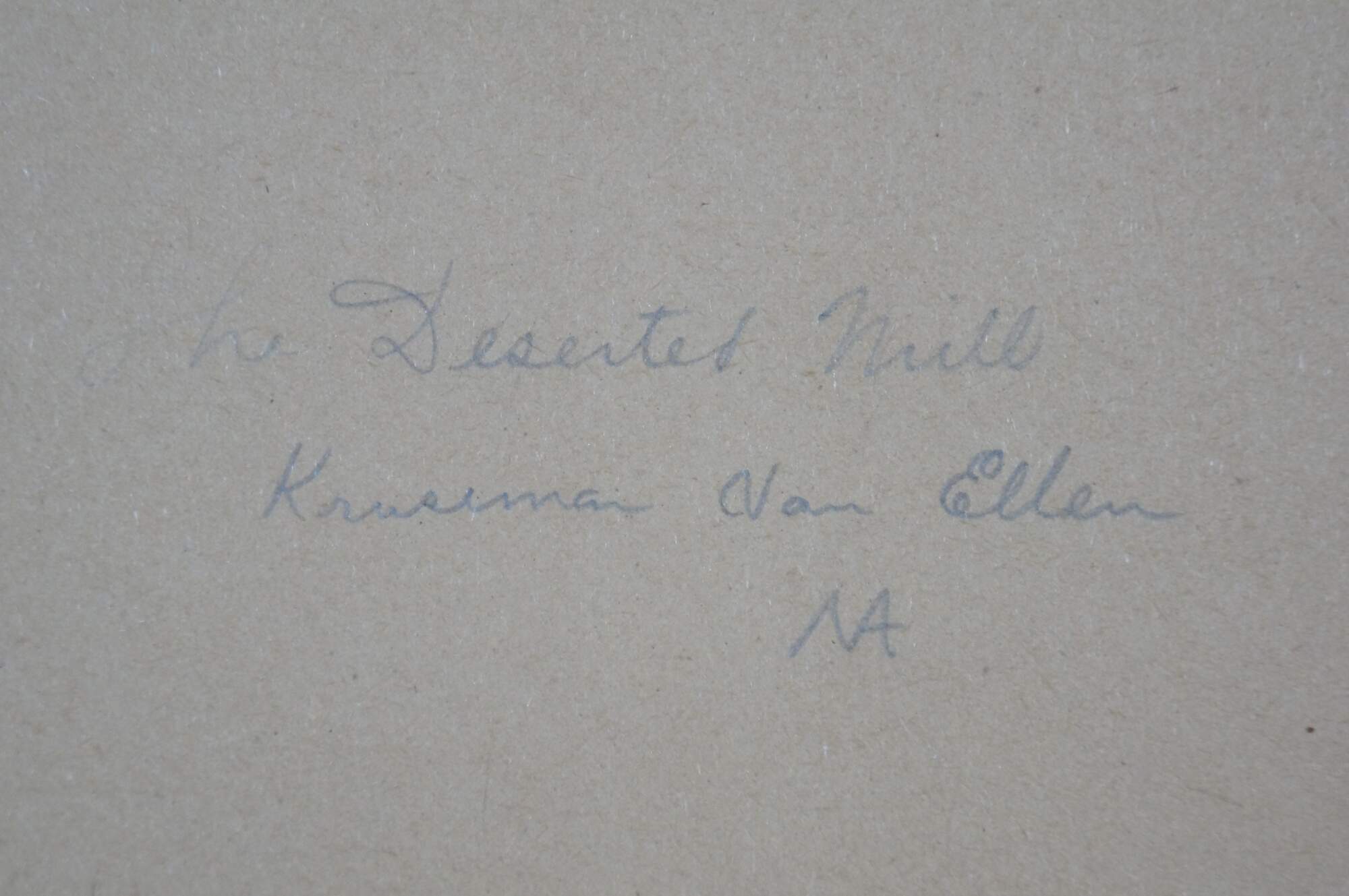 Late 19th century book plate etching from the 1883 folio "Original Etchings by American Artists," titled "The Deserted Mill" by Kruseman van Elten. Country landscape focused on an old water mill. Signed in plate/dated 1883, lower right. Paper mounted on cardboard; unframed.