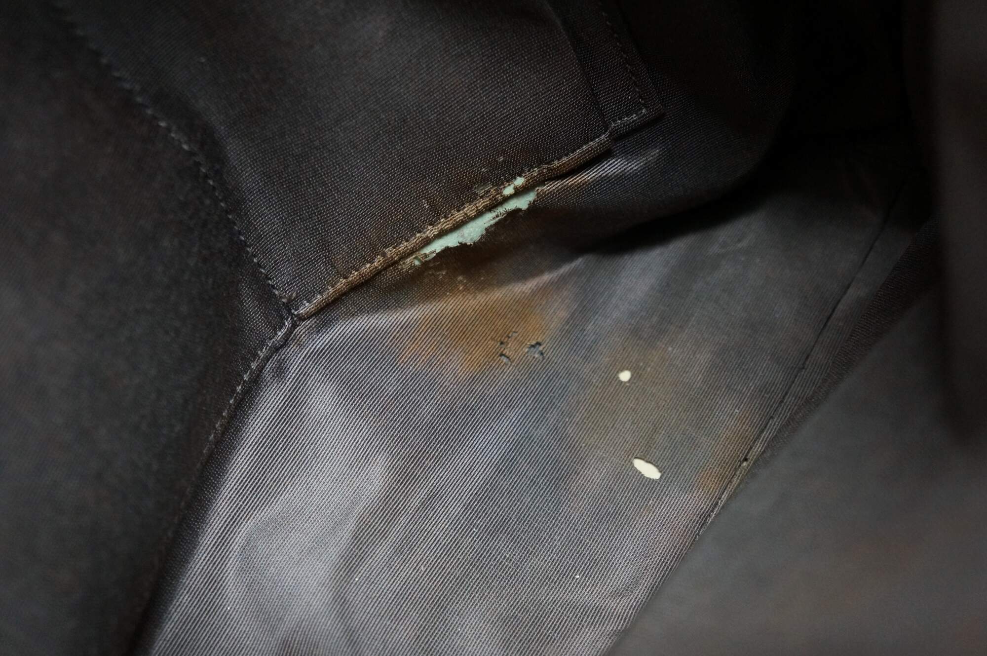 Wear and distressing from use, some scuffing to exterior, small holes/stains/fading to interior