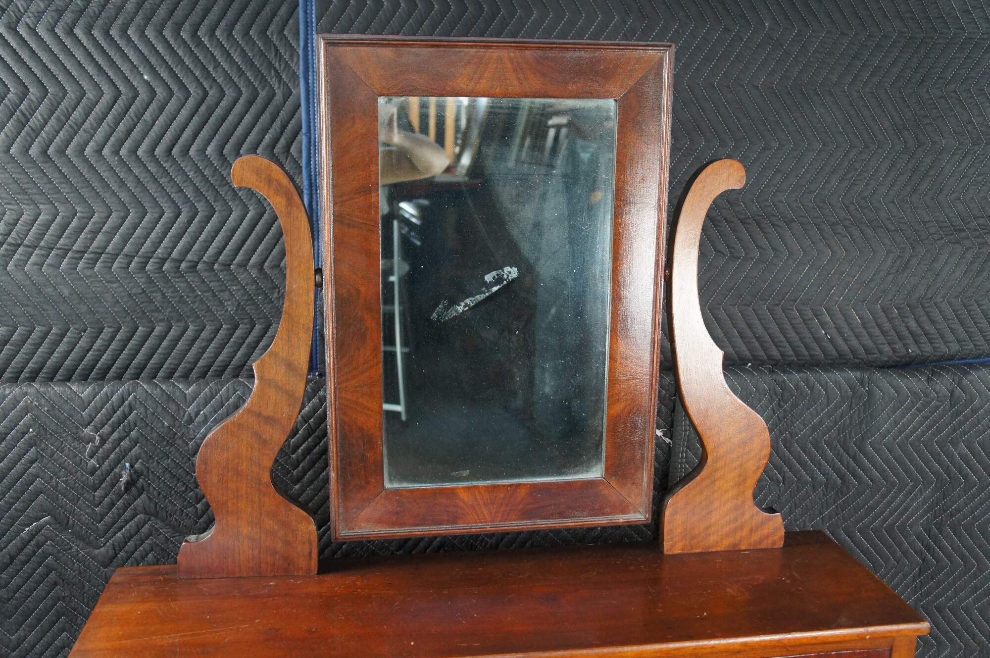 Good Overall; wear consistent with age and use. Some finish loss, marking and Veneer / edgewear. Some silver loss to mirror