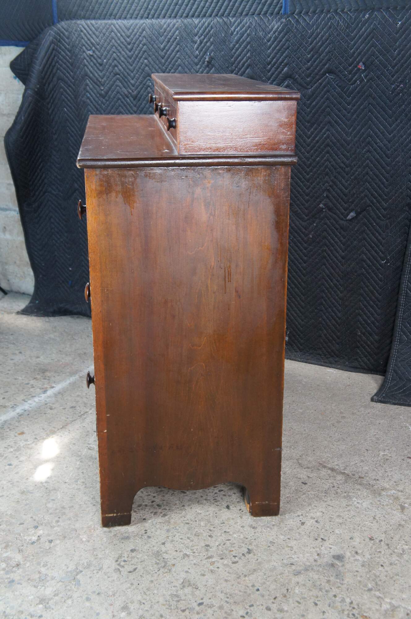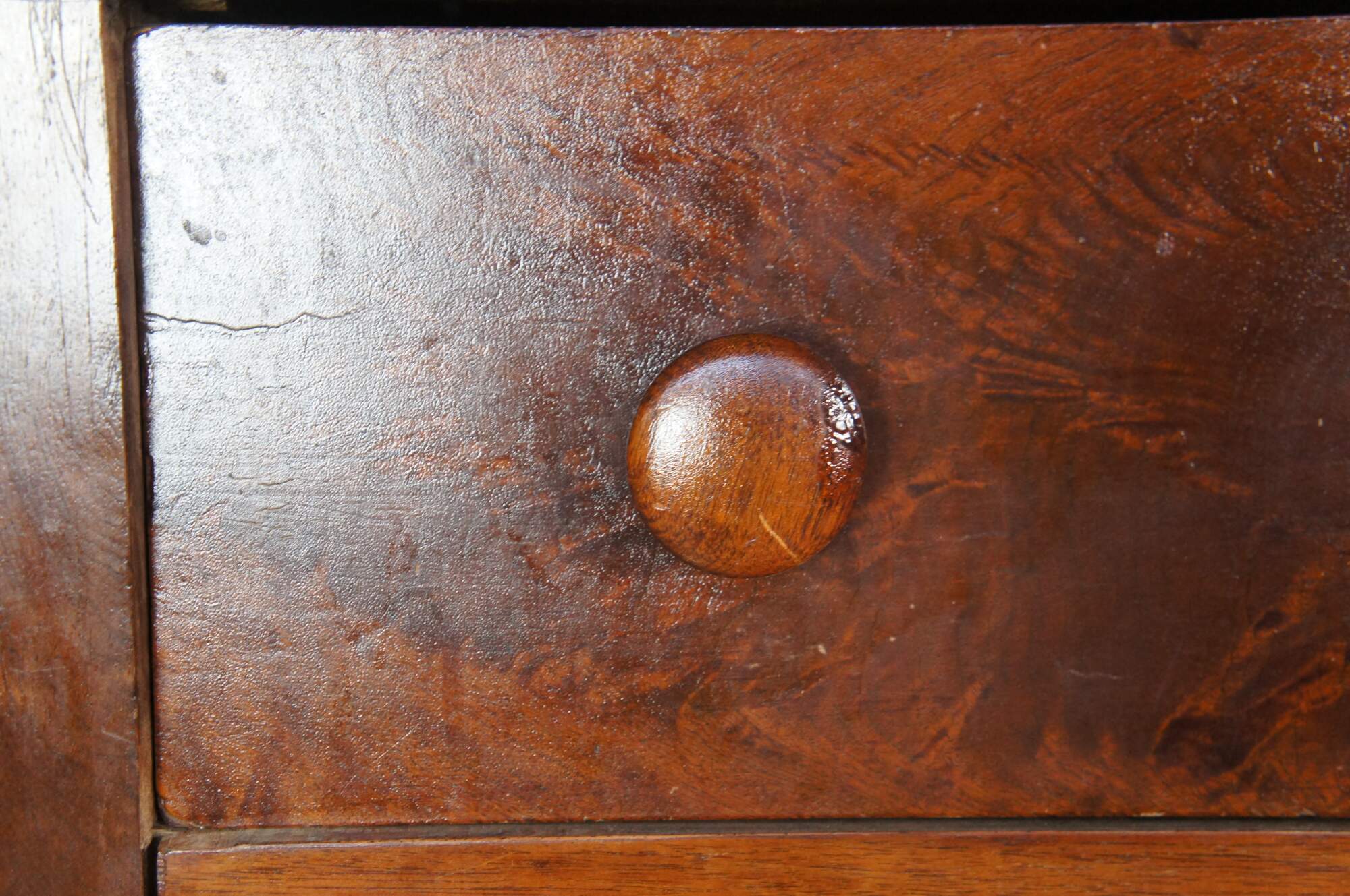 Antique Victorian Era Stepback Dresser & Mirror, c. 1870s. Made from walnut with crotch walnut veneered drawer fronts. Features a wishbone swivel mirror over two gloveboxes and a case with three hand dovetailed drawers.