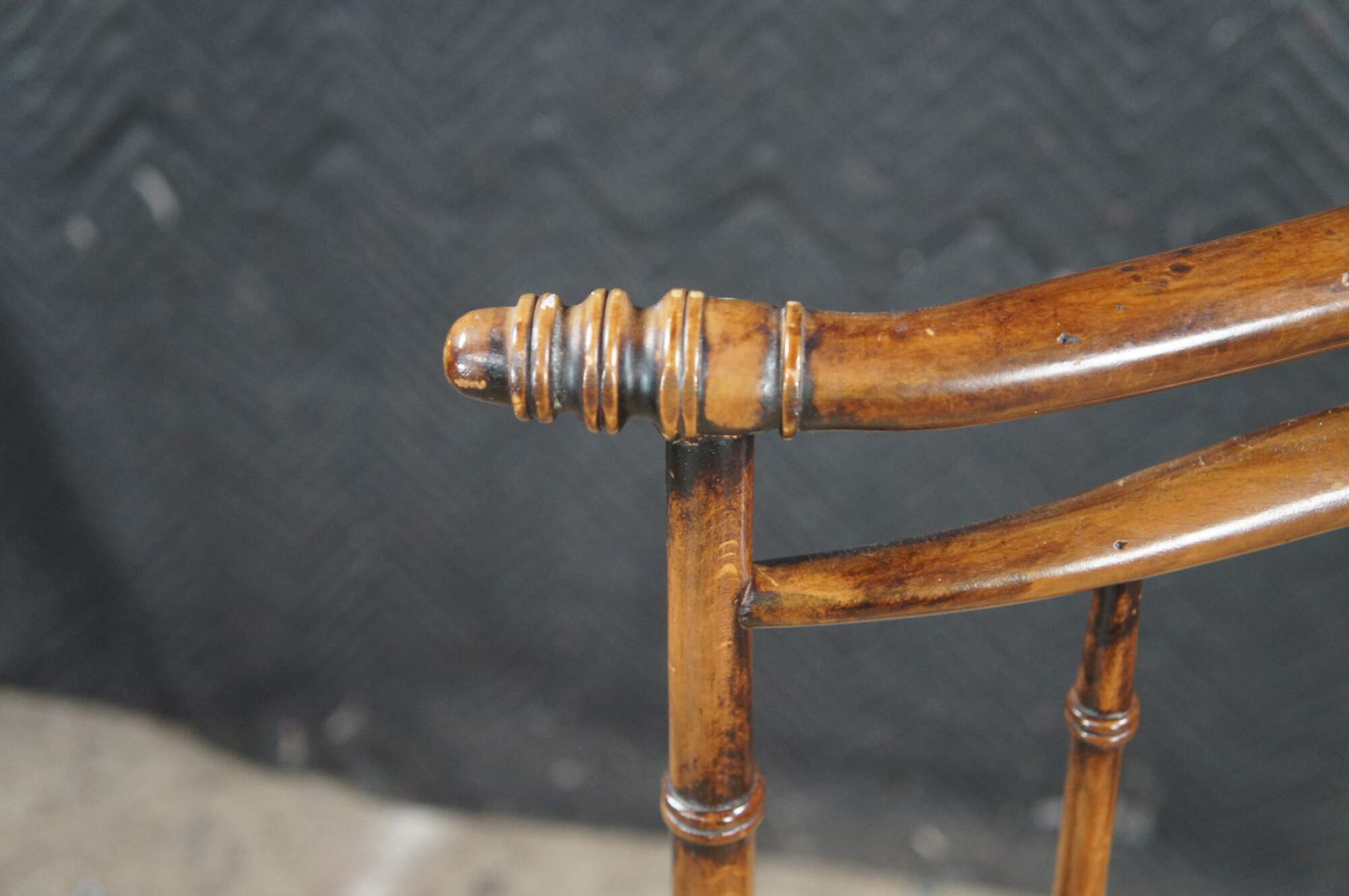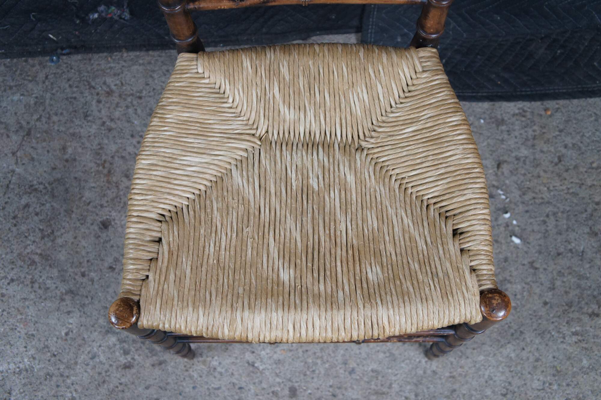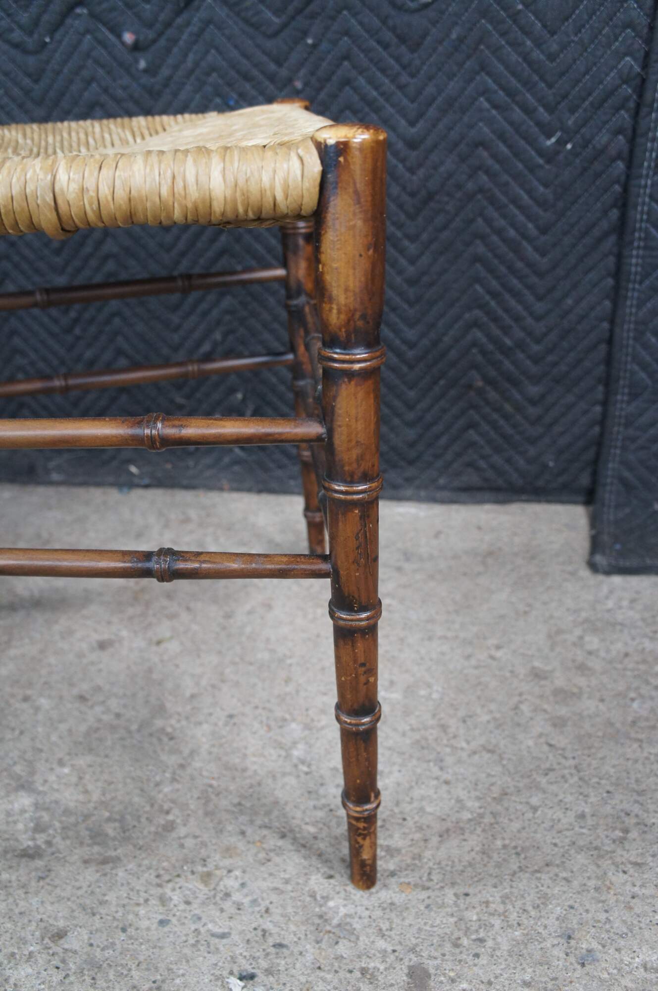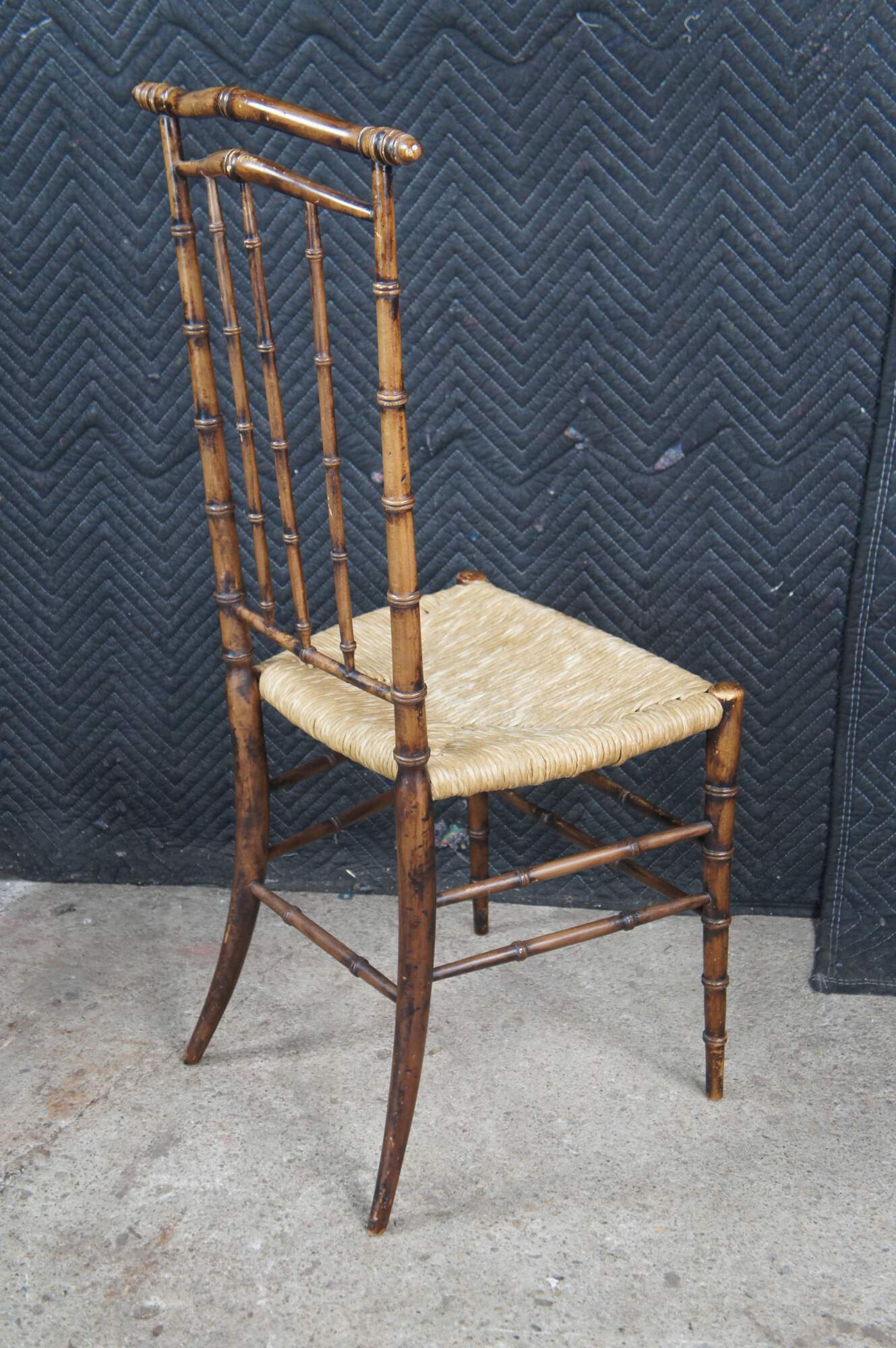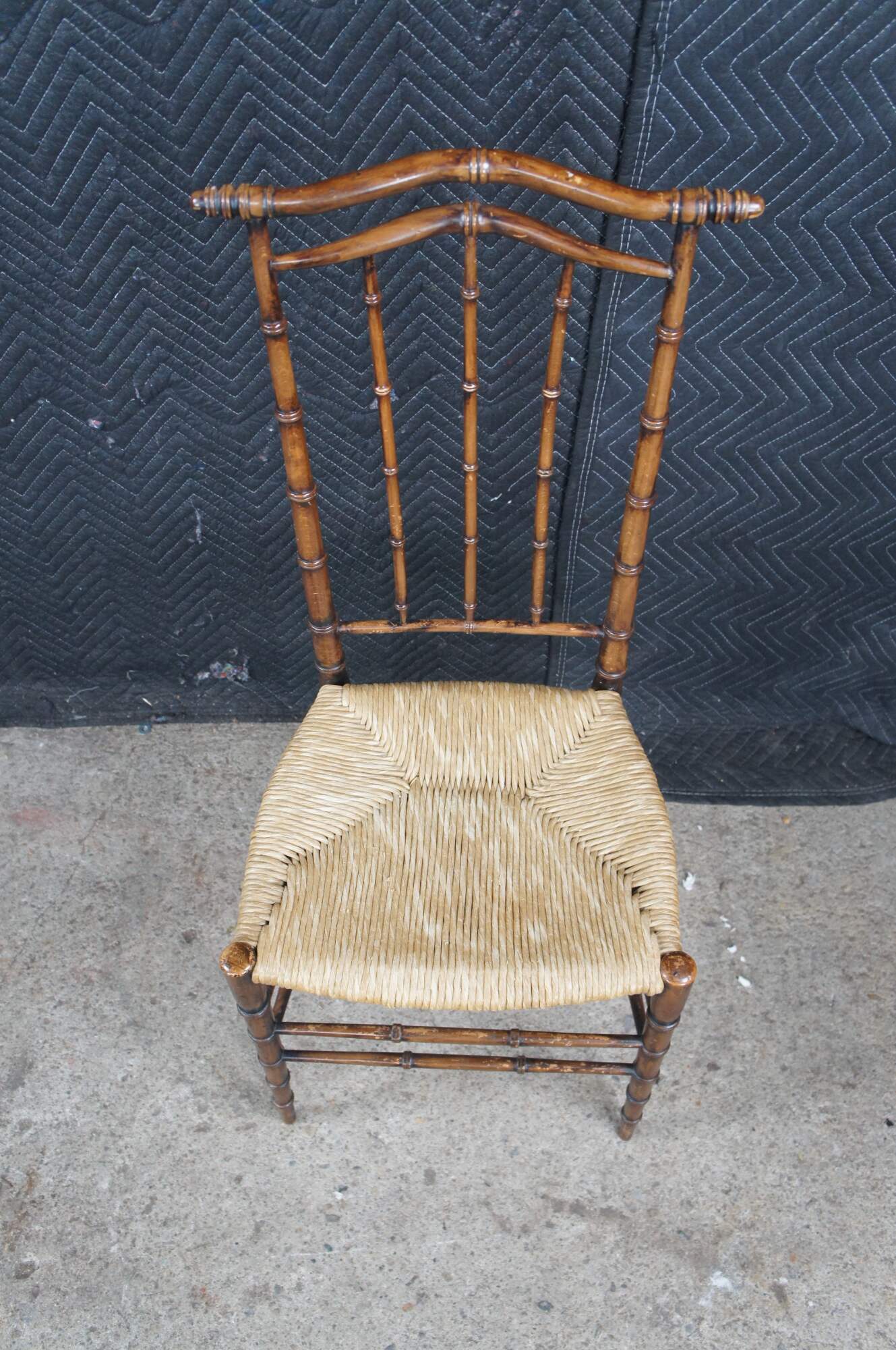 Pair of two mid century circa 1970s high back side dining chairs. Made of Beech or Beechwood featuring a chinoiserie design with faux bamboo slatted supports and rush seats.