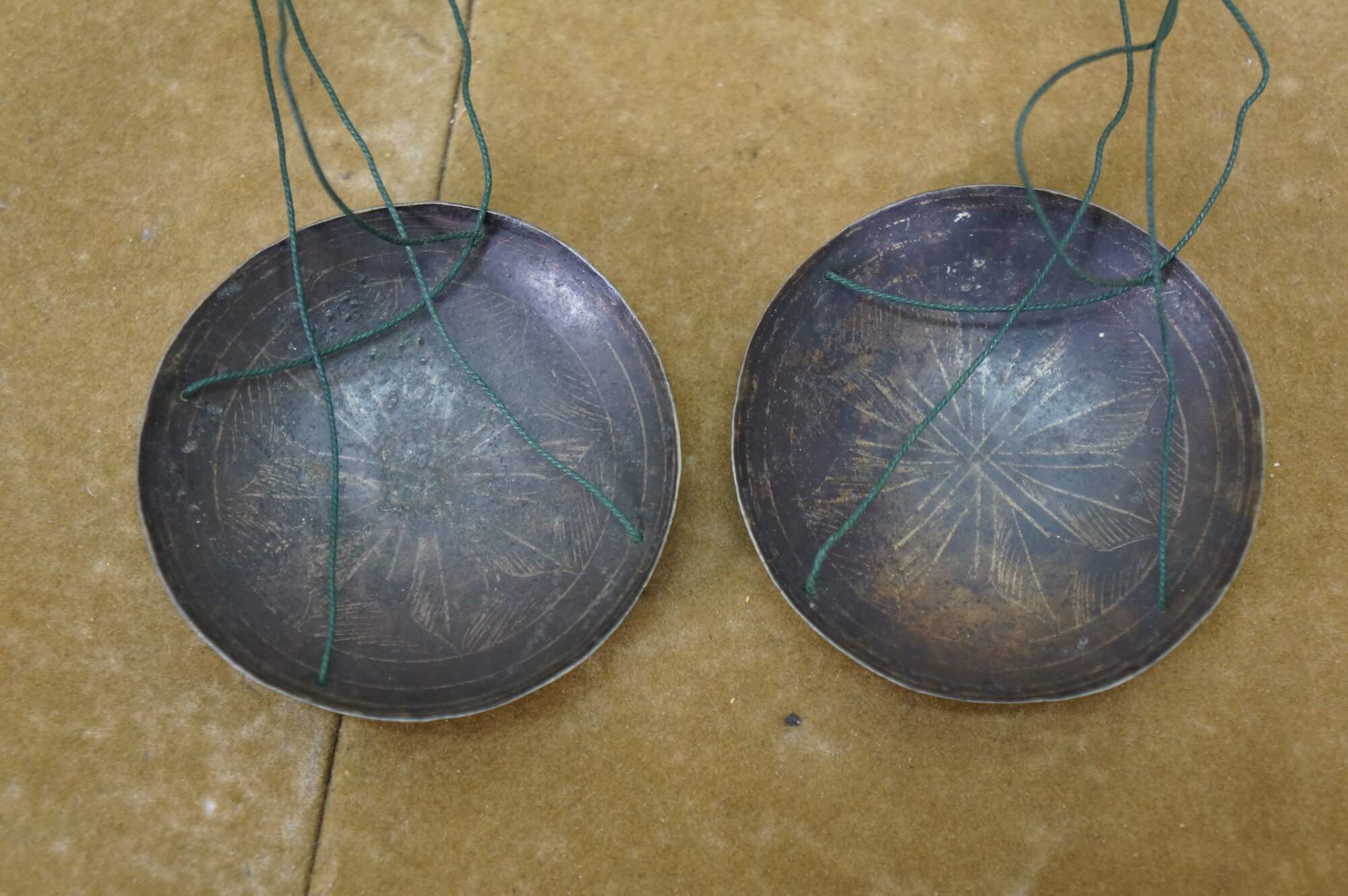 Wear and distressing from age and use, scuffing, tarnish.