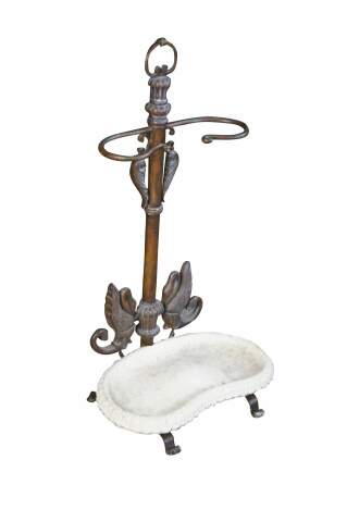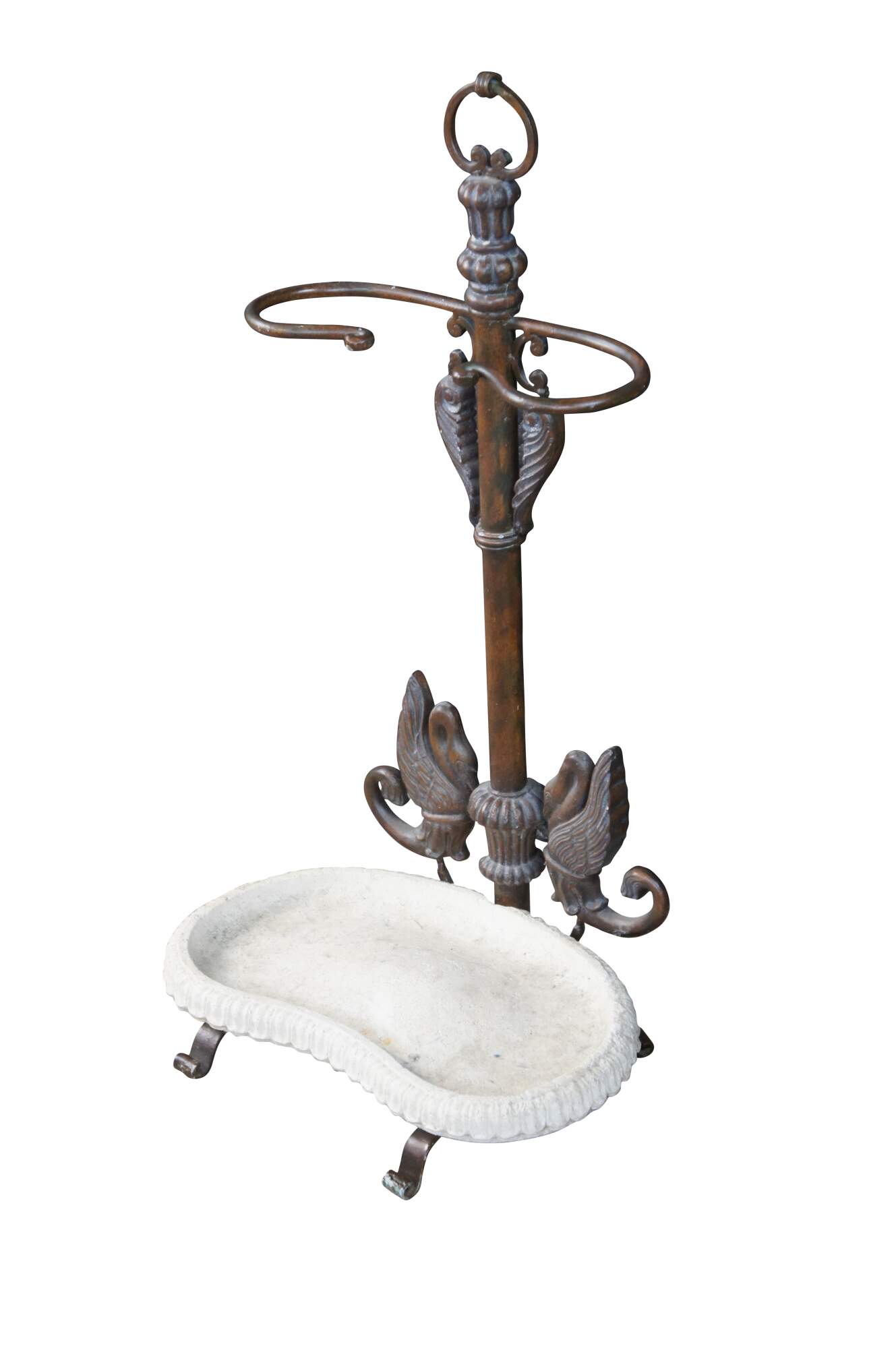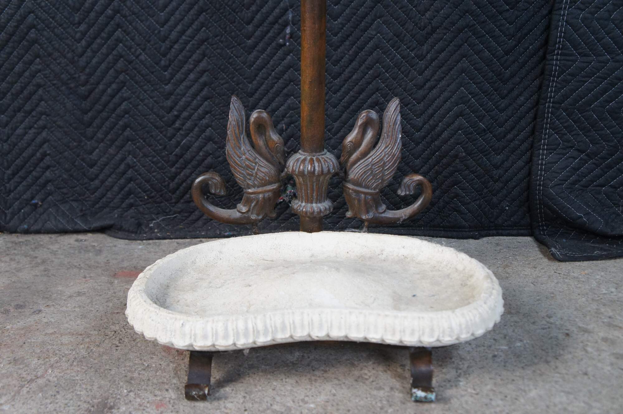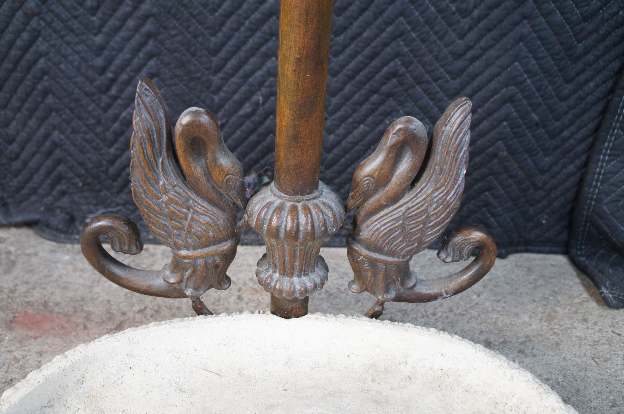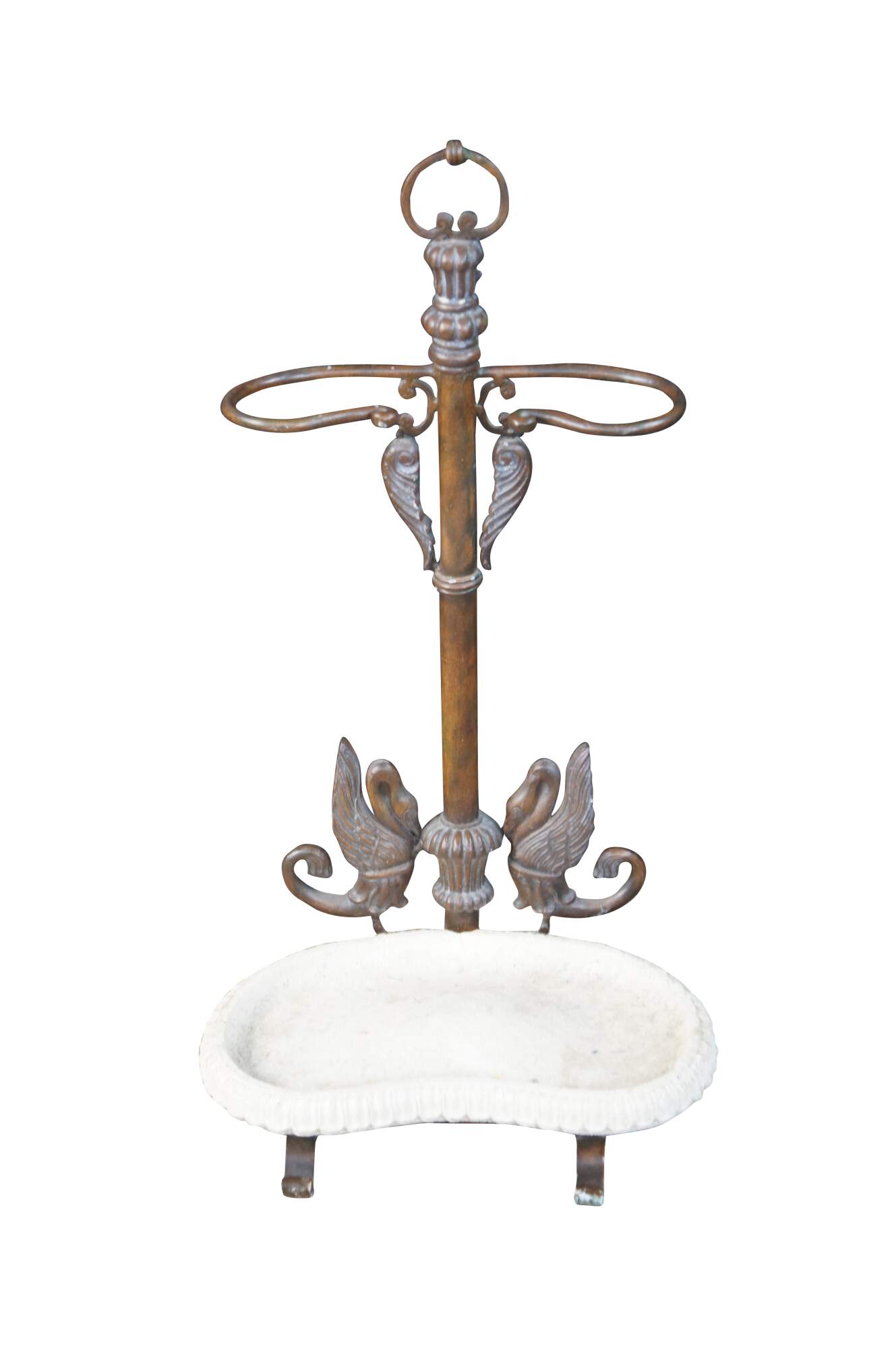 Vintage umbrella / cane / fire tool stand / holder featuring a decorative swan motif.