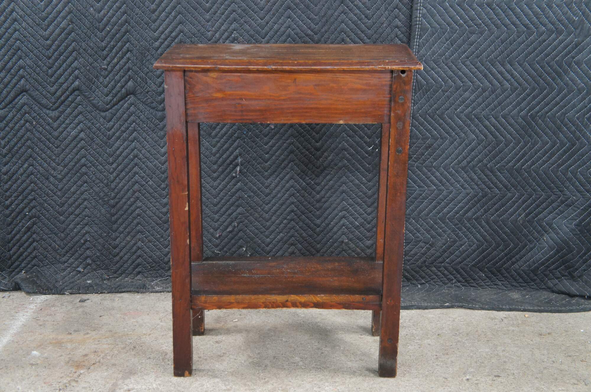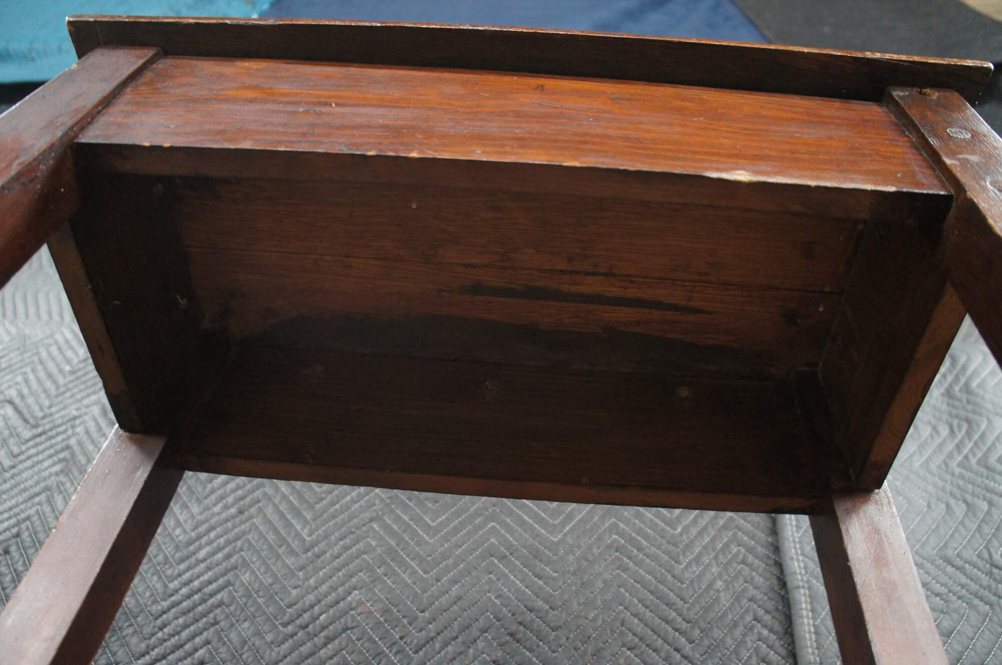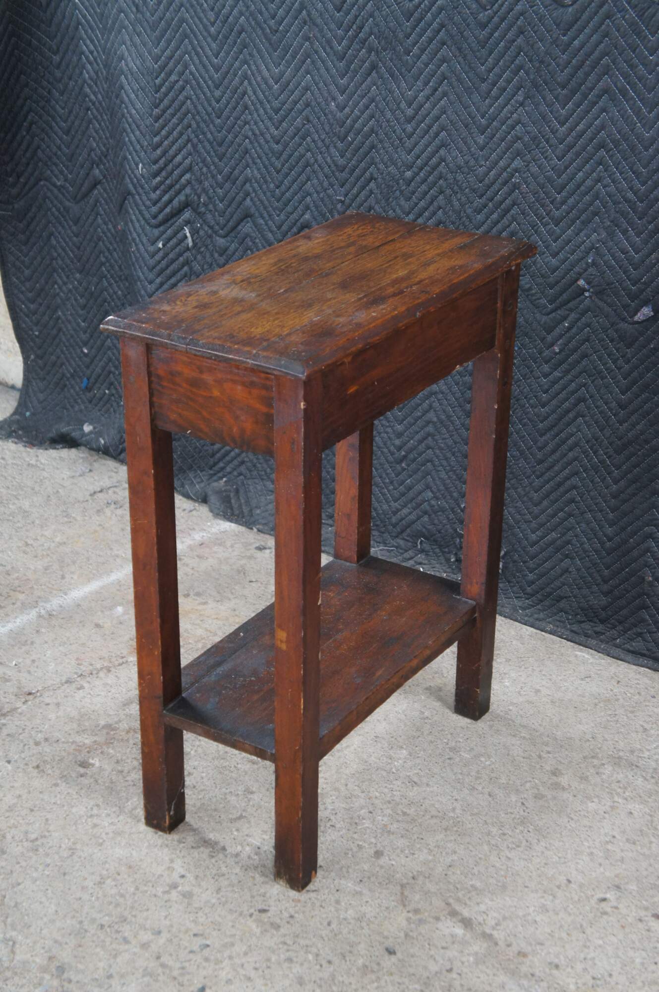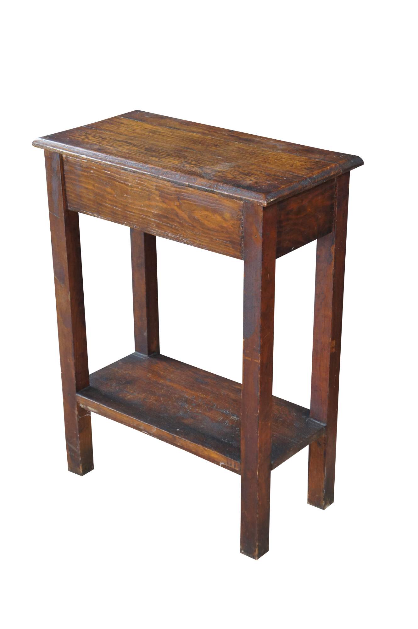 Antique quartersawn oak table or stand featuring a rectangular form with two tiers.
