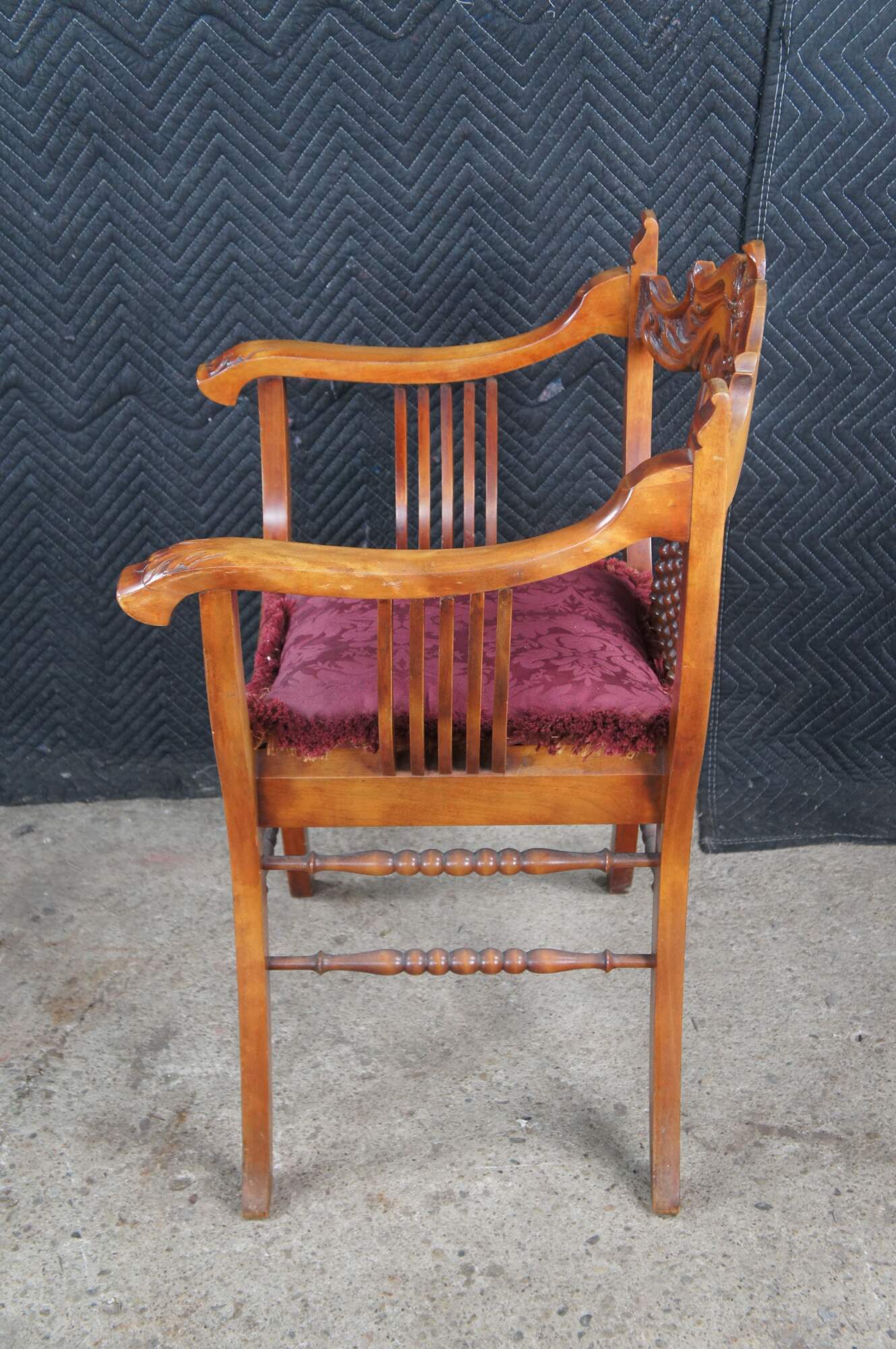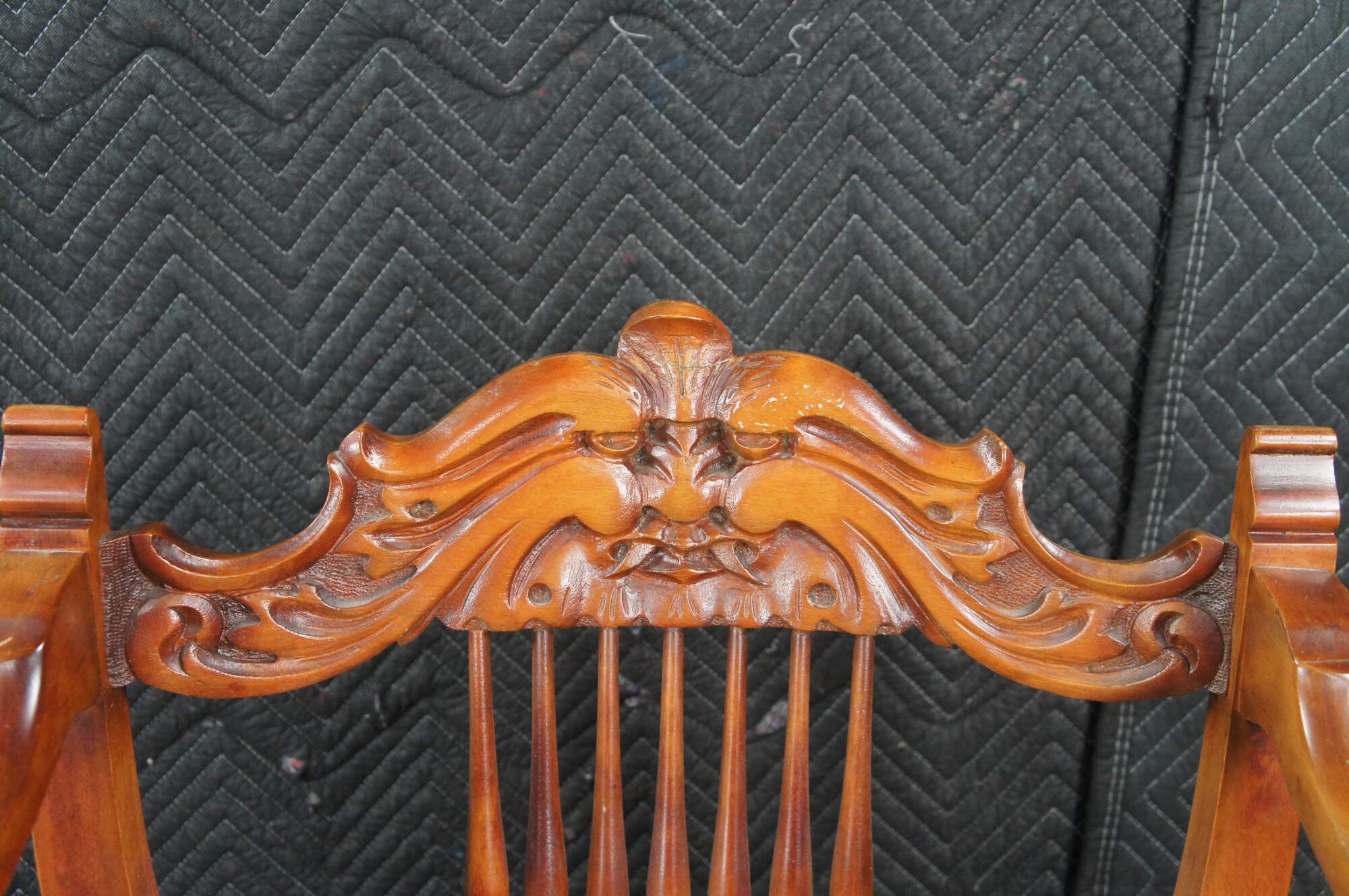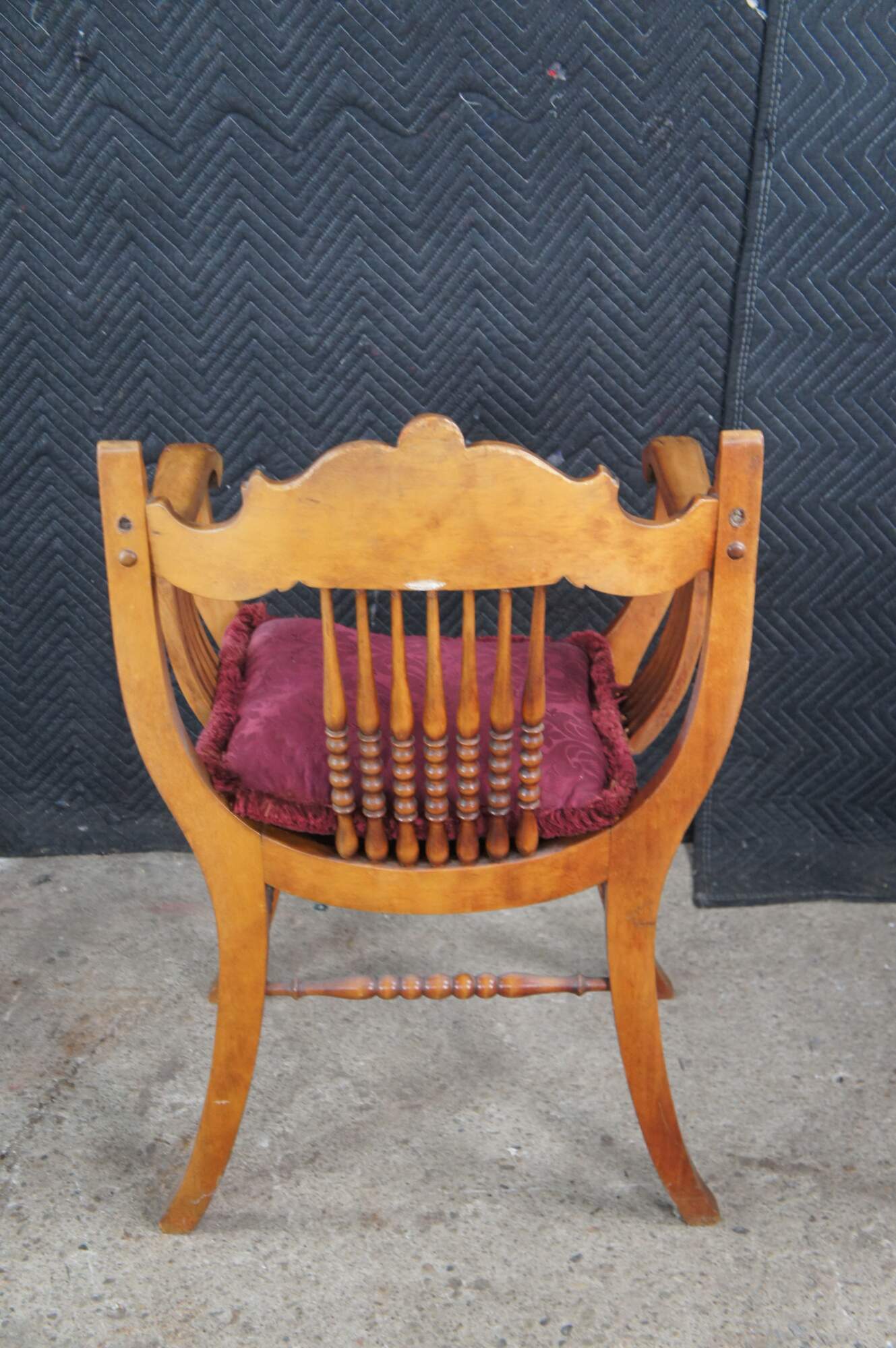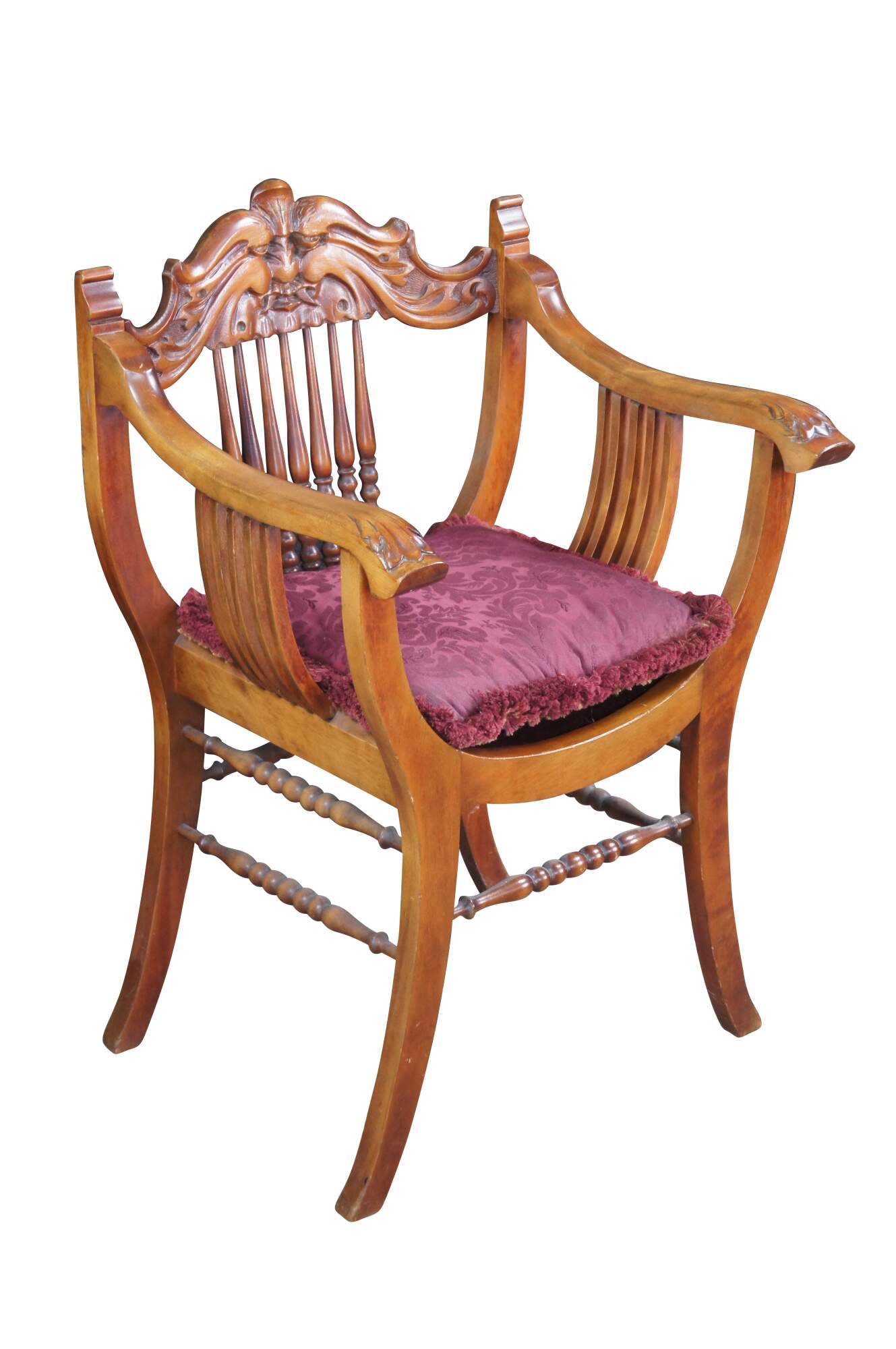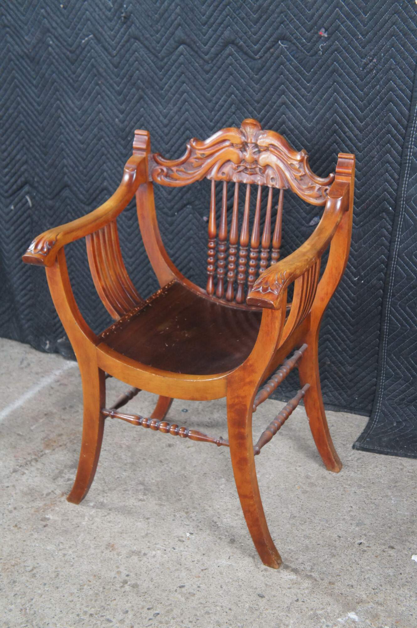 Antique Victorian Grotesque / Northwind arm chair by Michigan Chair Company circa 1905. Made of mahogny featuring steambent design with curule saddle seat and figural back. The design comes from Ancient Rome and Europe through the early 20th century. Features Gothic, Renaissance, and classical inspiration.